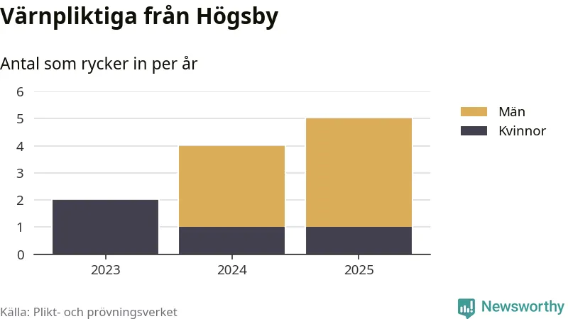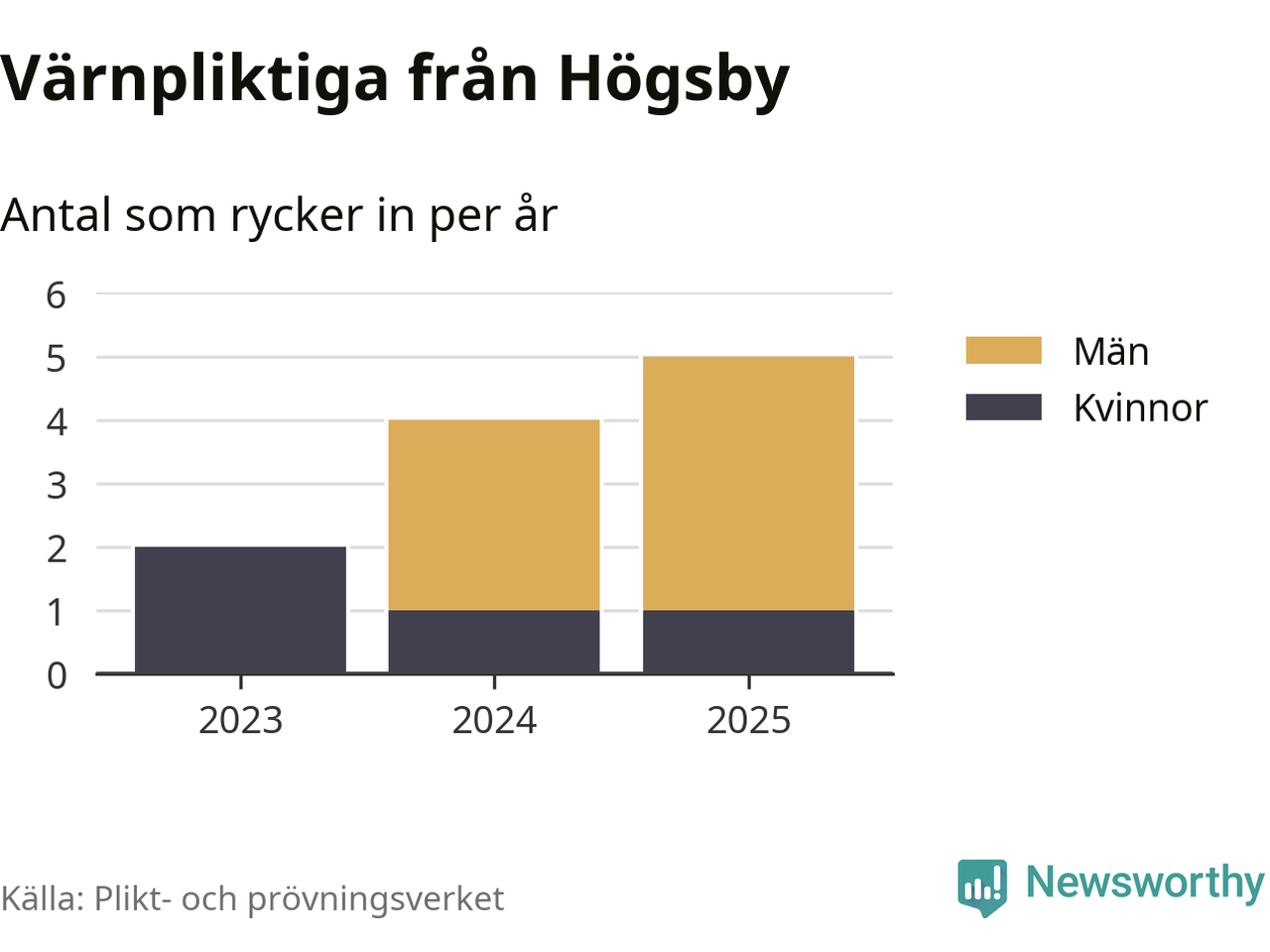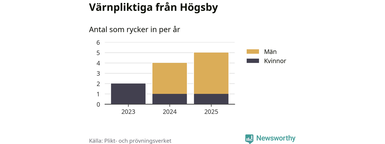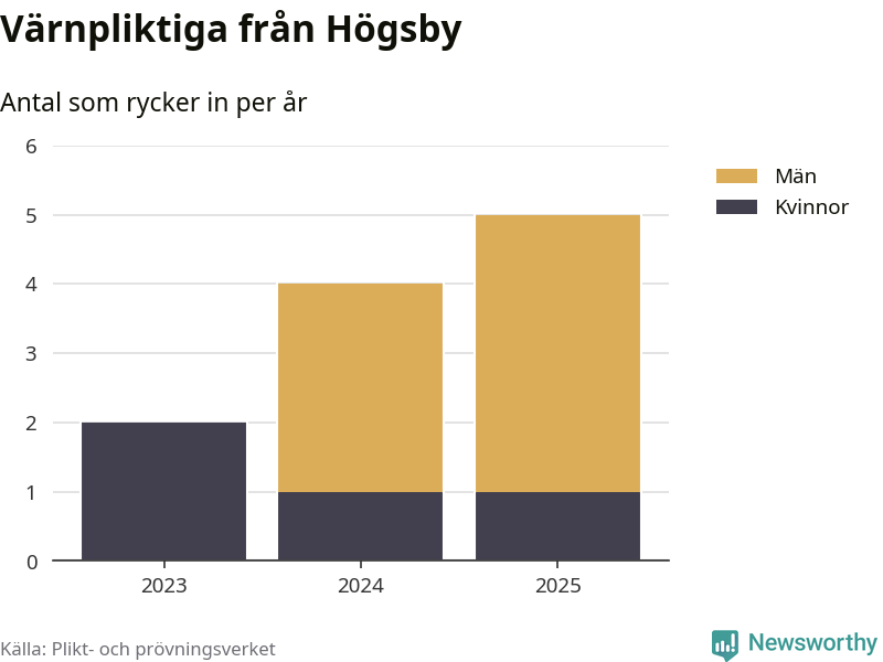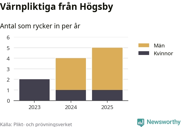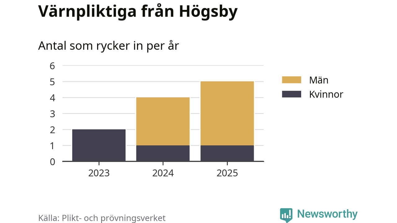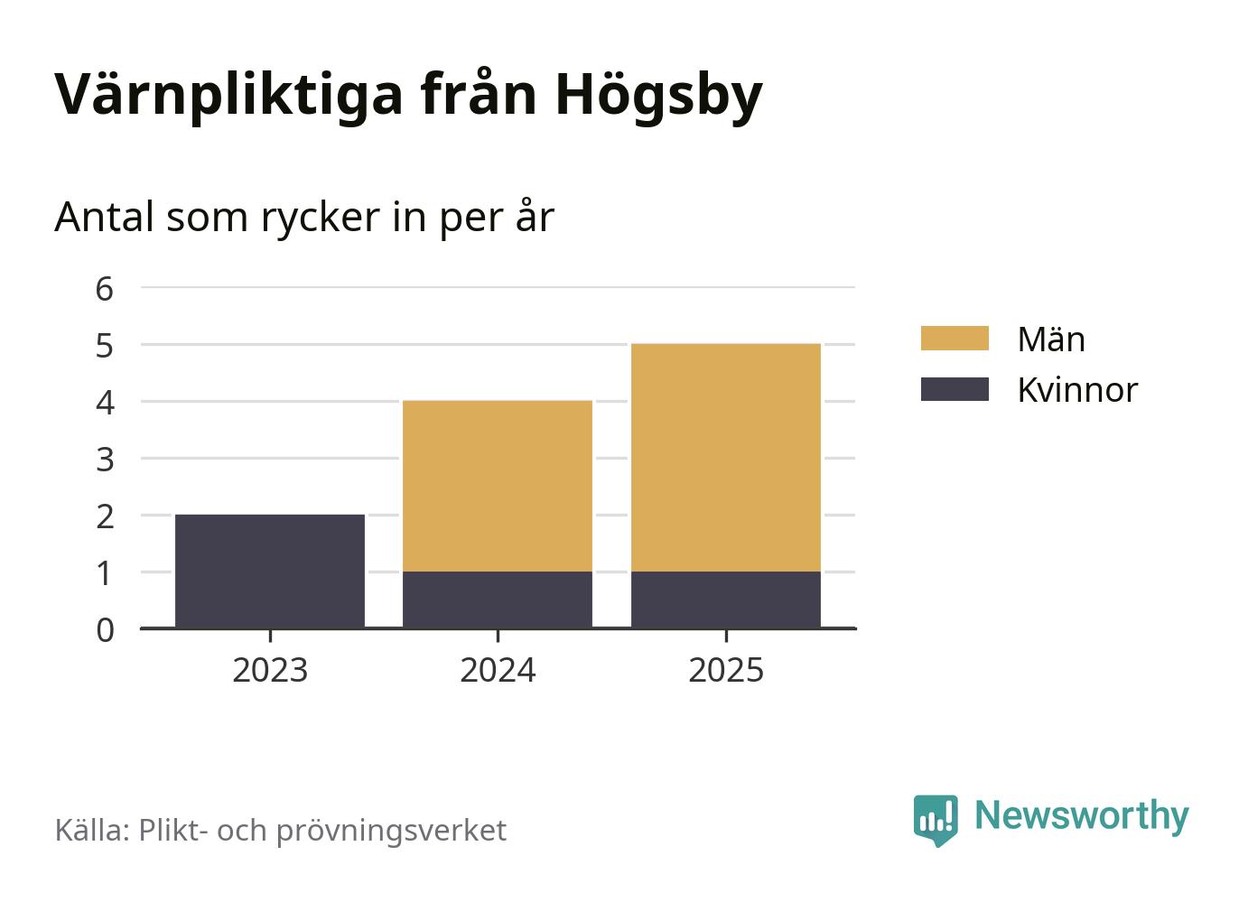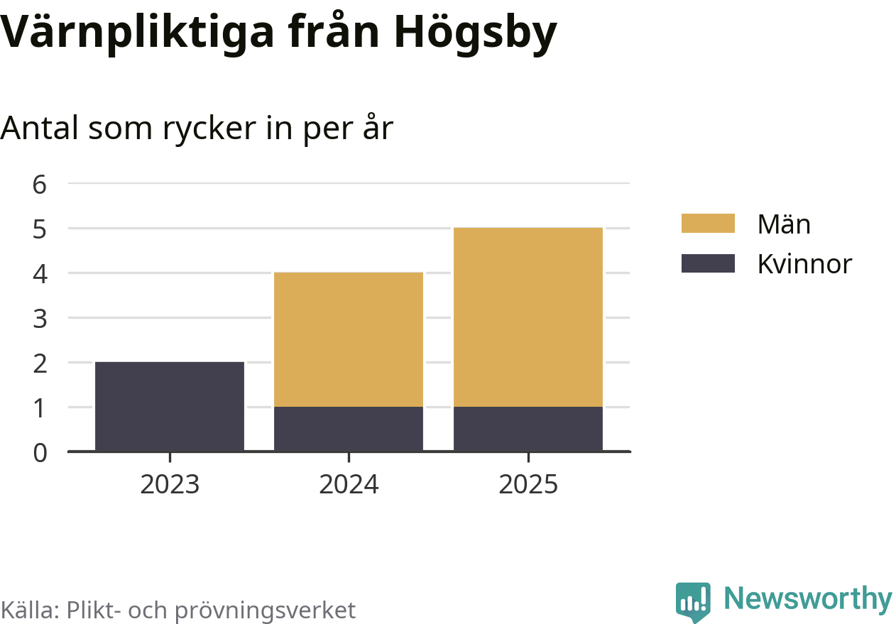 Sedan 2023 – som är det första året vi har jämförbara siffror för – har totalt elva ungdomar från Högsby påbörjat sin värnplikt. Av dem har fyra varit kvinnor.