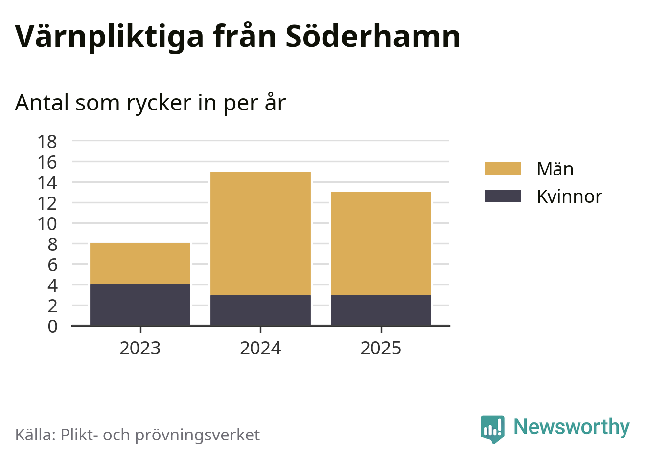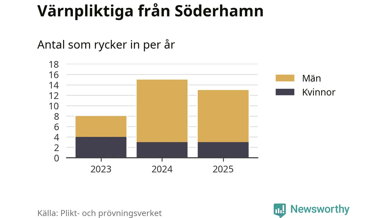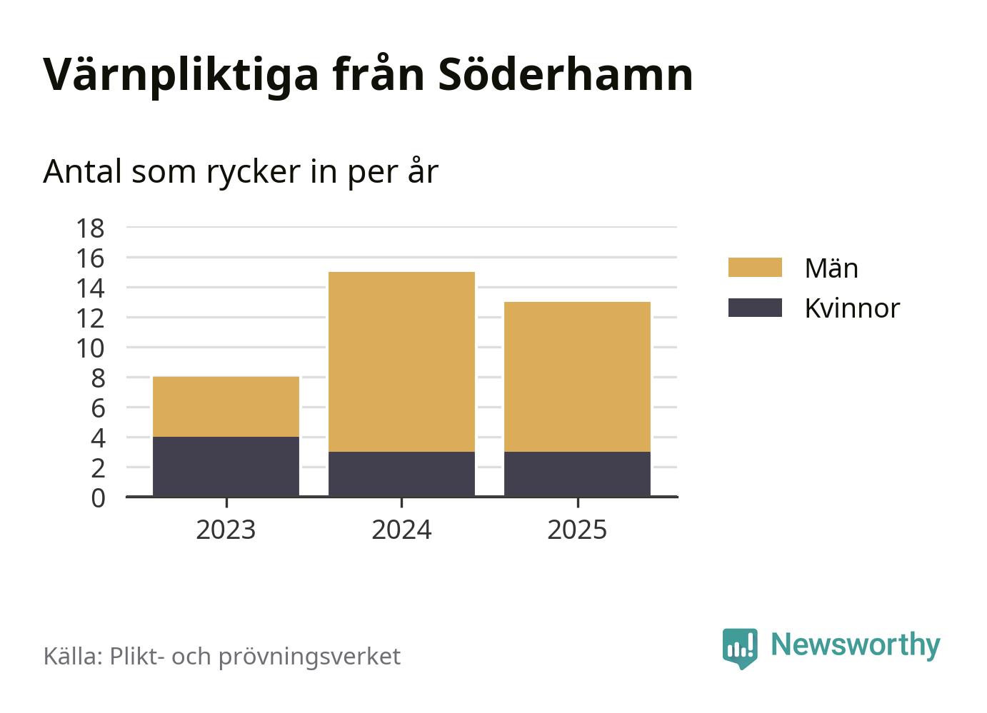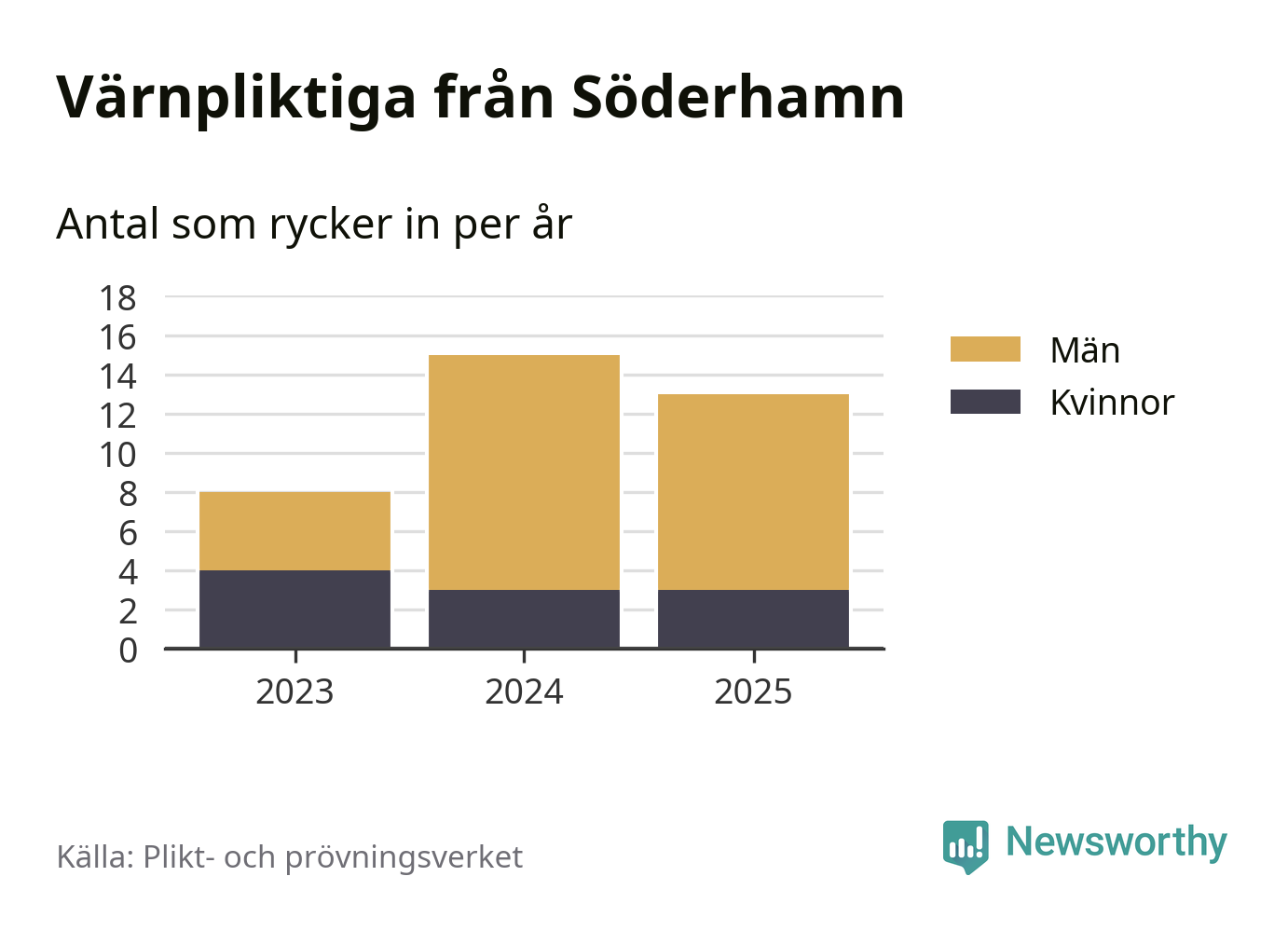Sedan 2023 – som är det första året vi har jämförbara siffror för – har totalt 36 ungdomar från Söderhamn påbörjat sin värnplikt. Av dem har tio varit kvinnor.
