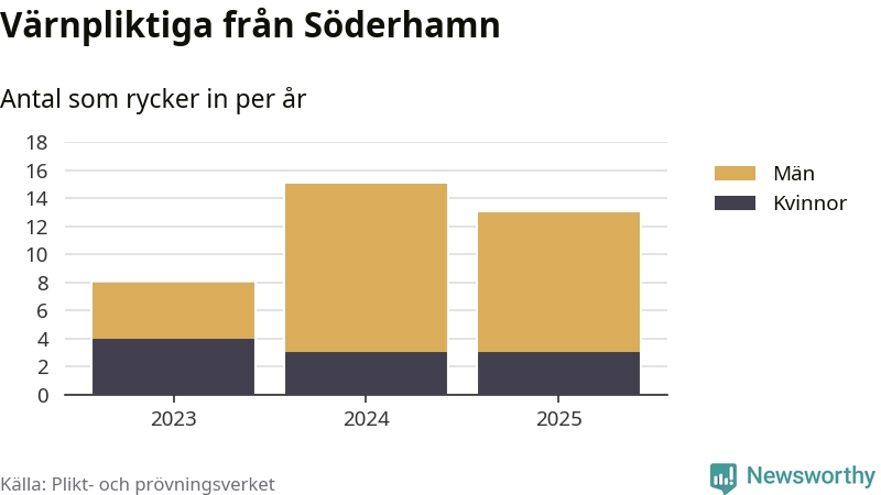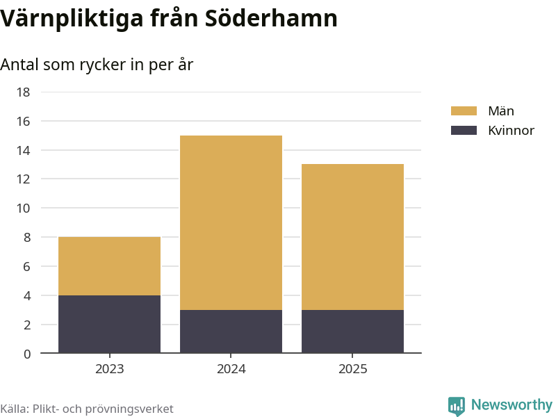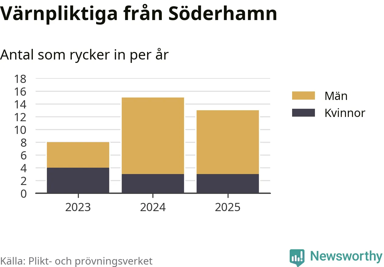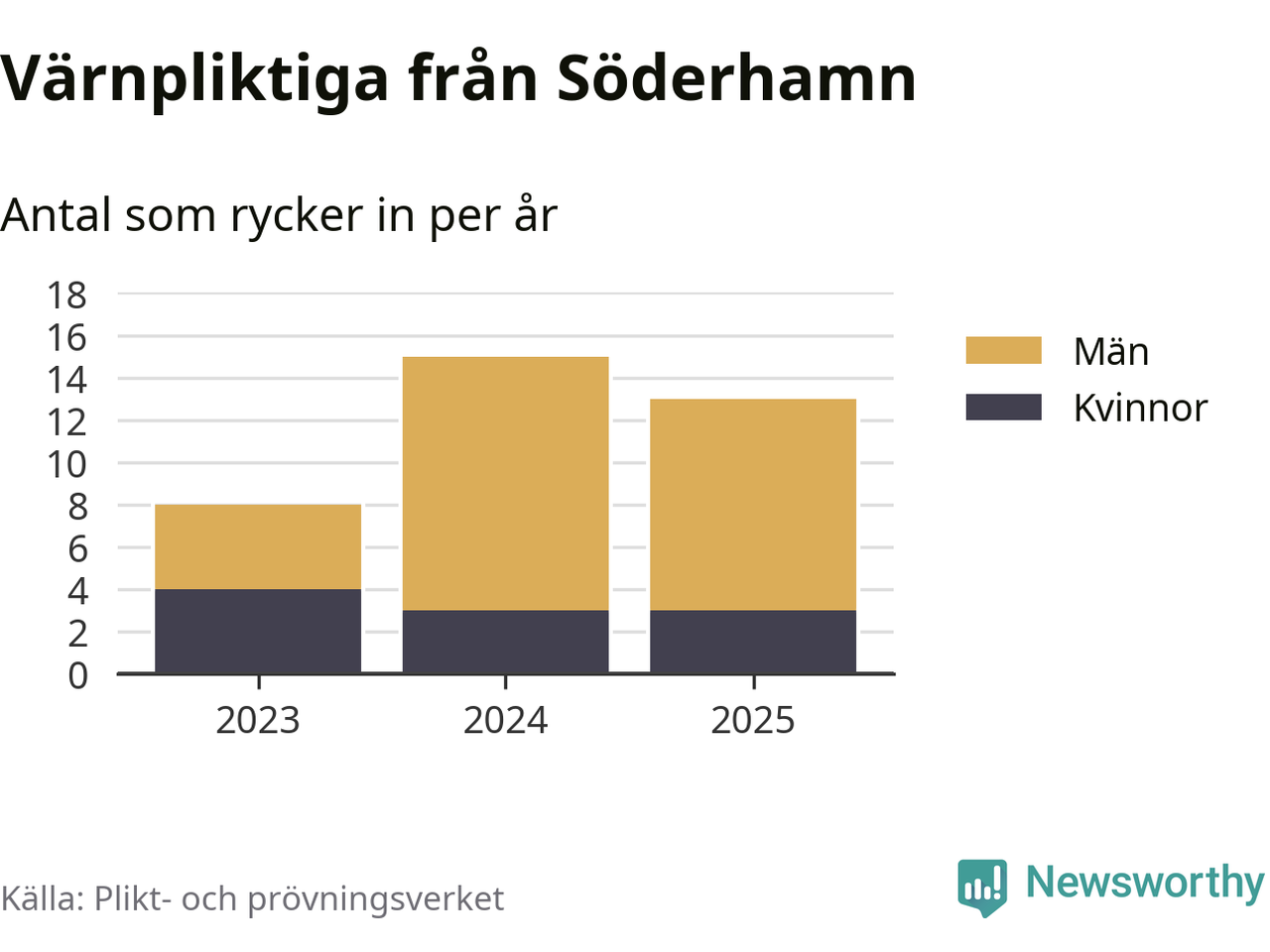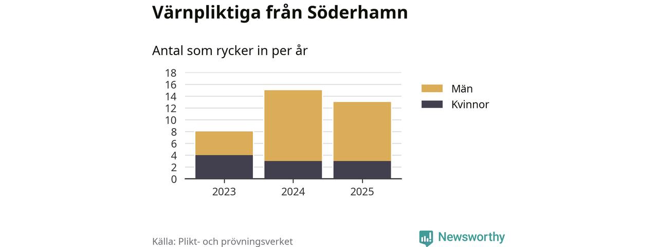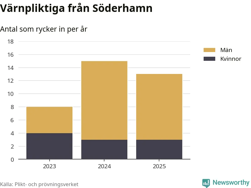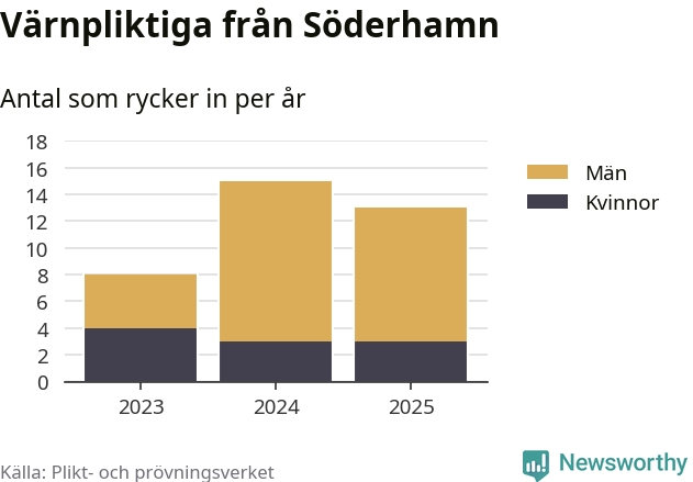 Sedan 2023 – som är det första året vi har jämförbara siffror för – har totalt 36 ungdomar från Söderhamn påbörjat sin värnplikt. Av dem har tio varit kvinnor.