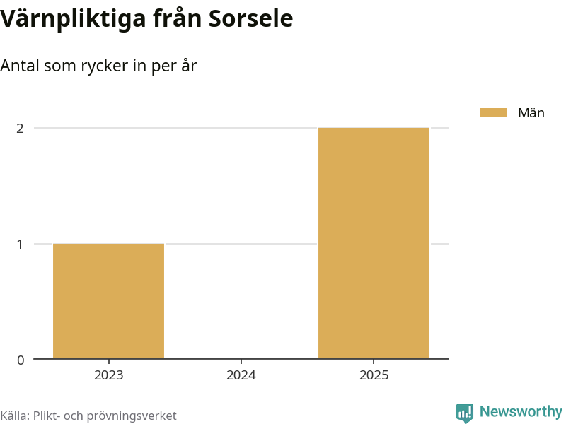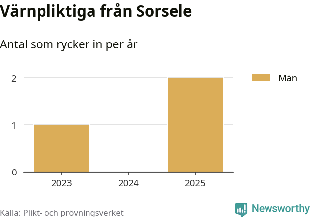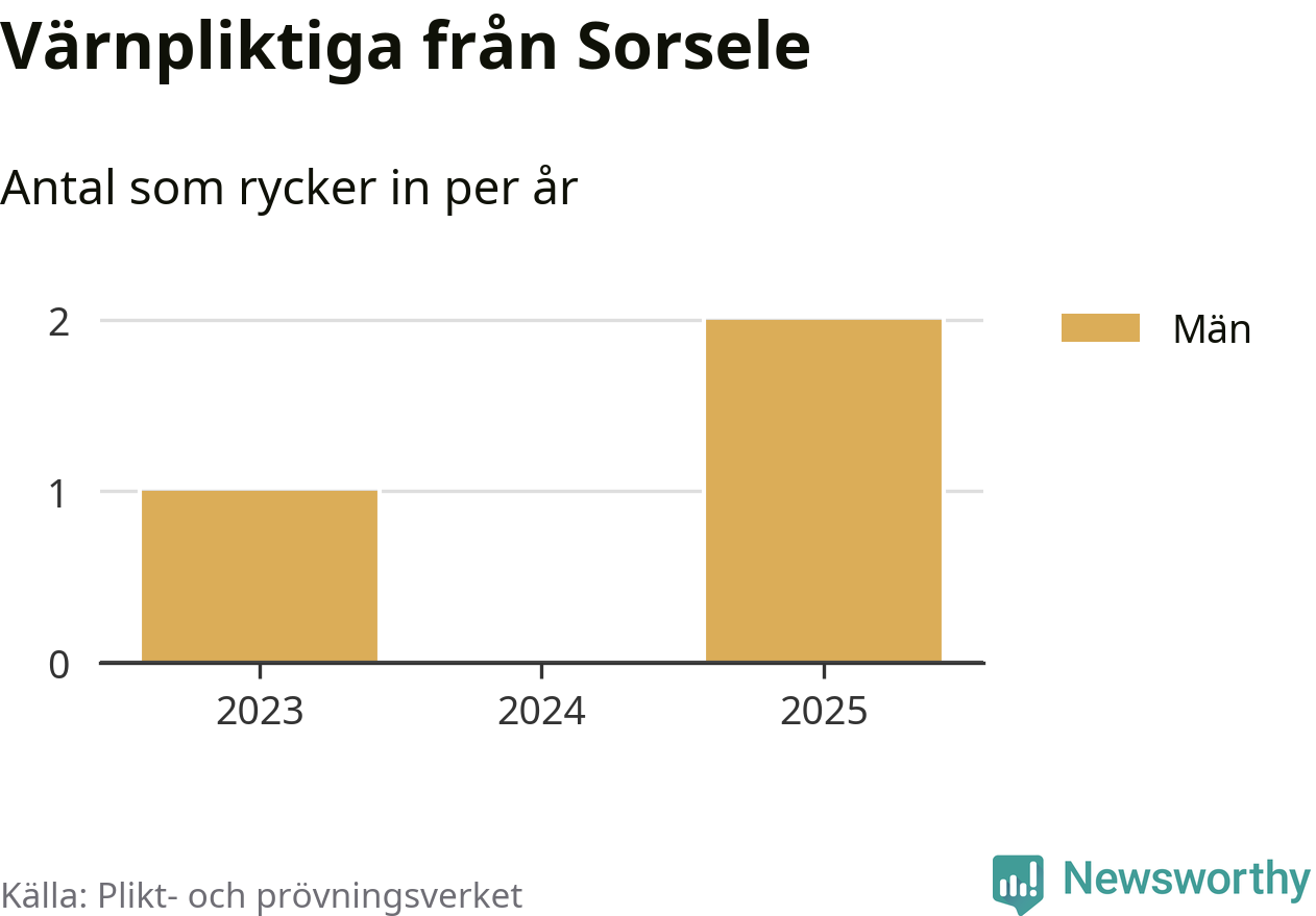 Sedan 2023 – som är det första året vi har jämförbara siffror för – har totalt tre ungdomar från Sorsele påbörjat sin värnplikt. Ingen av dem har varit kvinnor.