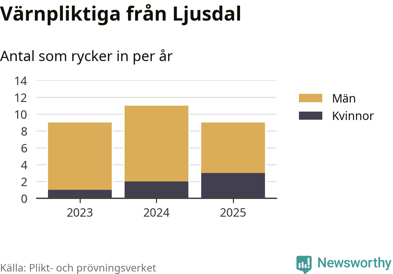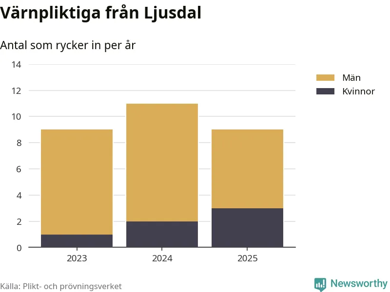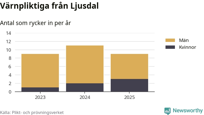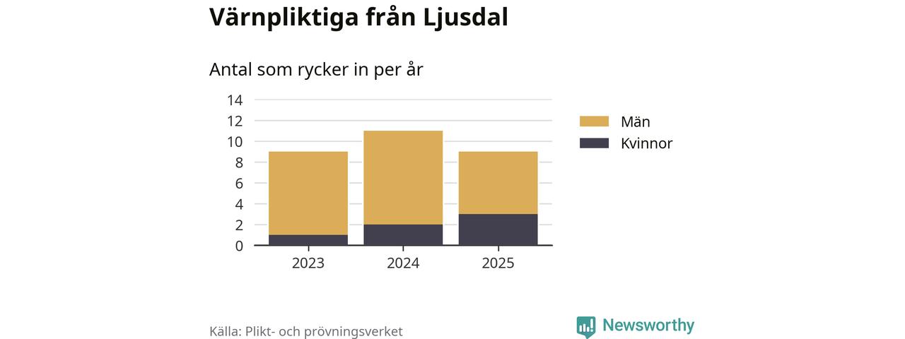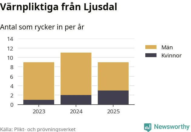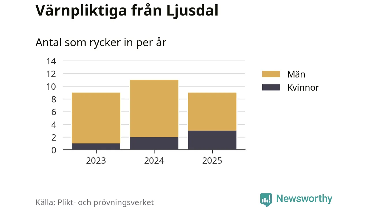 Sedan 2023 – som är det första året vi har jämförbara siffror för – har totalt 29 ungdomar från Ljusdal påbörjat sin värnplikt. Av dem har sex varit kvinnor.