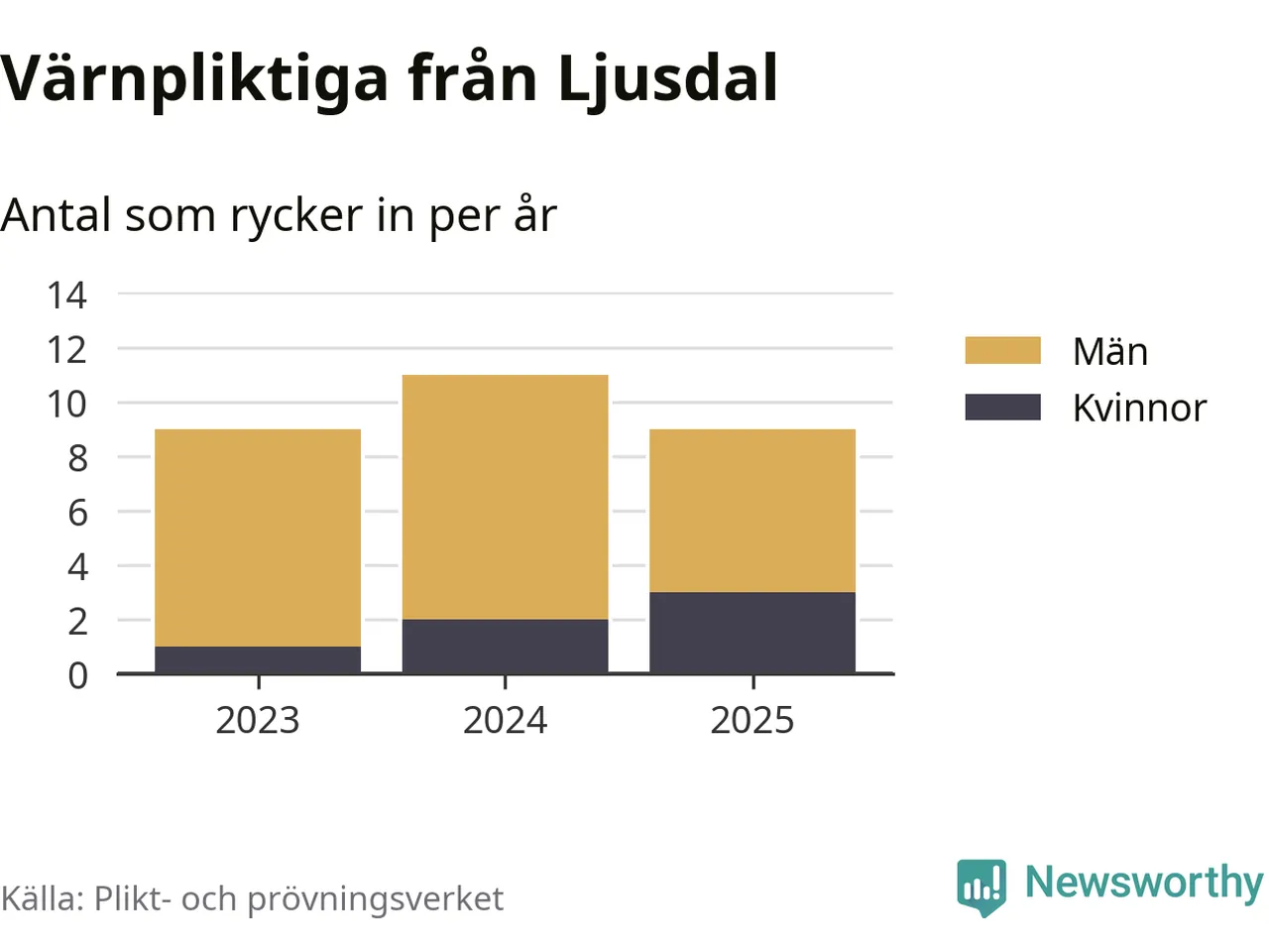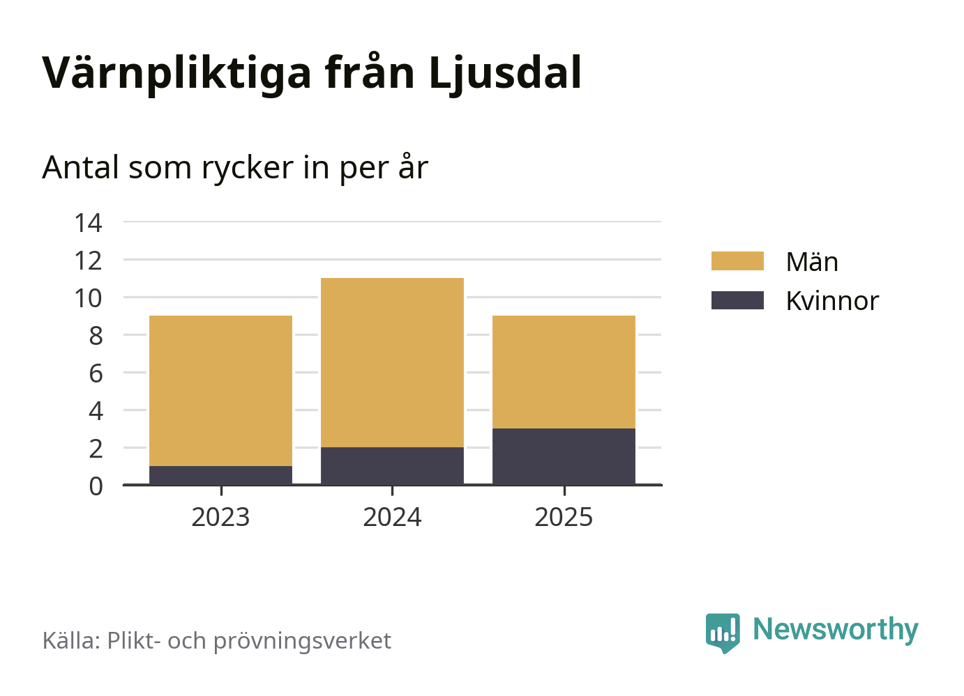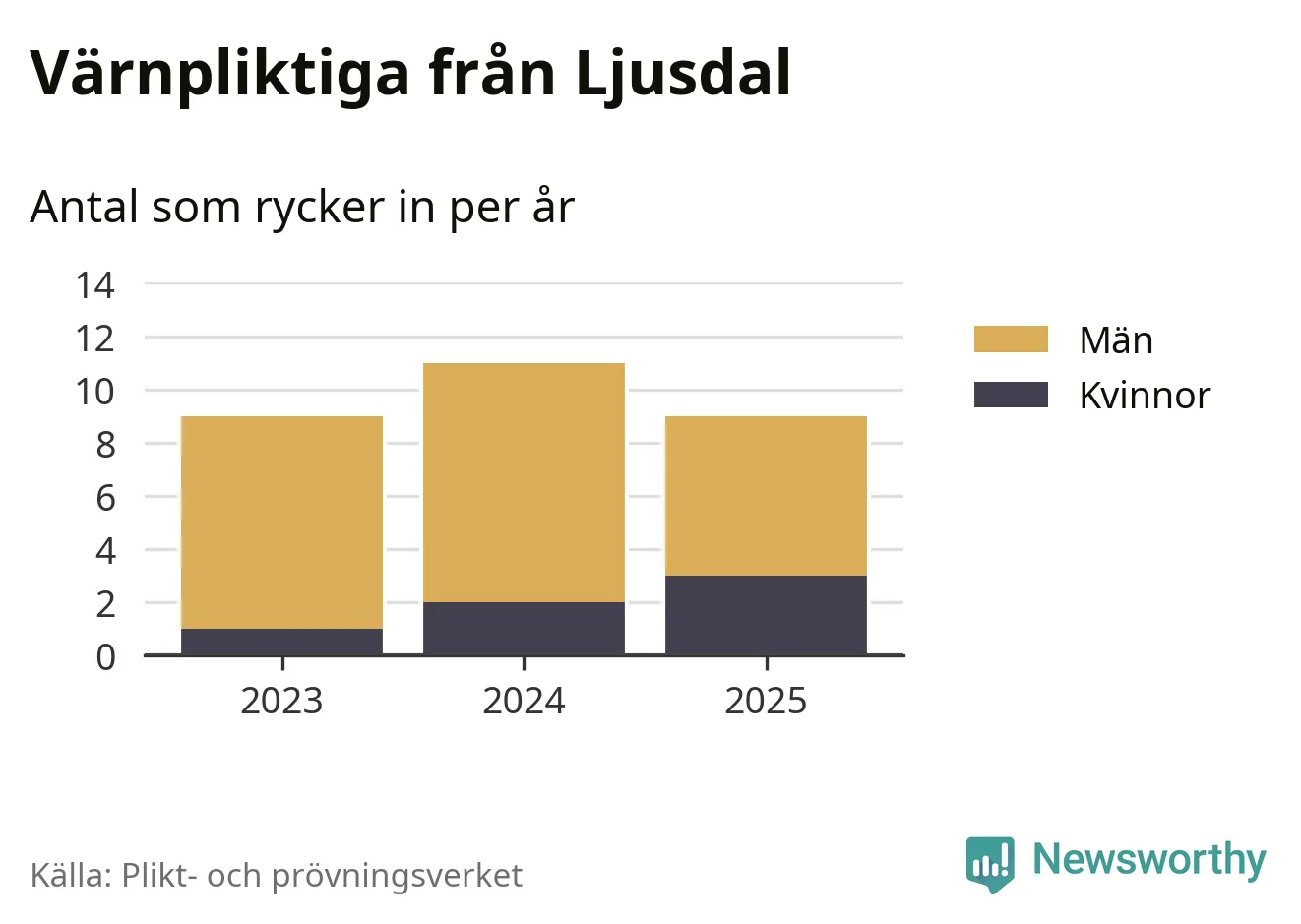 Sedan 2023 – som är det första året vi har jämförbara siffror för – har totalt 29 ungdomar från Ljusdal påbörjat sin värnplikt. Av dem har sex varit kvinnor.