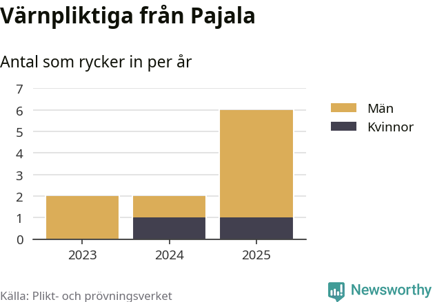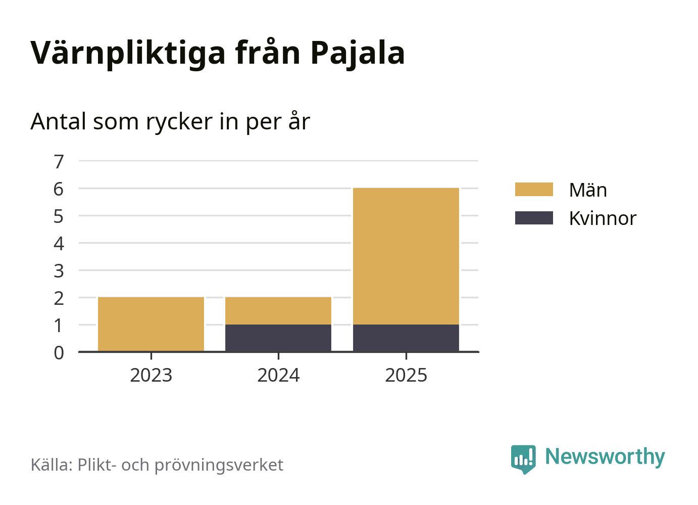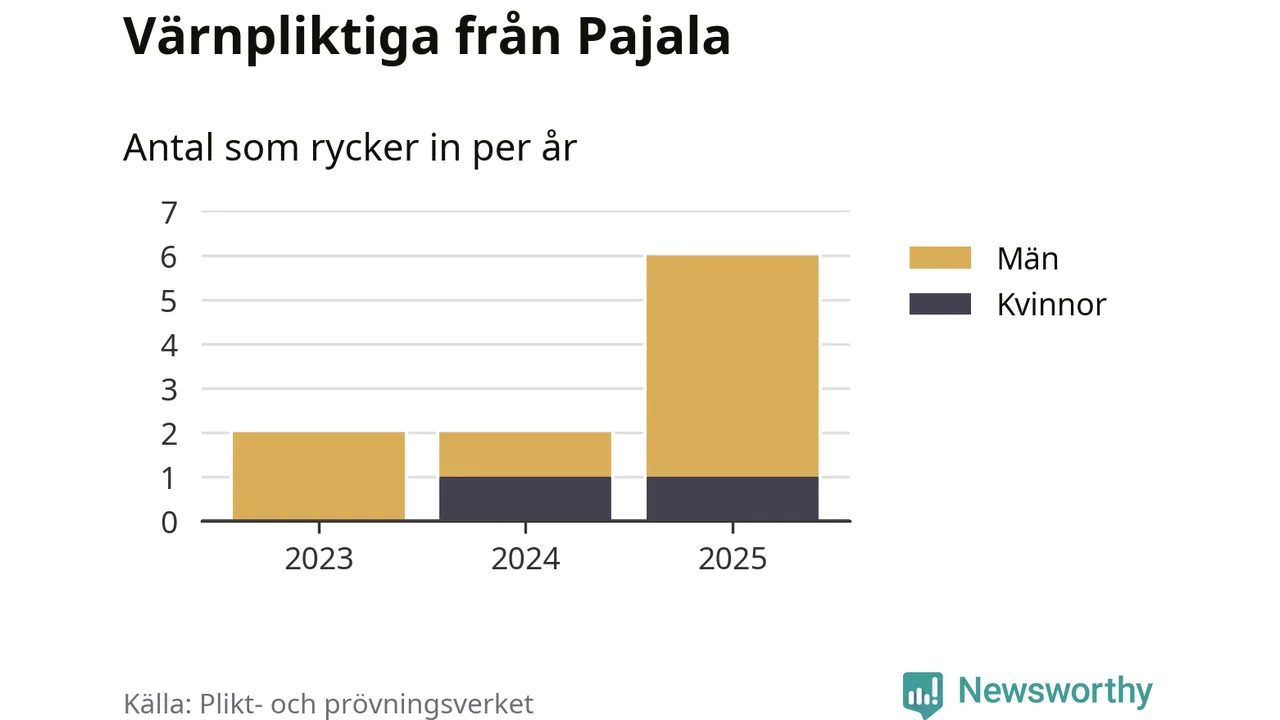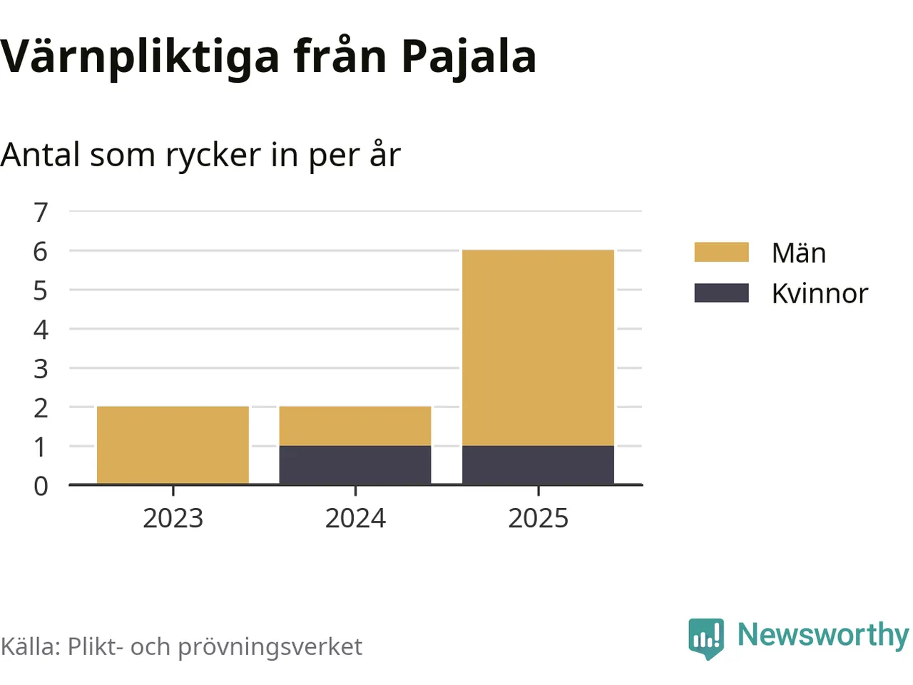 Sedan 2023 – som är det första året vi har jämförbara siffror för – har totalt tio ungdomar från Pajala påbörjat sin värnplikt. Av dem har två varit kvinnor.