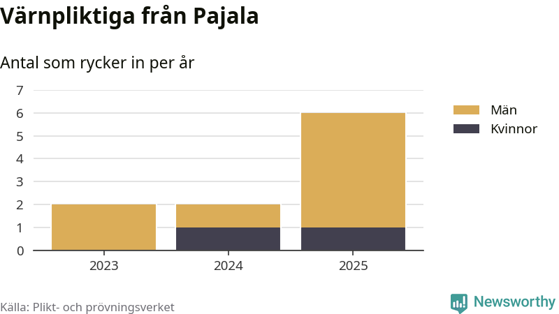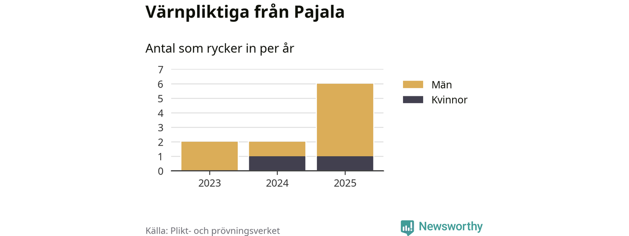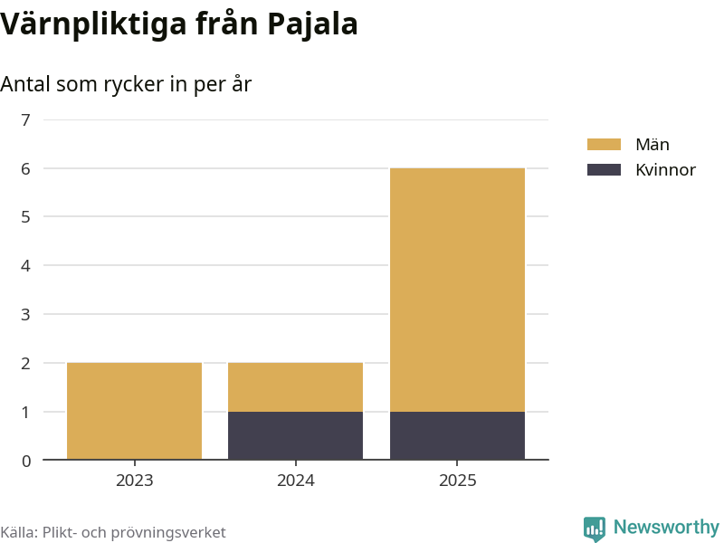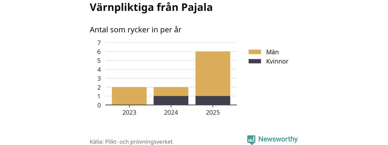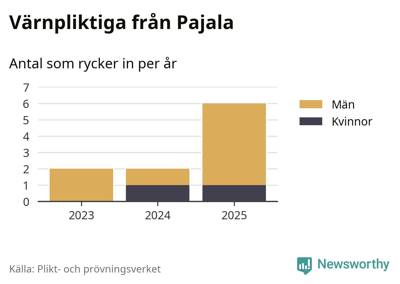 Sedan 2023 – som är det första året vi har jämförbara siffror för – har totalt tio ungdomar från Pajala påbörjat sin värnplikt. Av dem har två varit kvinnor.