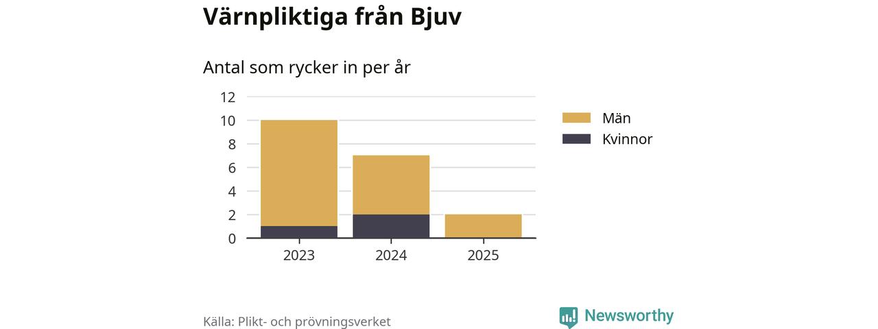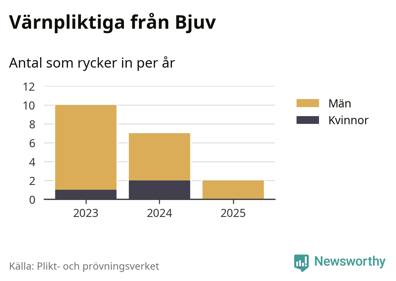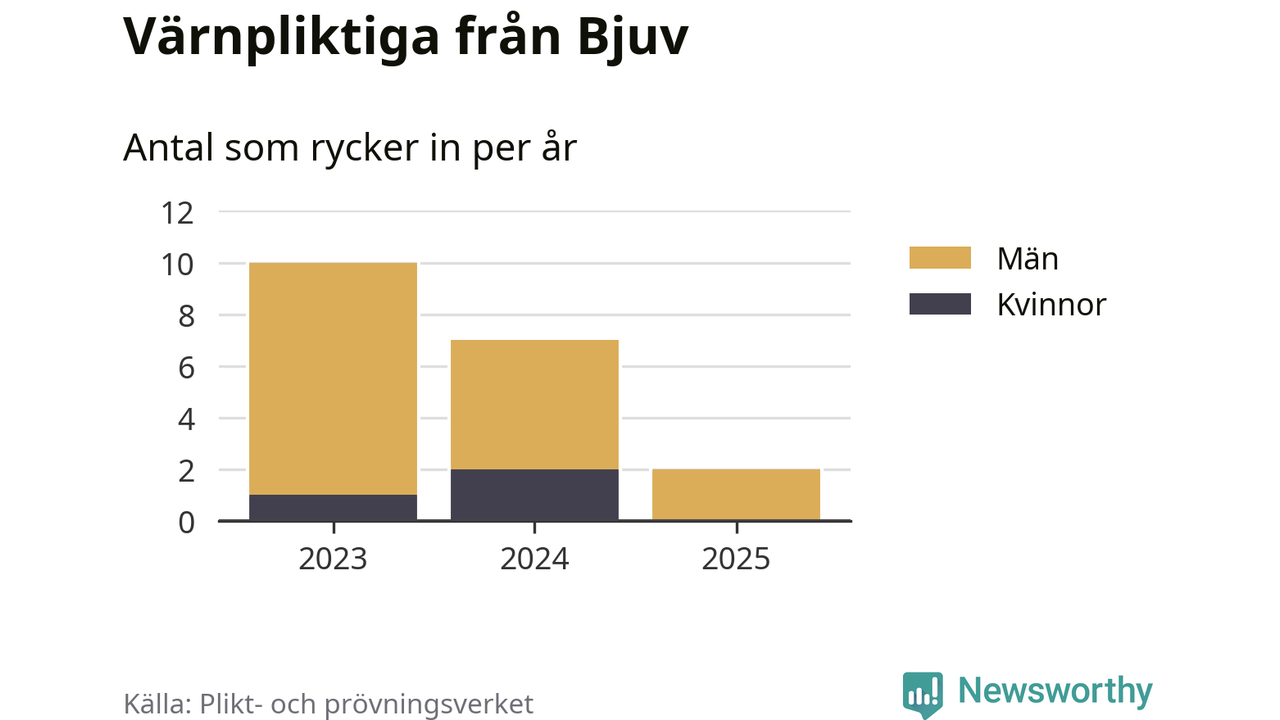 Sedan 2023 – som är det första året vi har jämförbara siffror för – har totalt 19 ungdomar från Bjuv påbörjat sin värnplikt. Av dem har tre varit kvinnor.