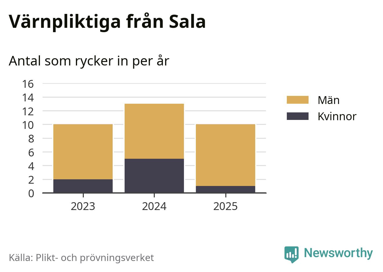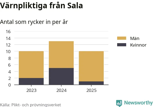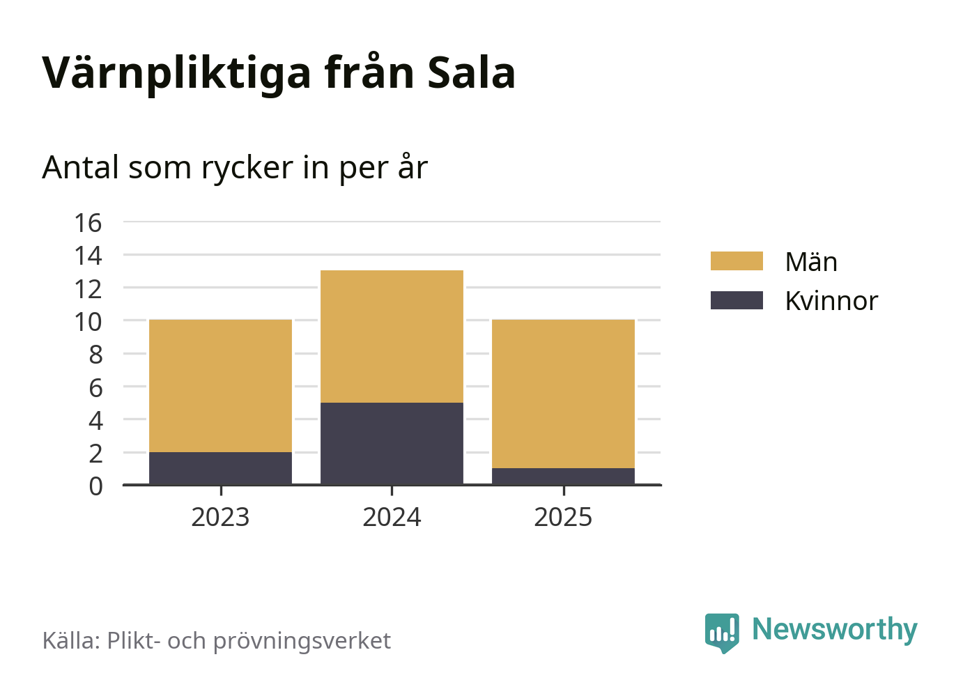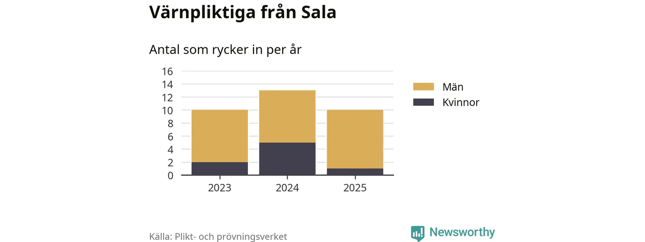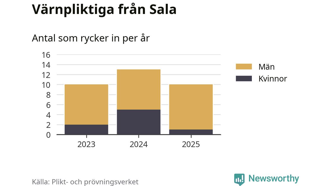 Sedan 2023 – som är det första året vi har jämförbara siffror för – har totalt 33 ungdomar från Sala påbörjat sin värnplikt. Av dem har åtta varit kvinnor.