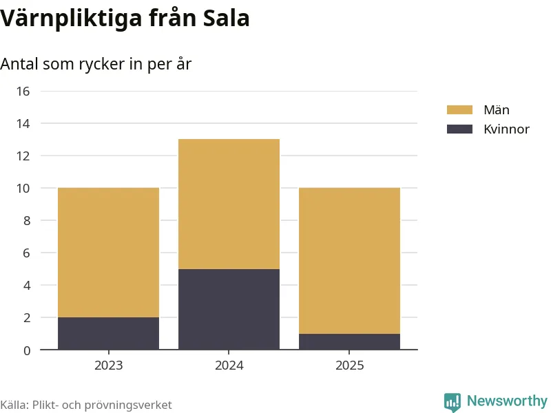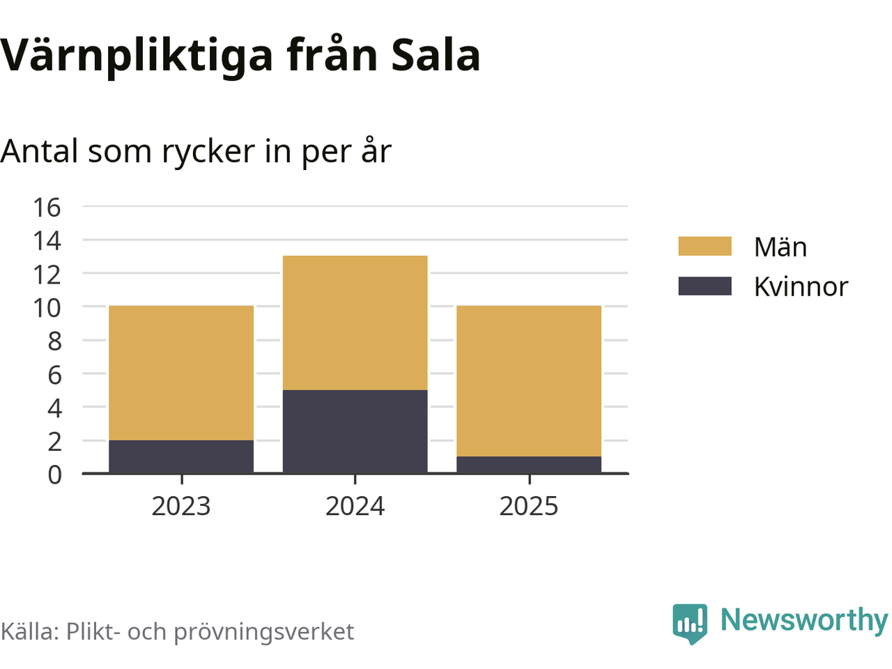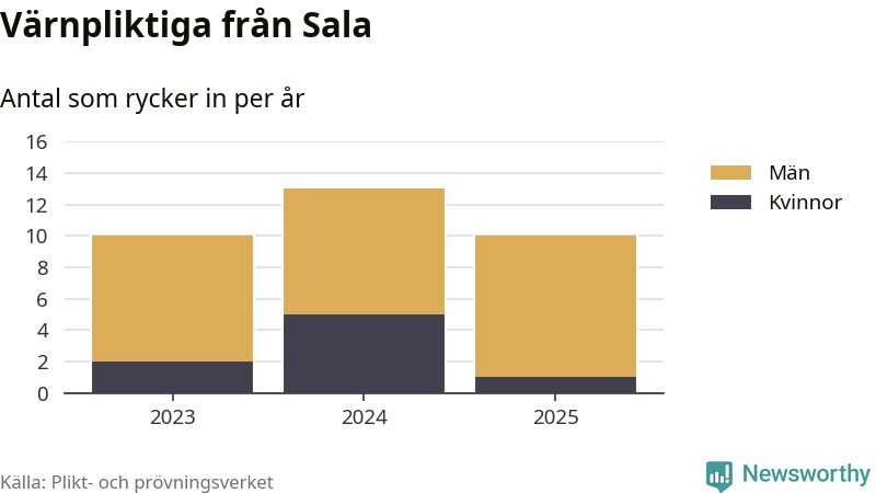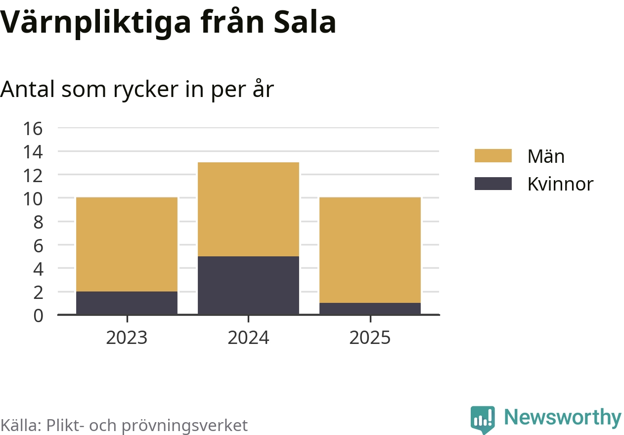 Sedan 2023 – som är det första året vi har jämförbara siffror för – har totalt 33 ungdomar från Sala påbörjat sin värnplikt. Av dem har åtta varit kvinnor.