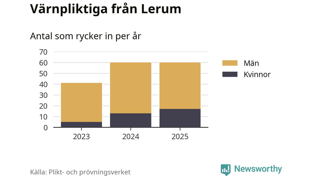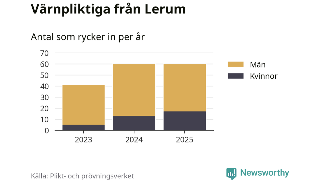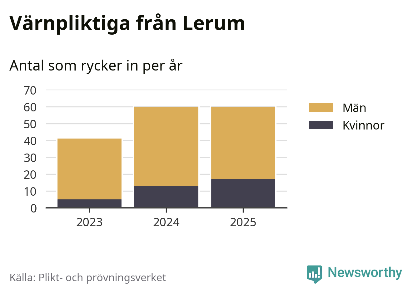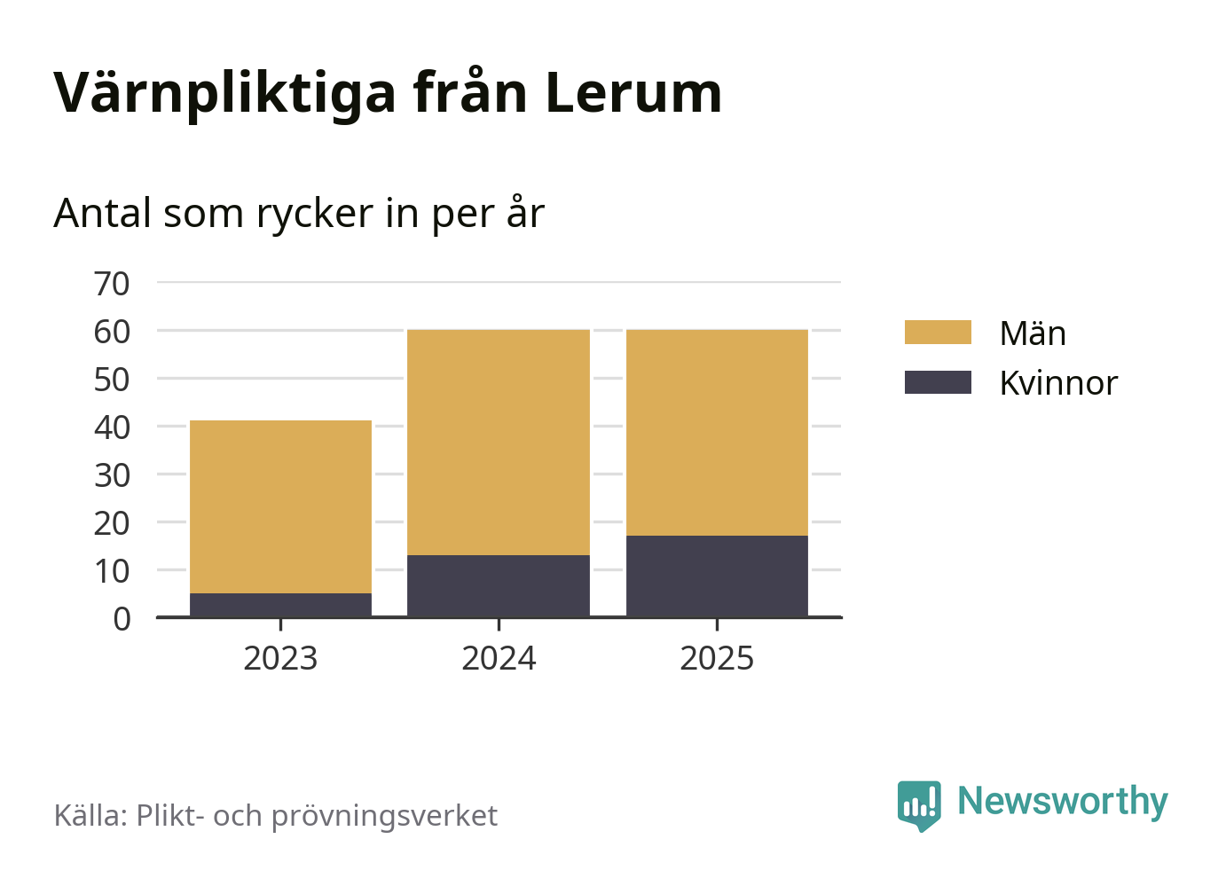 Sedan 2023 – som är det första året vi har jämförbara siffror för – har totalt 161 ungdomar från Lerum påbörjat sin värnplikt. Av dem har 35 varit kvinnor.