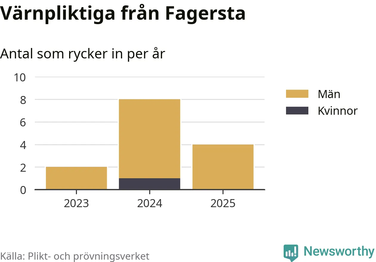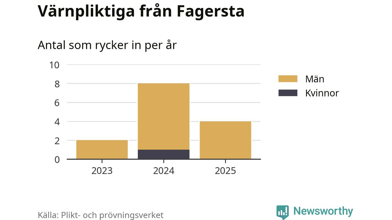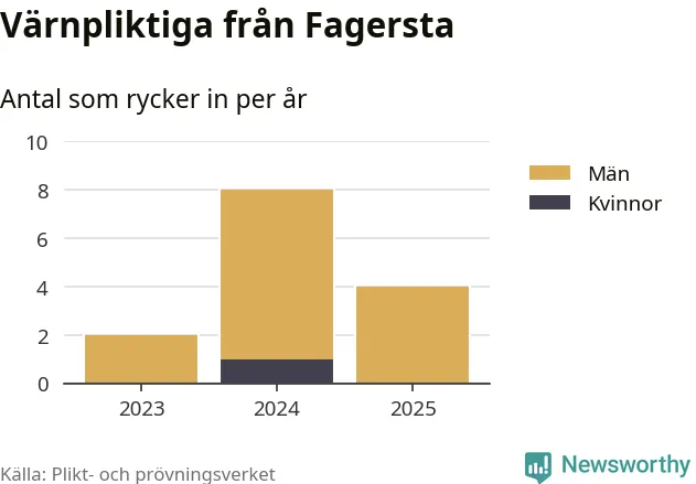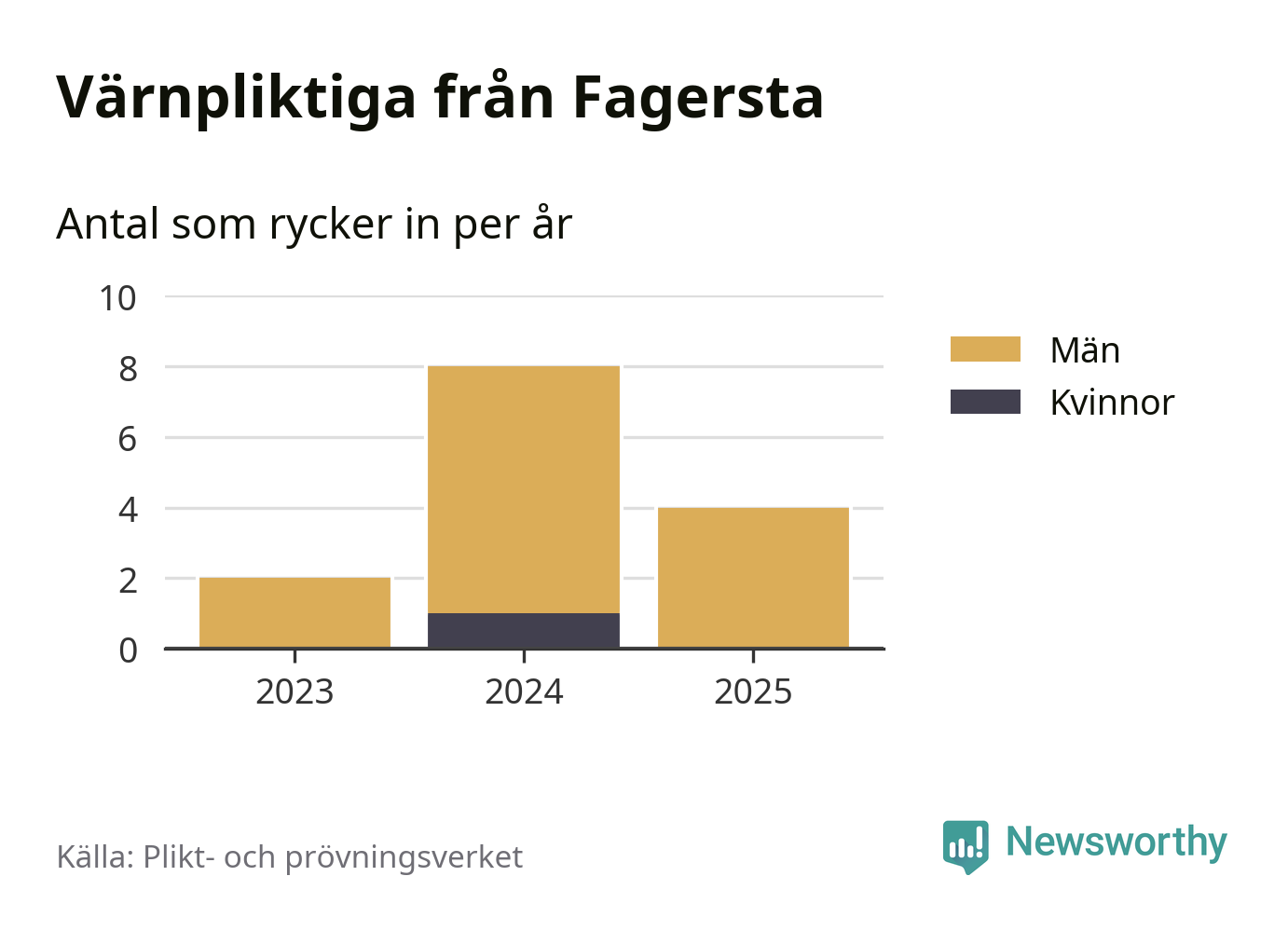 Sedan 2023 – som är det första året vi har jämförbara siffror för – har totalt 14 ungdomar från Fagersta påbörjat sin värnplikt. Av dem har en varit kvinna.