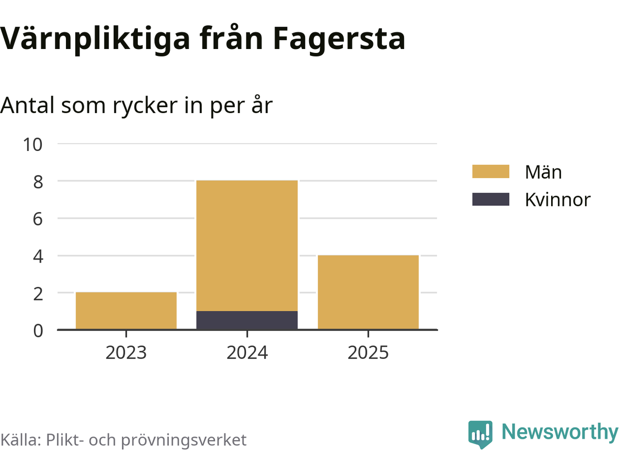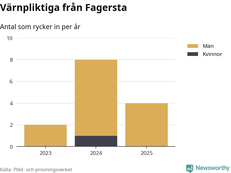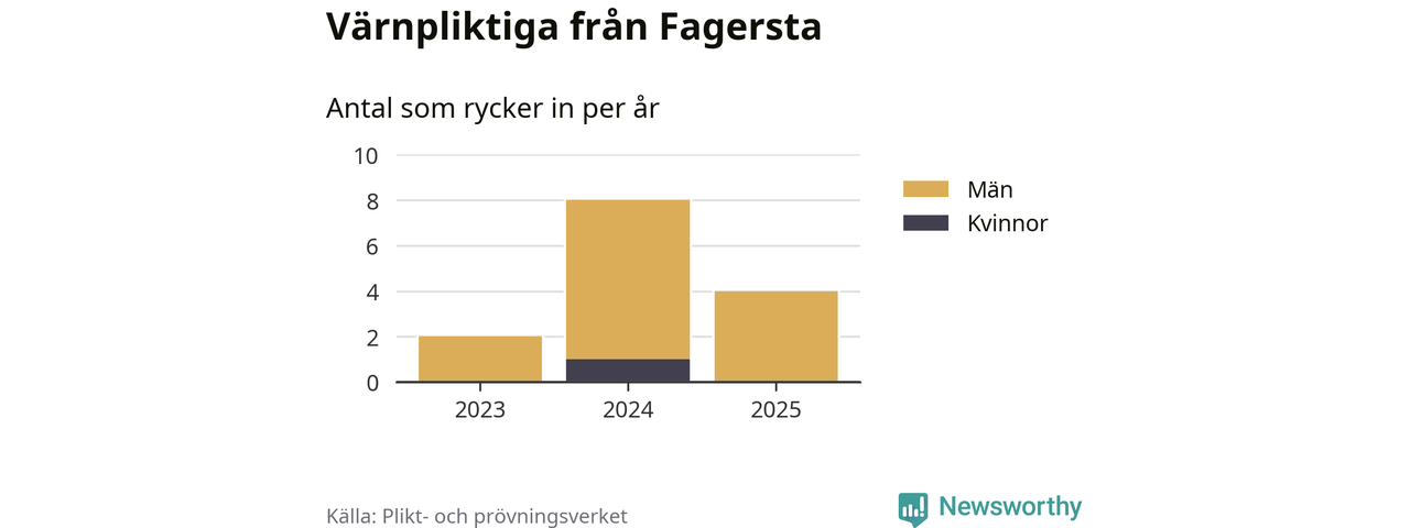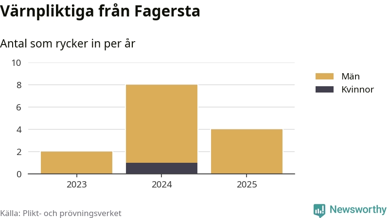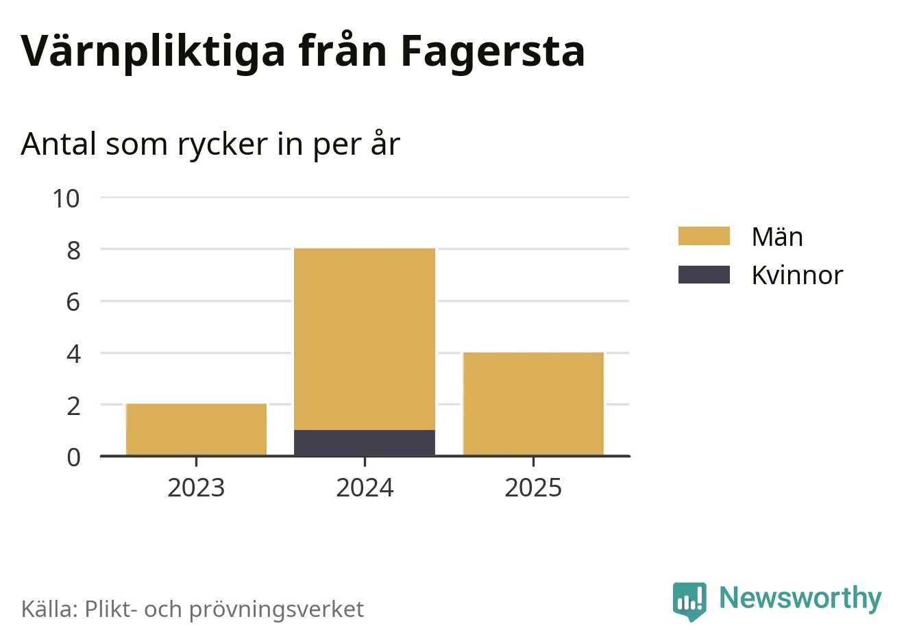 Sedan 2023 – som är det första året vi har jämförbara siffror för – har totalt 14 ungdomar från Fagersta påbörjat sin värnplikt. Av dem har en varit kvinna.