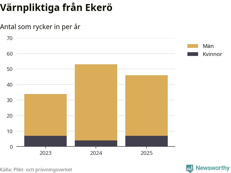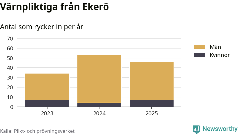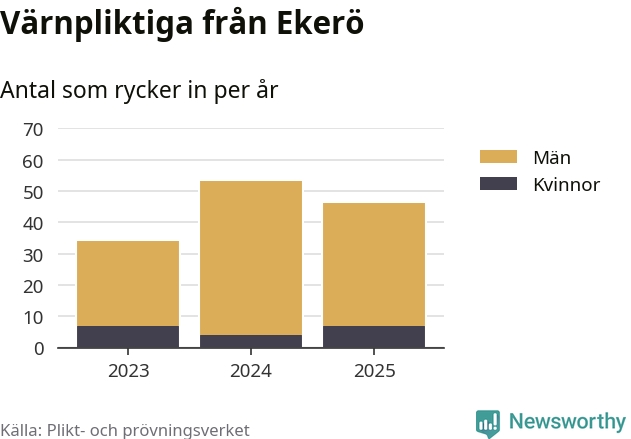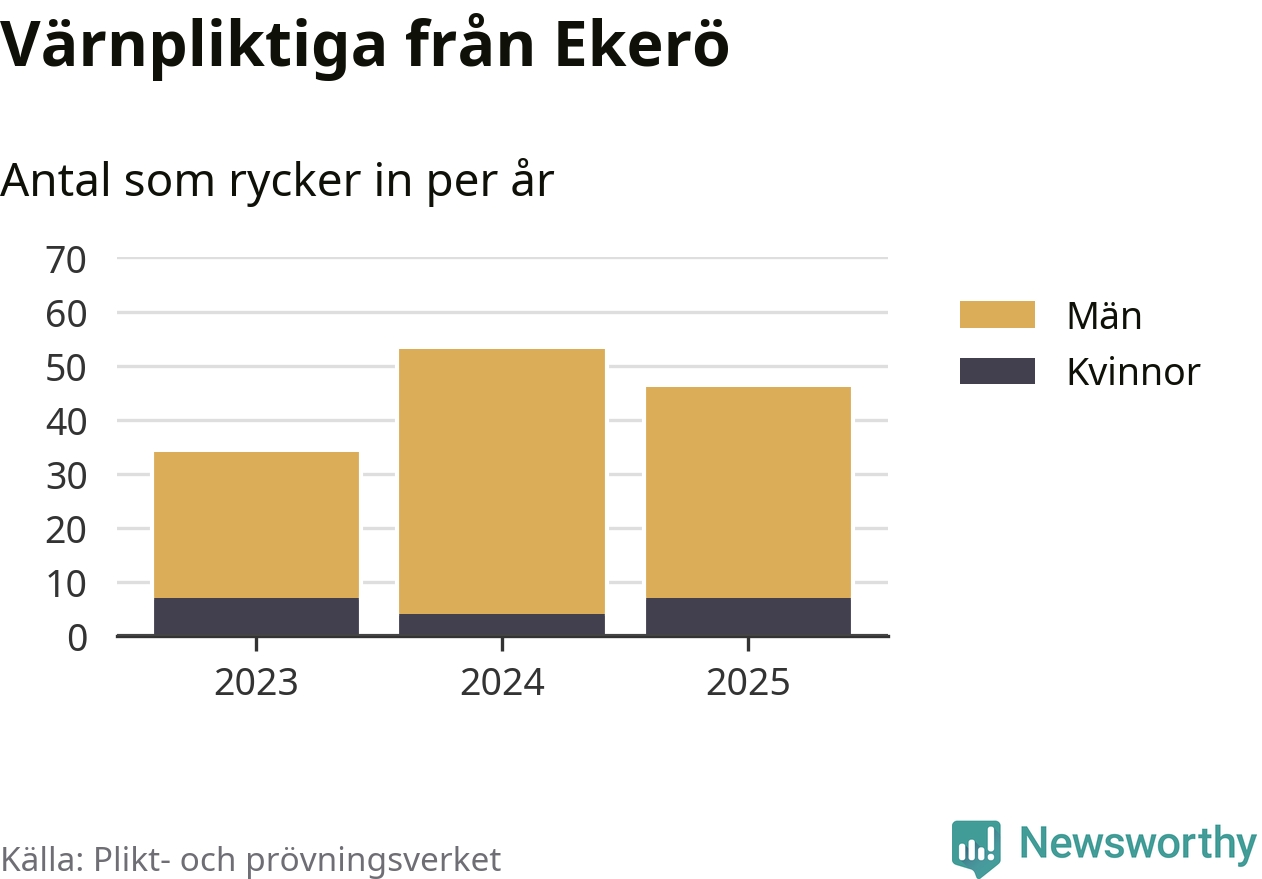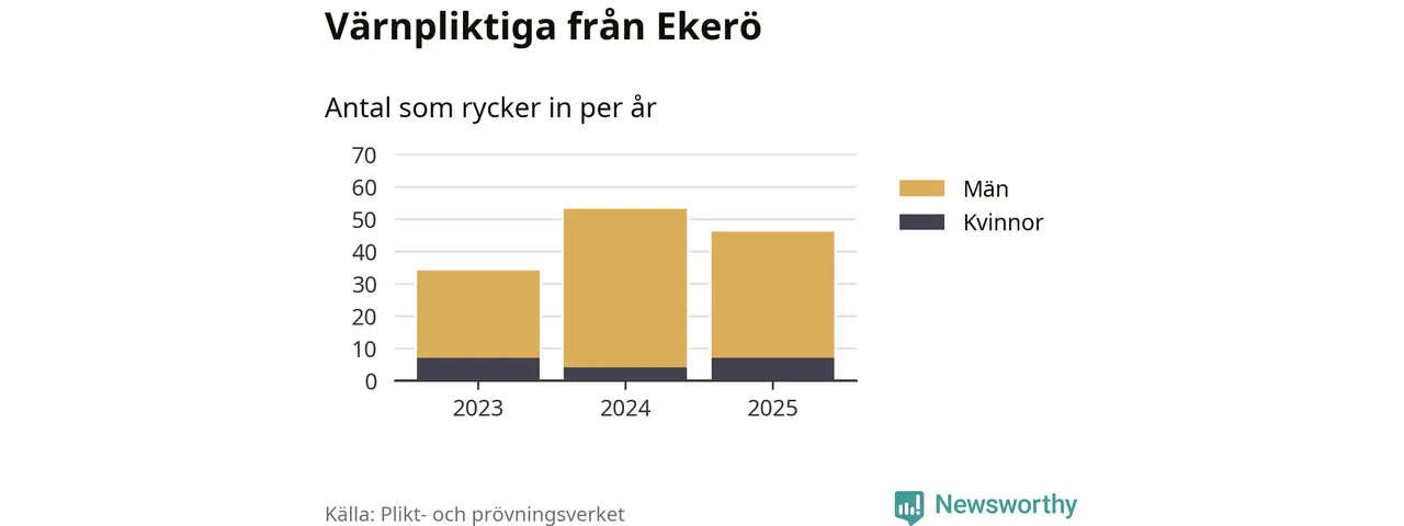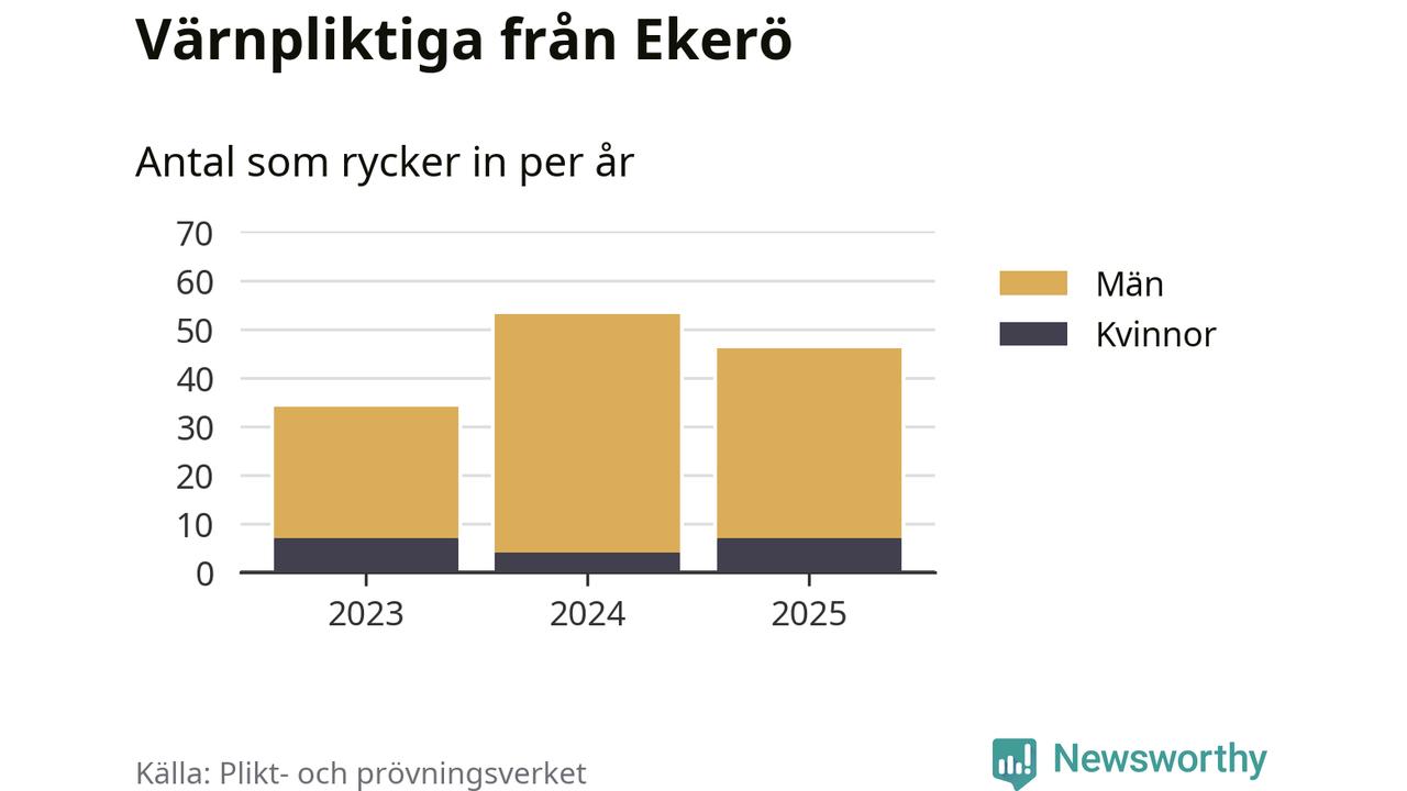 Sedan 2023 – som är det första året vi har jämförbara siffror för – har totalt 133 ungdomar från Ekerö påbörjat sin värnplikt. Av dem har 18 varit kvinnor.