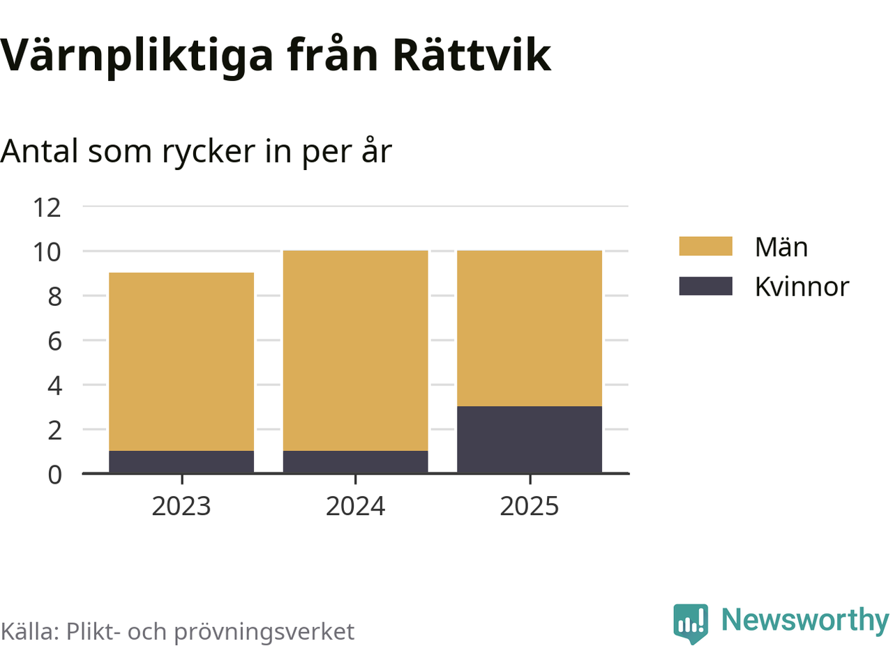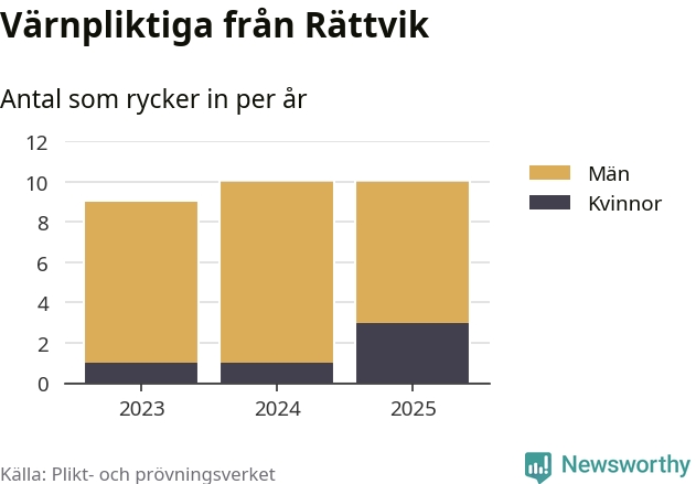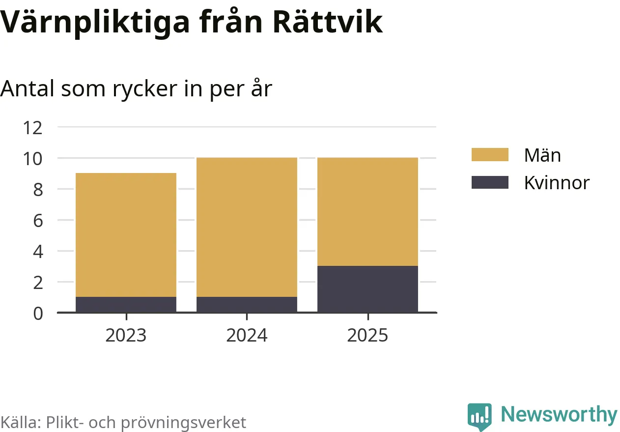Sedan 2023 – som är det första året vi har jämförbara siffror för – har totalt 29 ungdomar från Rättvik påbörjat sin värnplikt. Av dem har fem varit kvinnor.
