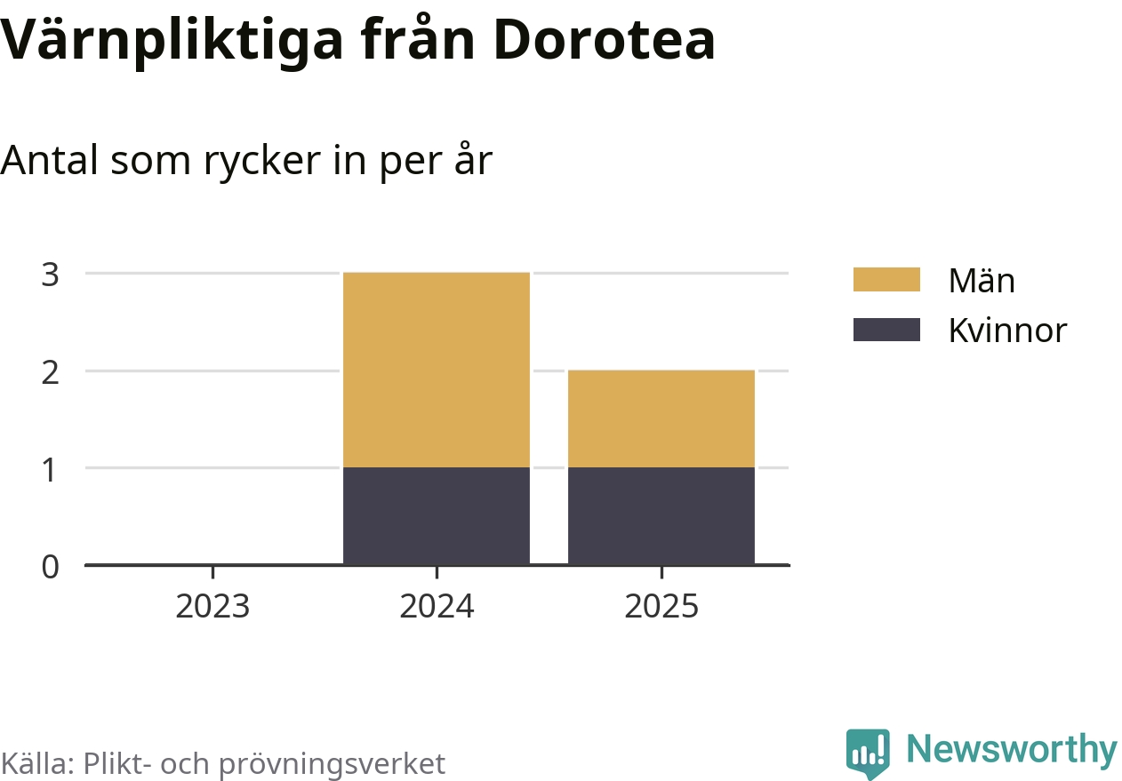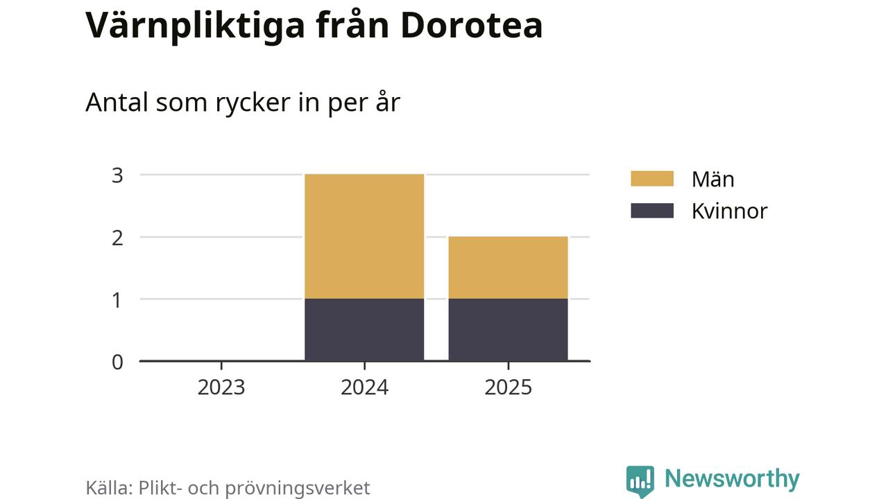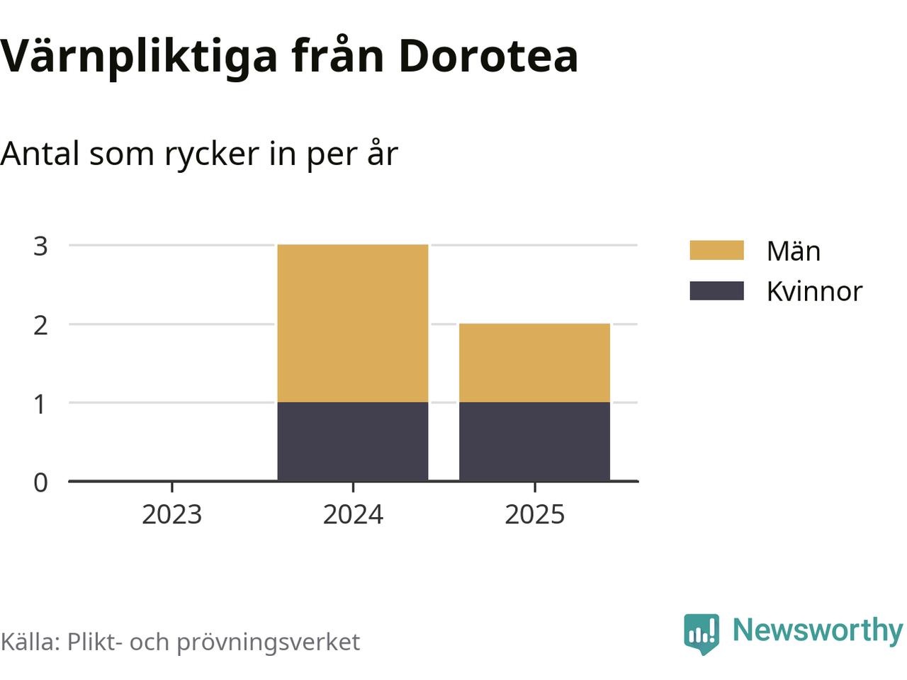 Sedan 2023 – som är det första året vi har jämförbara siffror för – har totalt fem ungdomar från Dorotea påbörjat sin värnplikt. Av dem har två varit kvinnor.