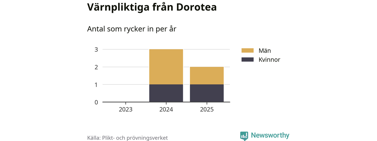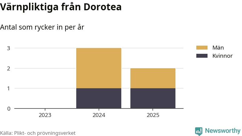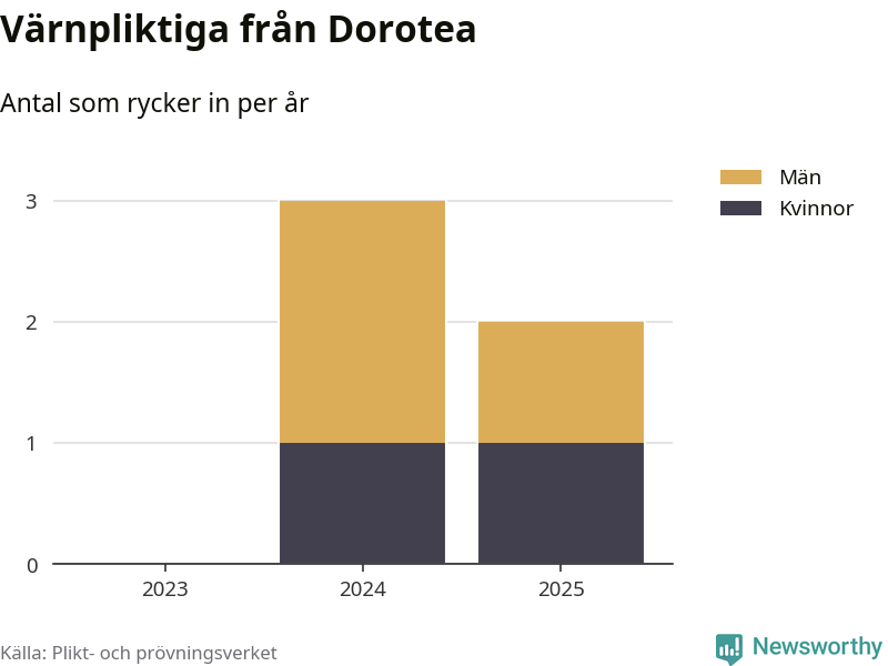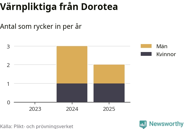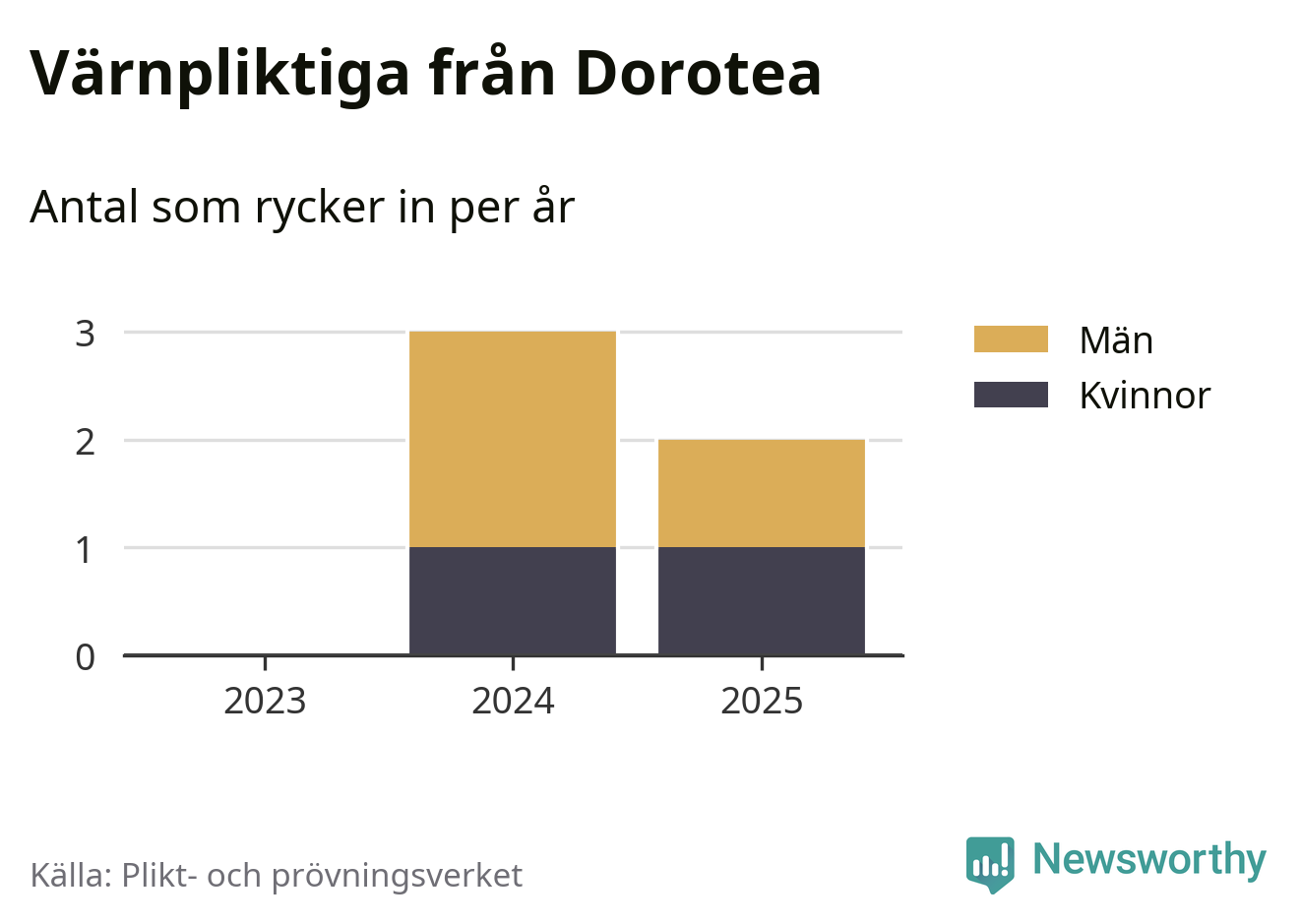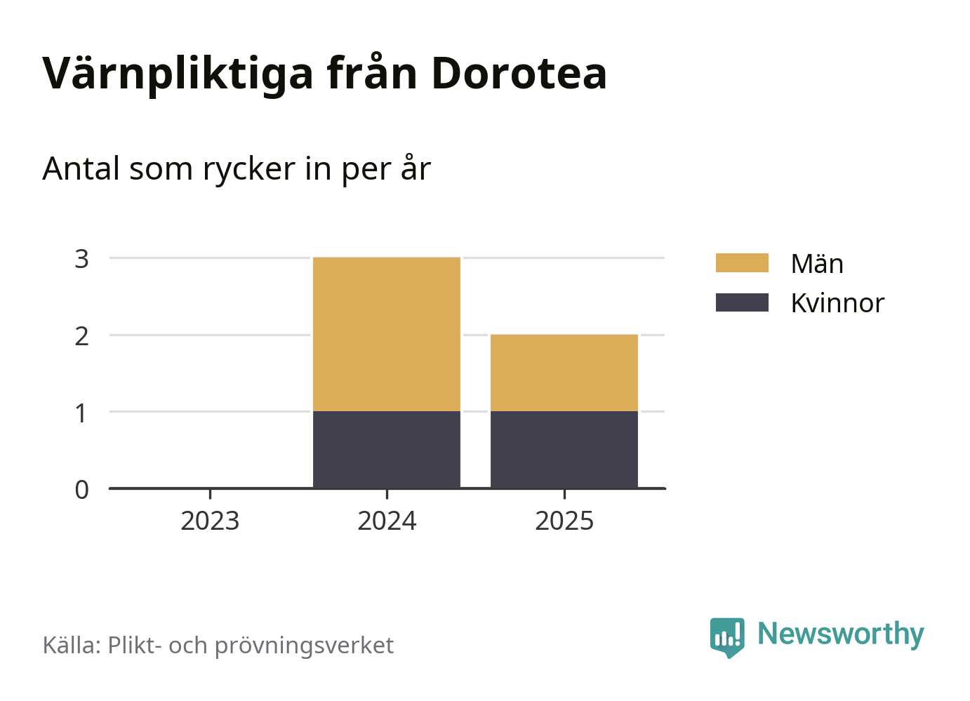Sedan 2023 – som är det första året vi har jämförbara siffror för – har totalt fem ungdomar från Dorotea påbörjat sin värnplikt. Av dem har två varit kvinnor.