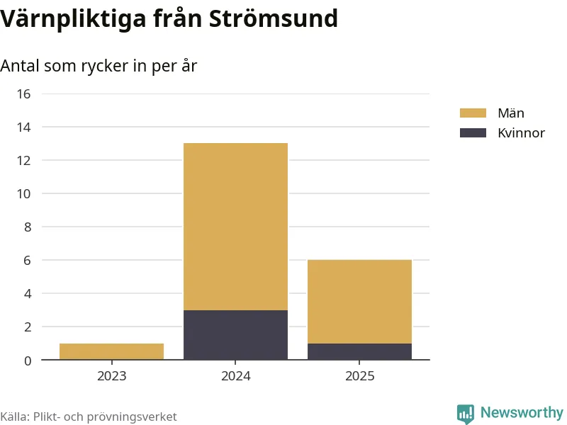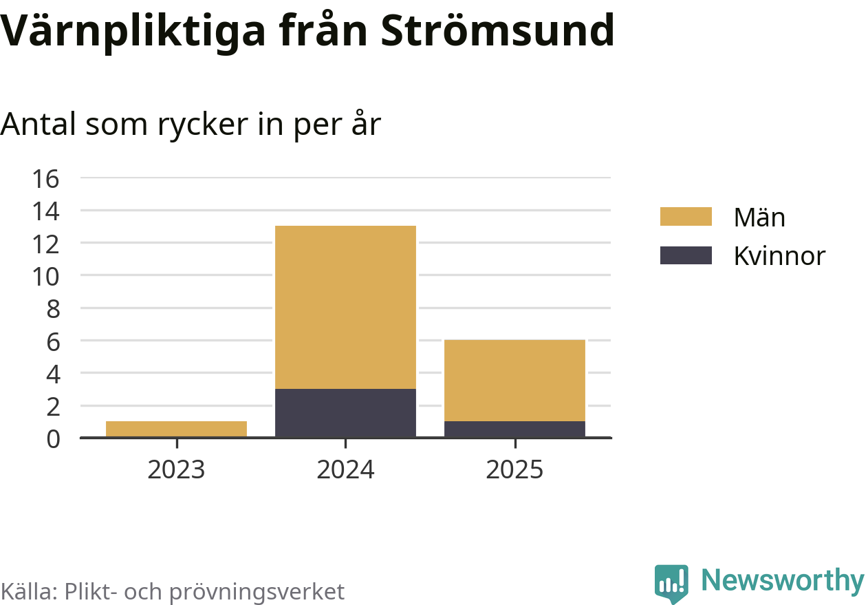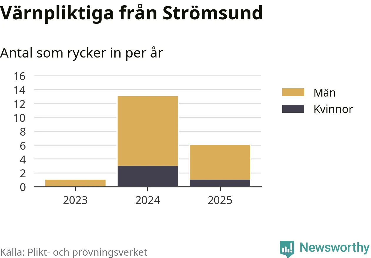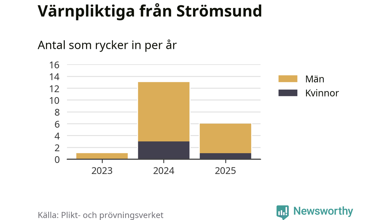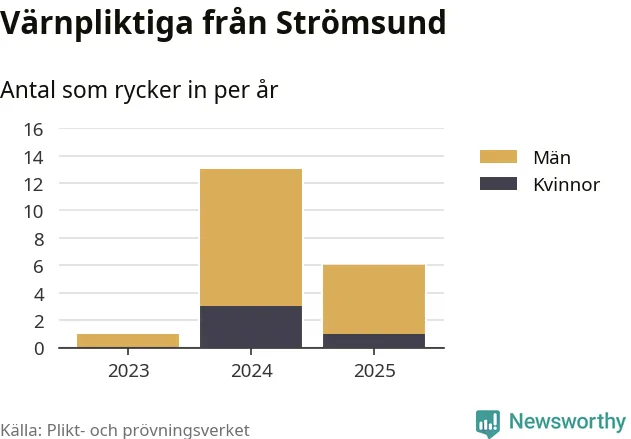 Sedan 2023 – som är det första året vi har jämförbara siffror för – har totalt 20 ungdomar från Strömsund påbörjat sin värnplikt. Av dem har fyra varit kvinnor.