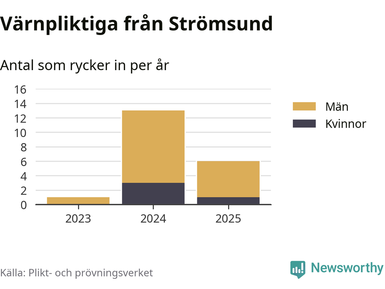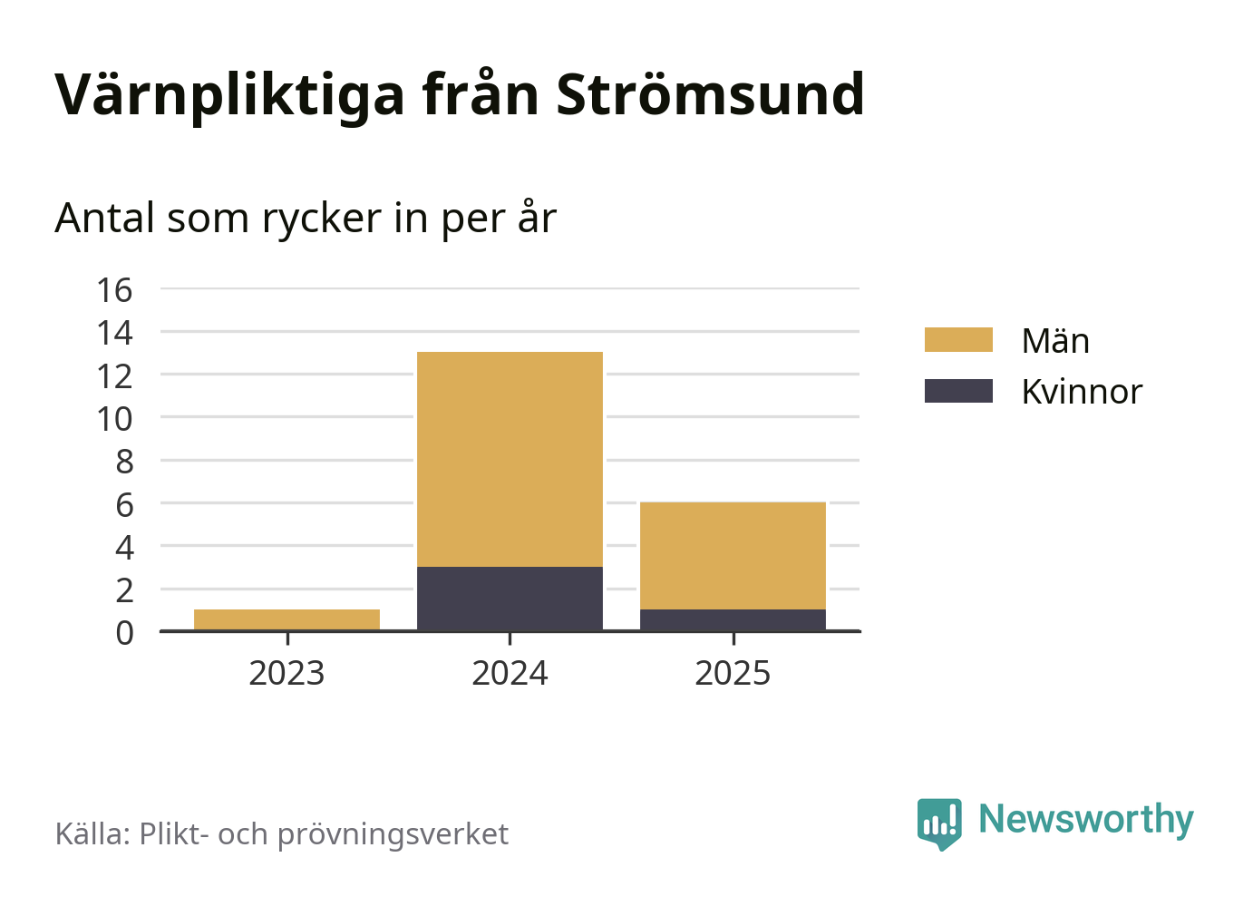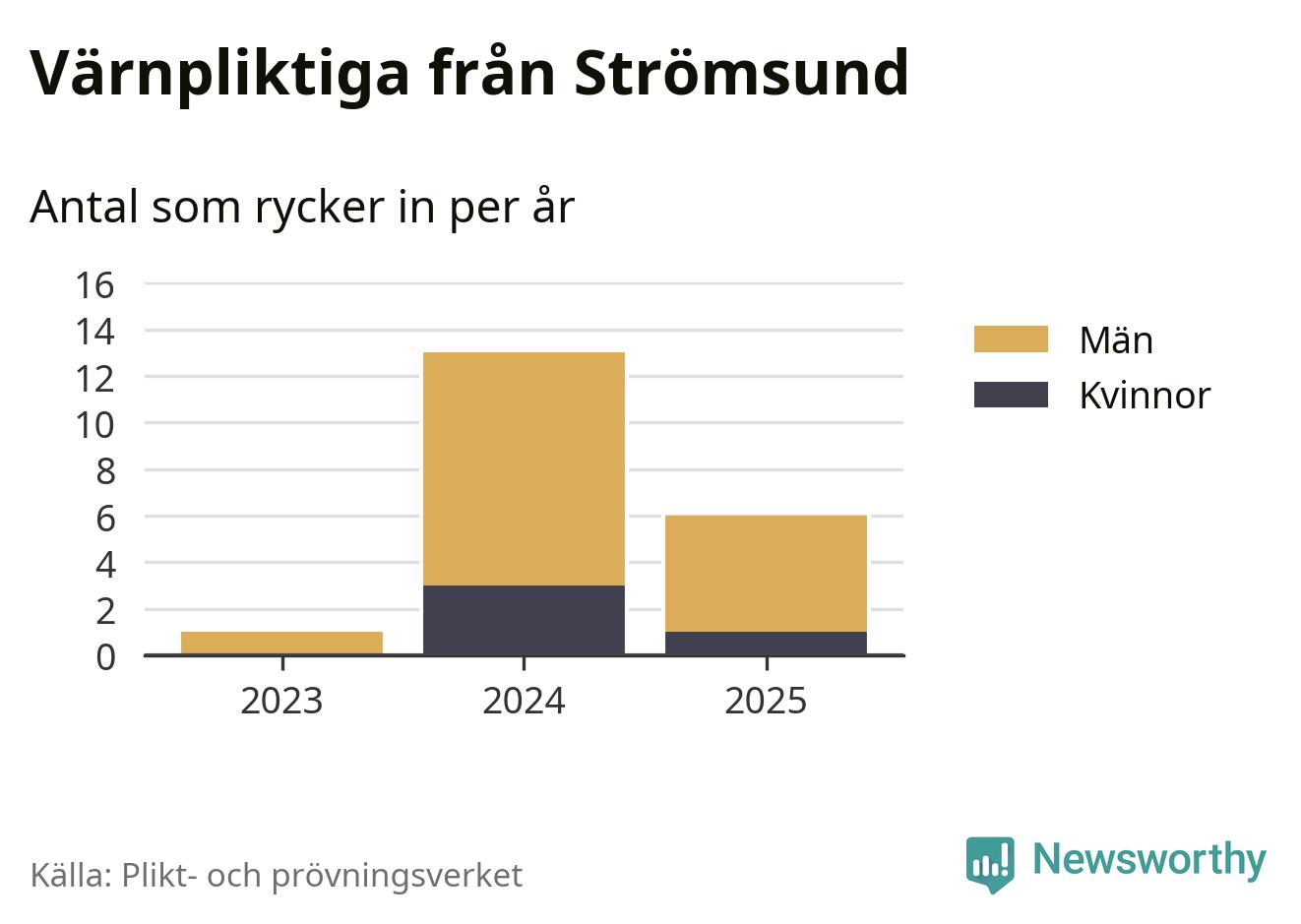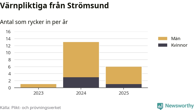 Sedan 2023 – som är det första året vi har jämförbara siffror för – har totalt 20 ungdomar från Strömsund påbörjat sin värnplikt. Av dem har fyra varit kvinnor.