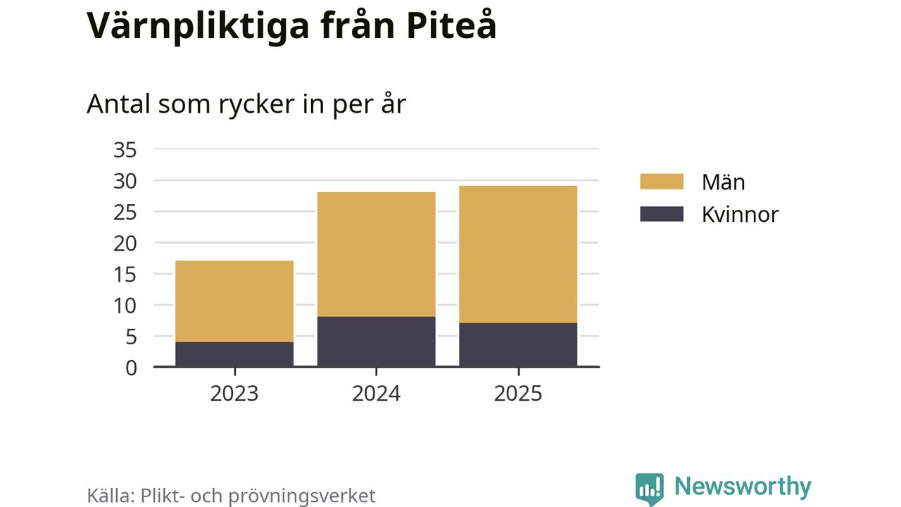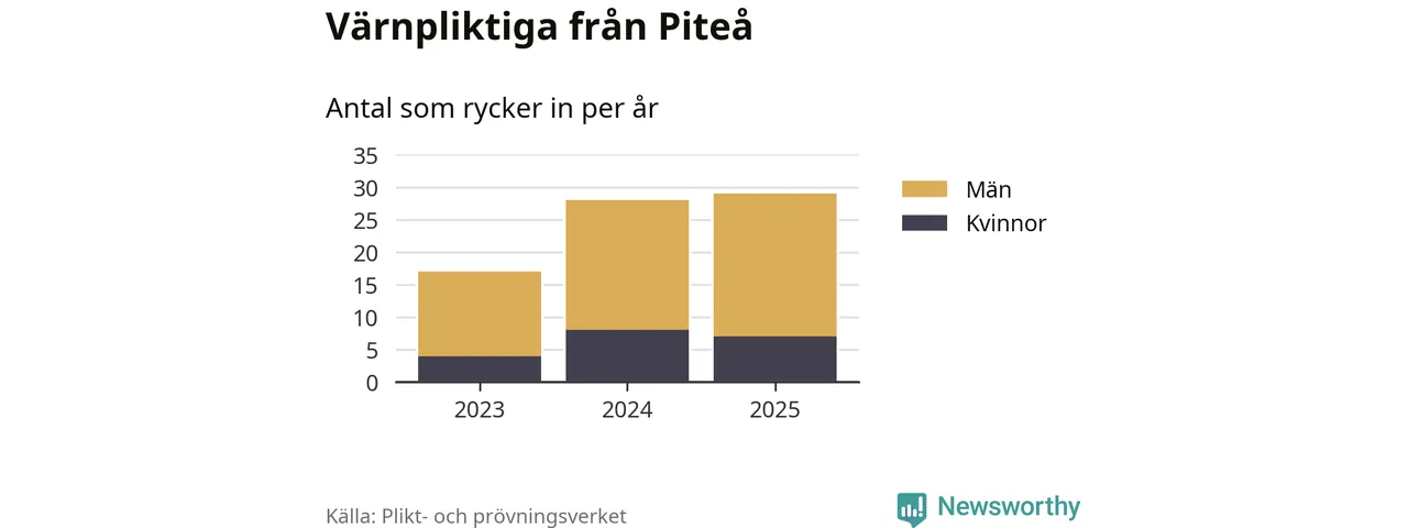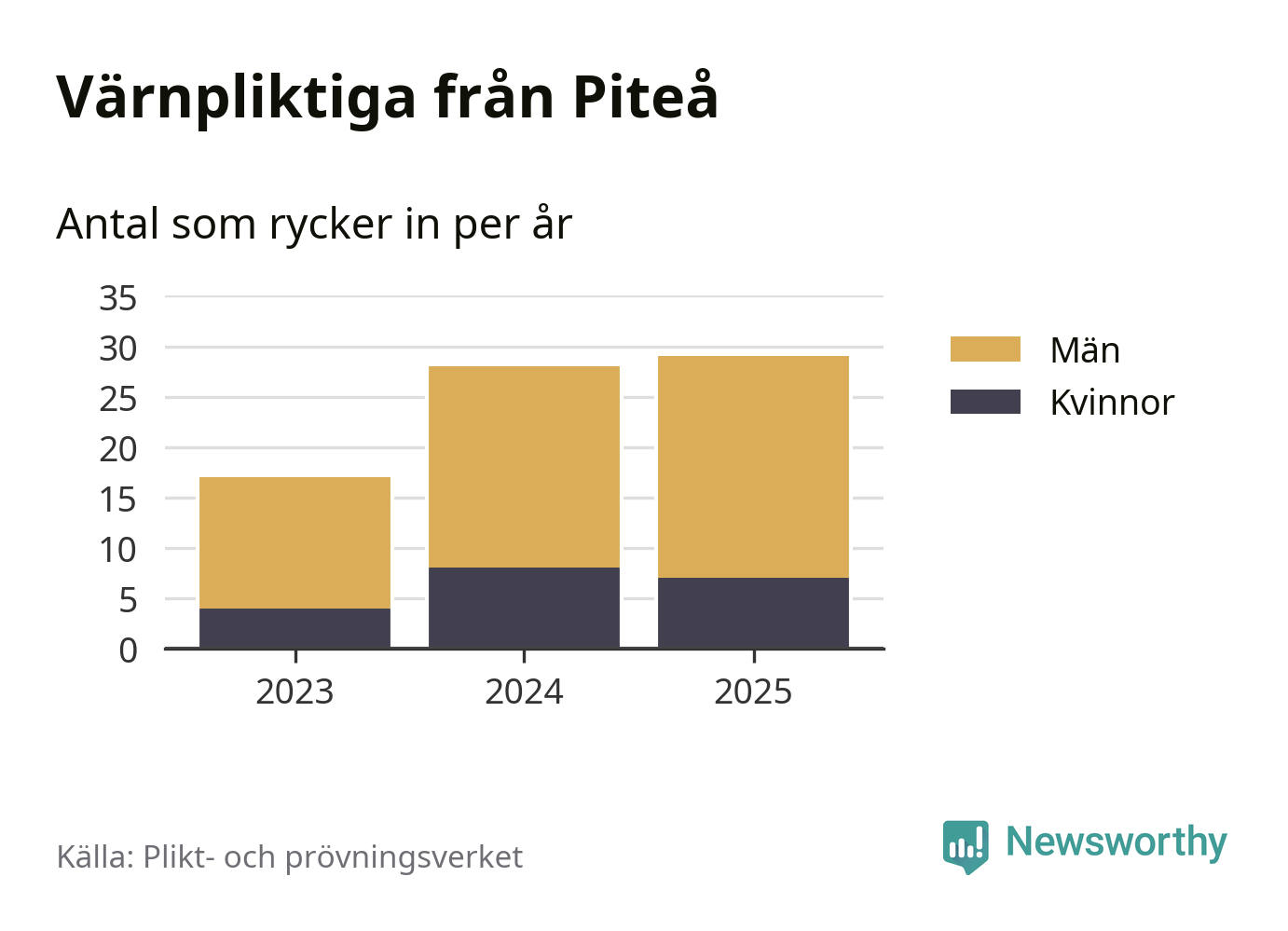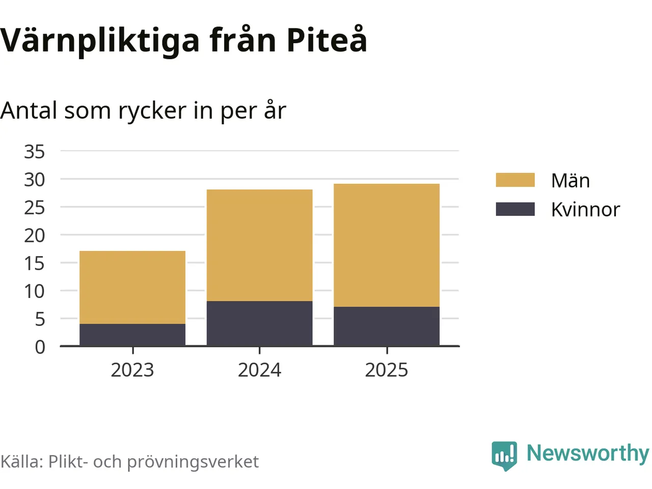 Sedan 2023 – som är det första året vi har jämförbara siffror för – har totalt 74 ungdomar från Piteå påbörjat sin värnplikt. Av dem har 19 varit kvinnor.