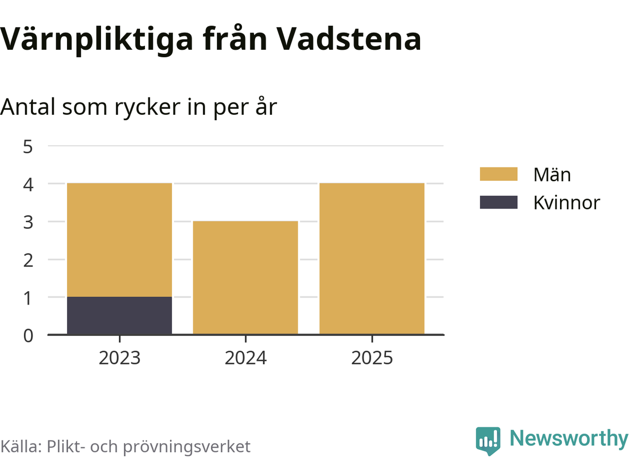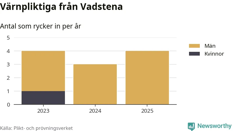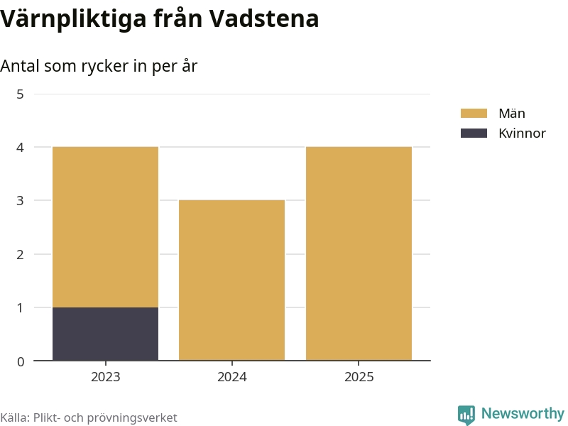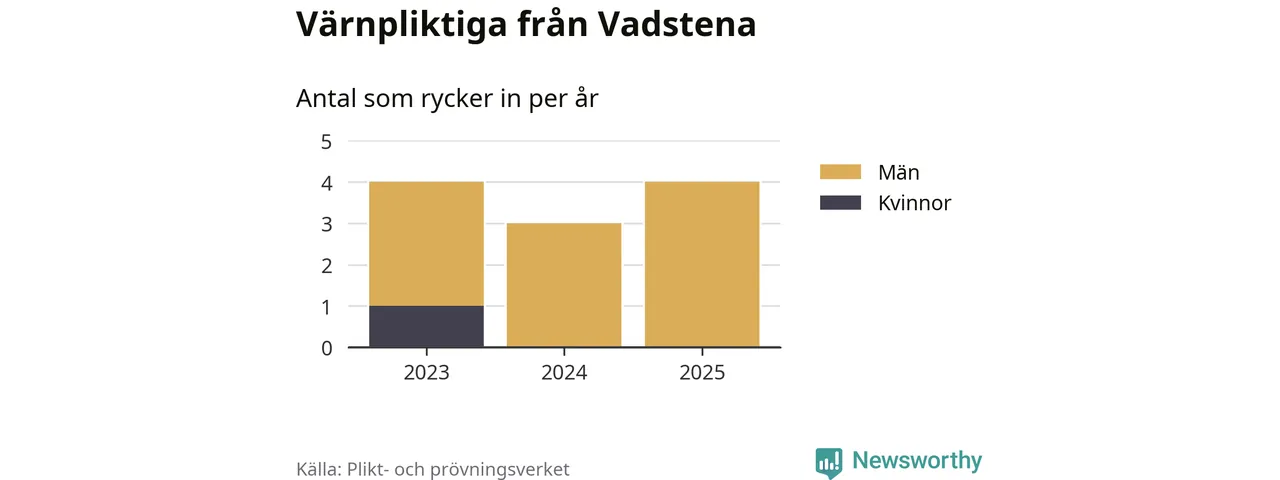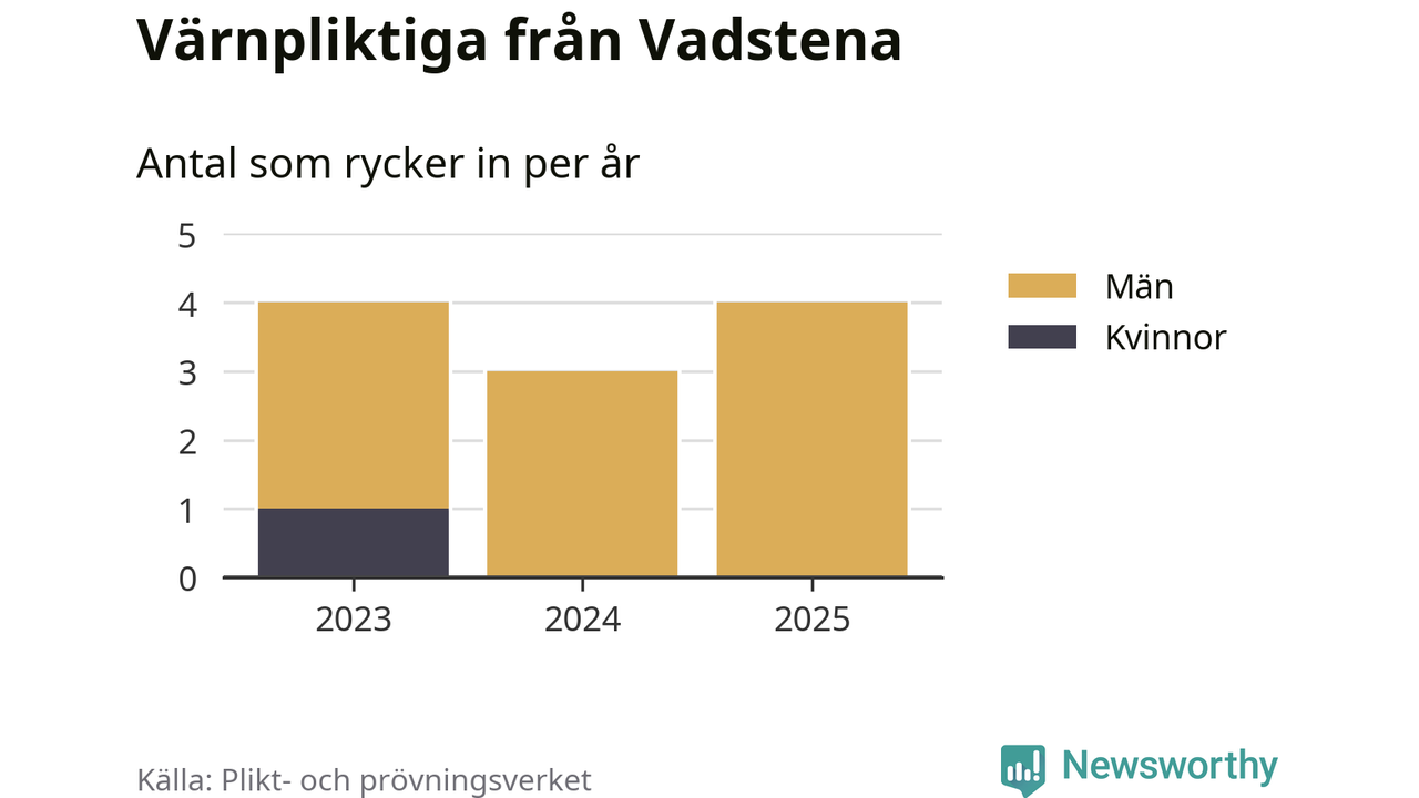 Sedan 2023 – som är det första året vi har jämförbara siffror för – har totalt elva ungdomar från Vadstena påbörjat sin värnplikt. Av dem har en varit kvinna.