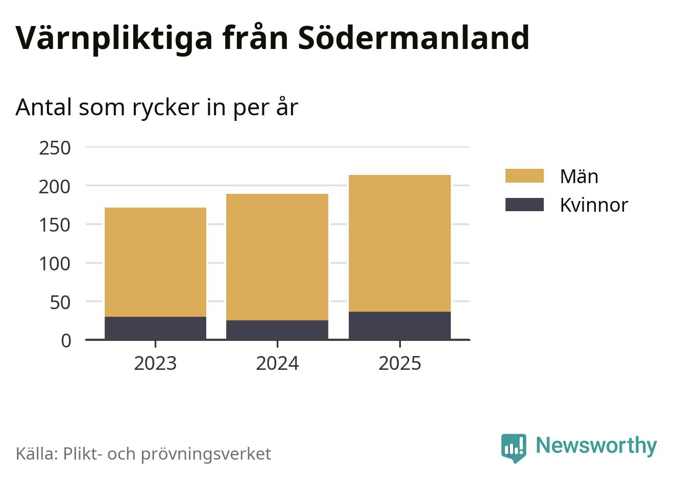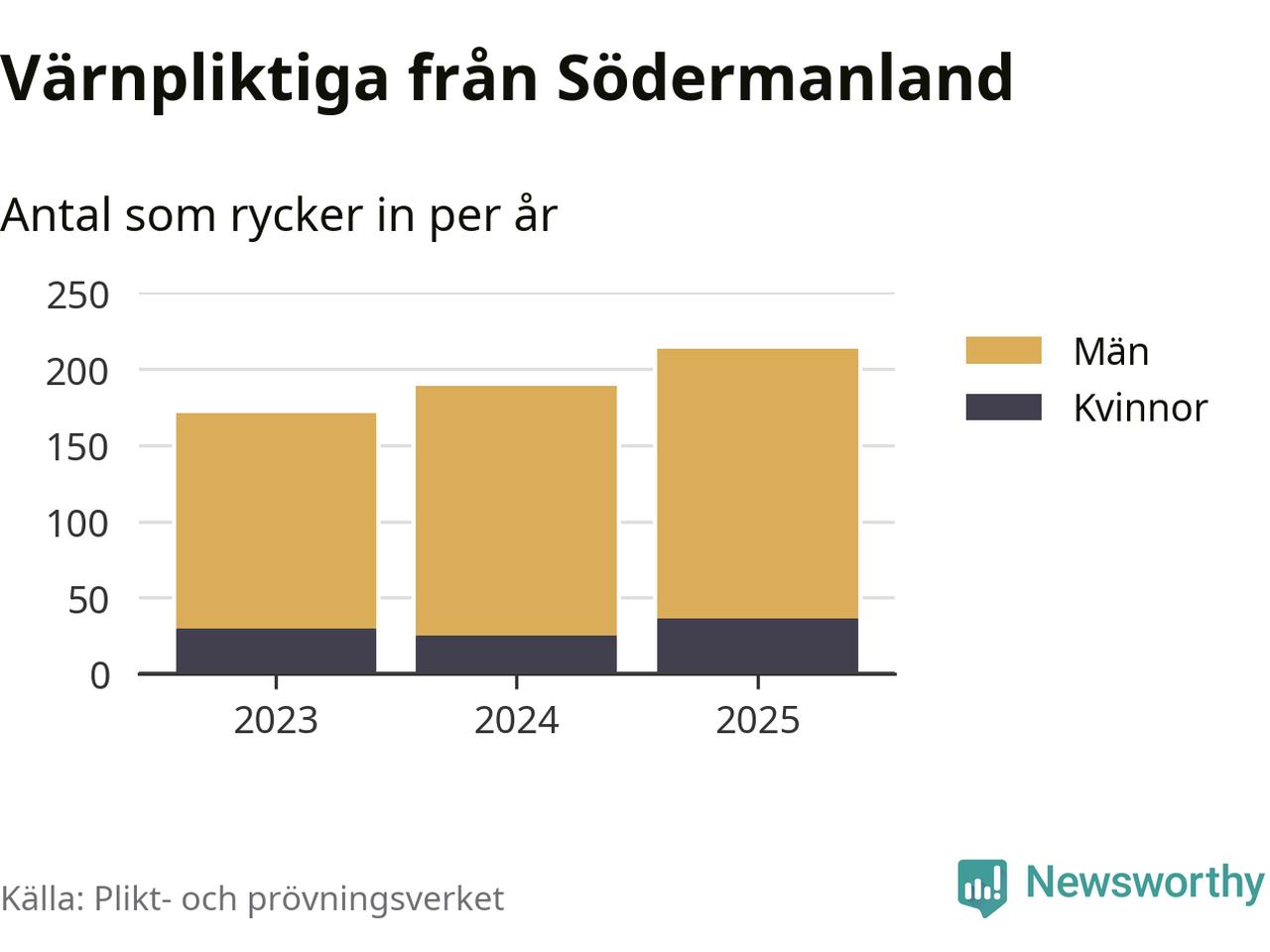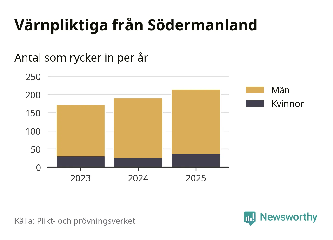 Sedan 2023 – som är det första året vi har jämförbara siffror för – har totalt 573 ungdomar från Södermanland påbörjat sin värnplikt. Av dem har 91 varit kvinnor.
