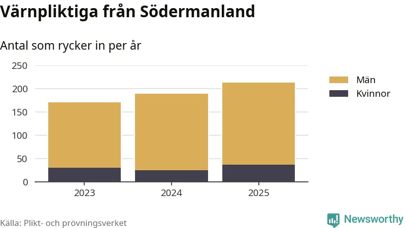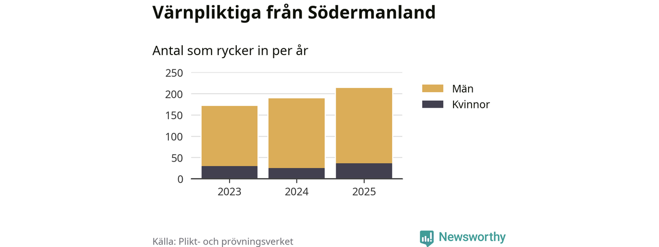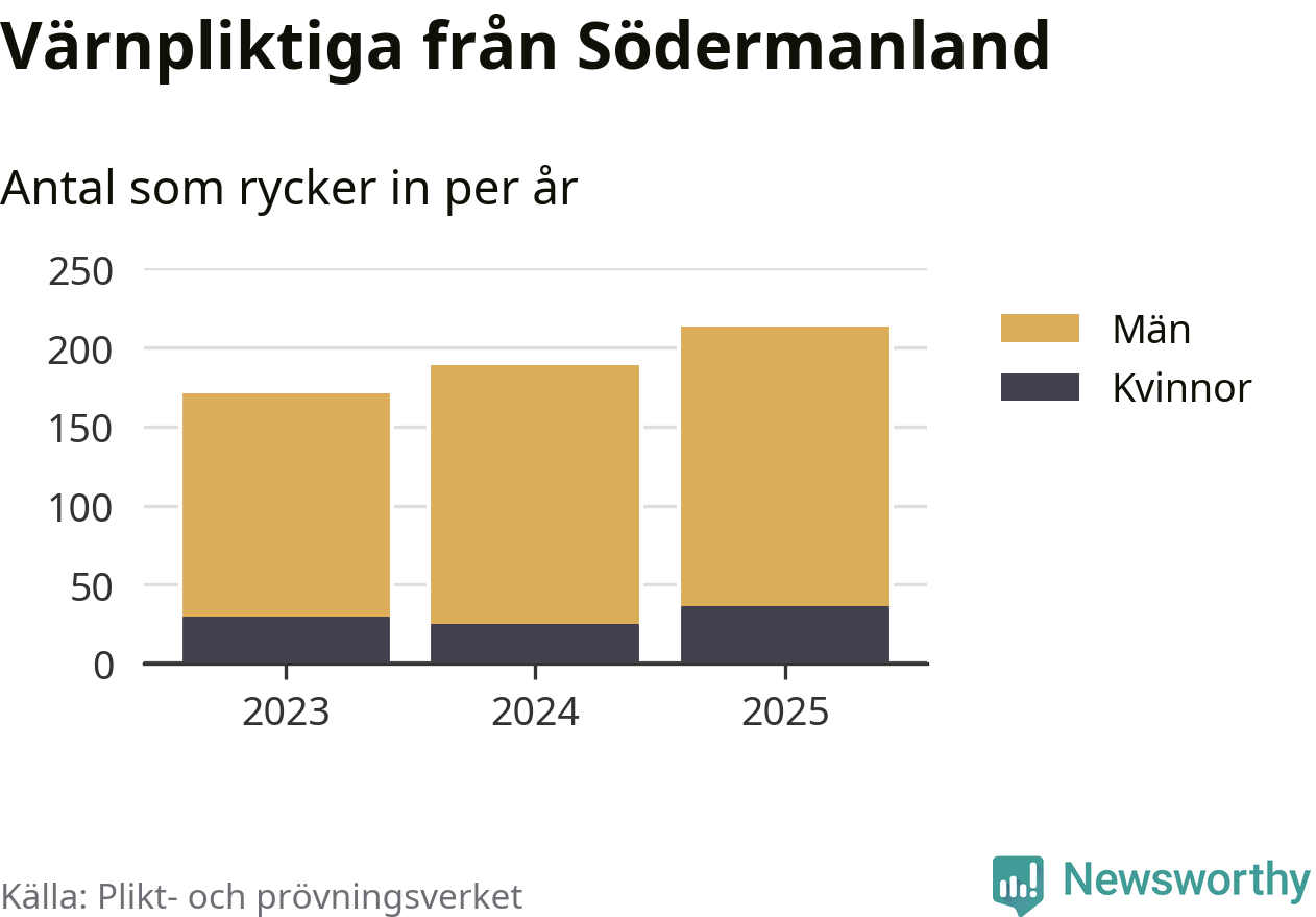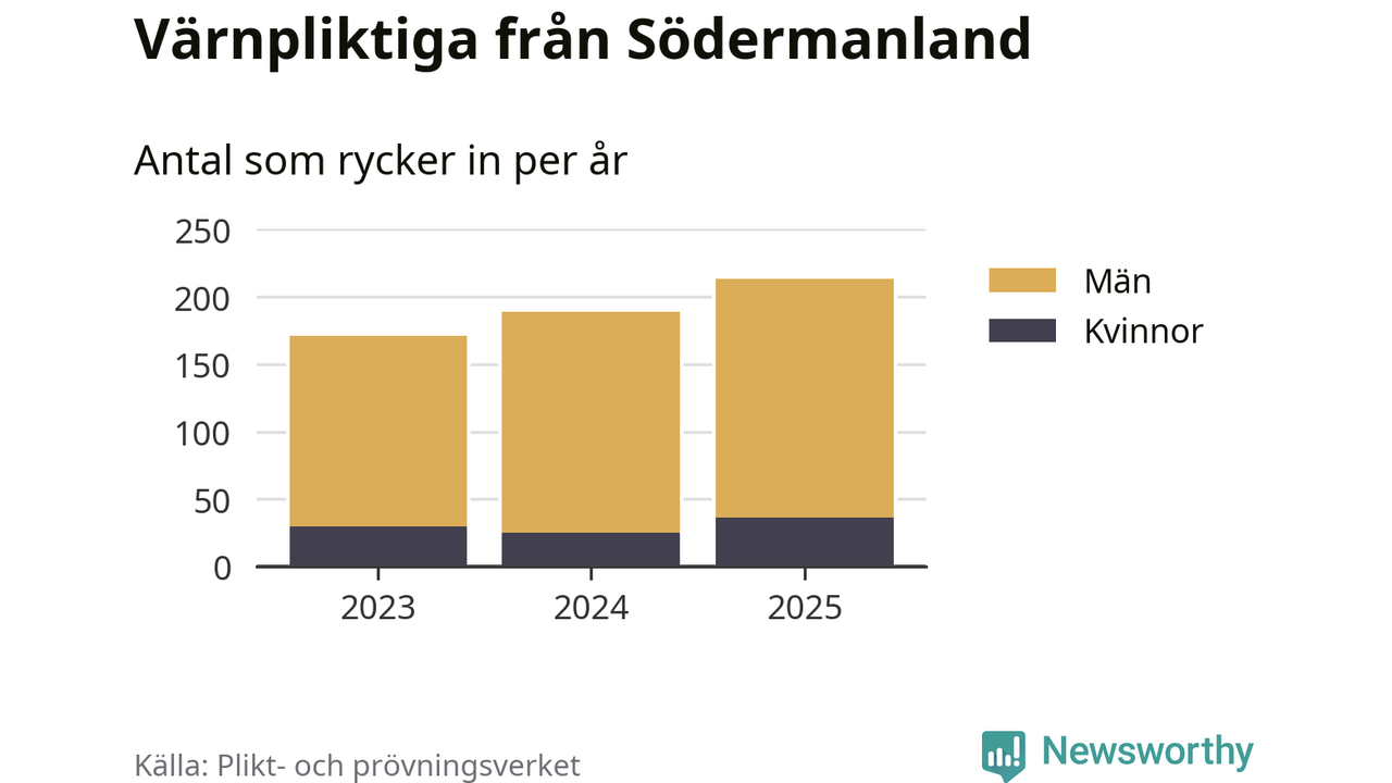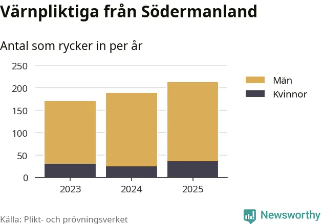 Sedan 2023 – som är det första året vi har jämförbara siffror för – har totalt 573 ungdomar från Södermanland påbörjat sin värnplikt. Av dem har 91 varit kvinnor.