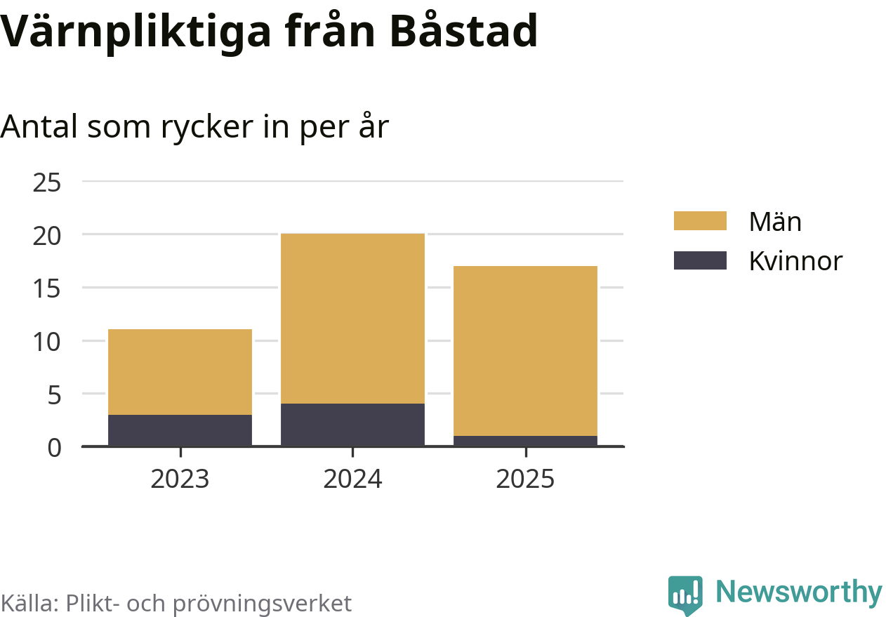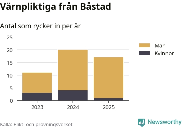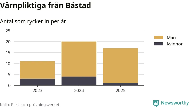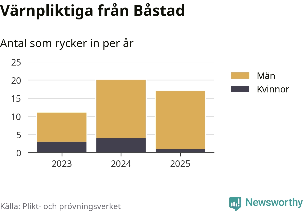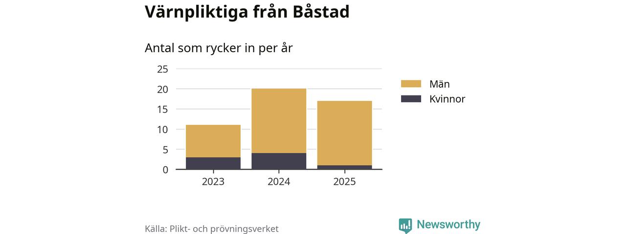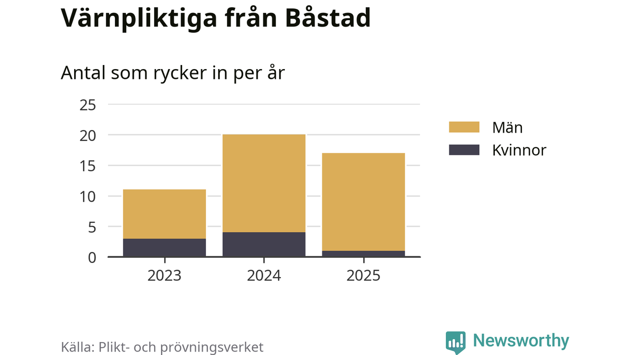Sedan 2023 – som är det första året vi har jämförbara siffror för – har totalt 48 ungdomar från Båstad påbörjat sin värnplikt. Av dem har åtta varit kvinnor.