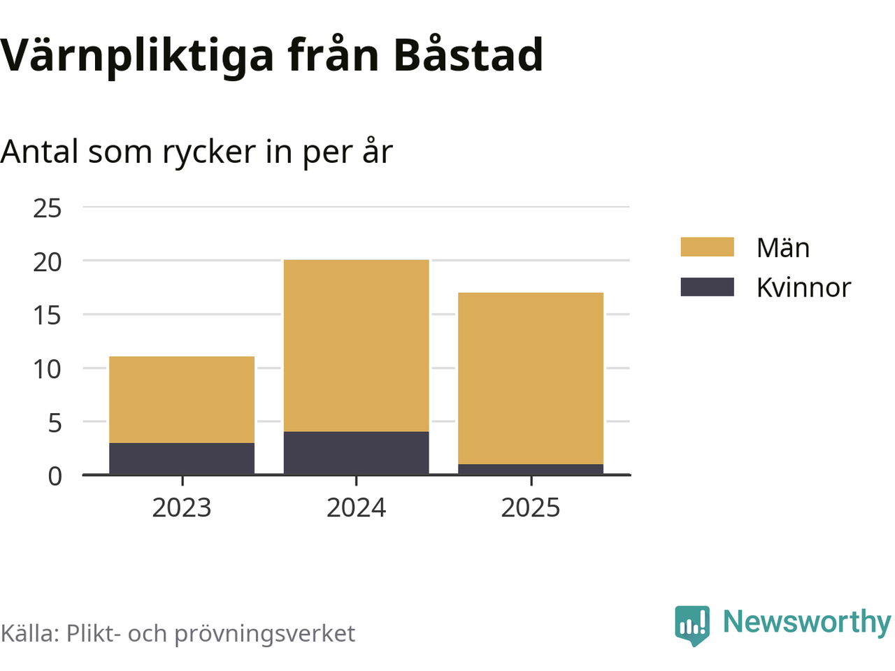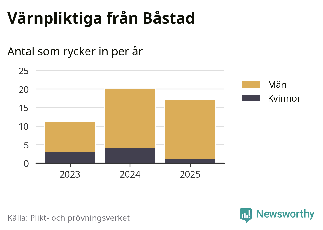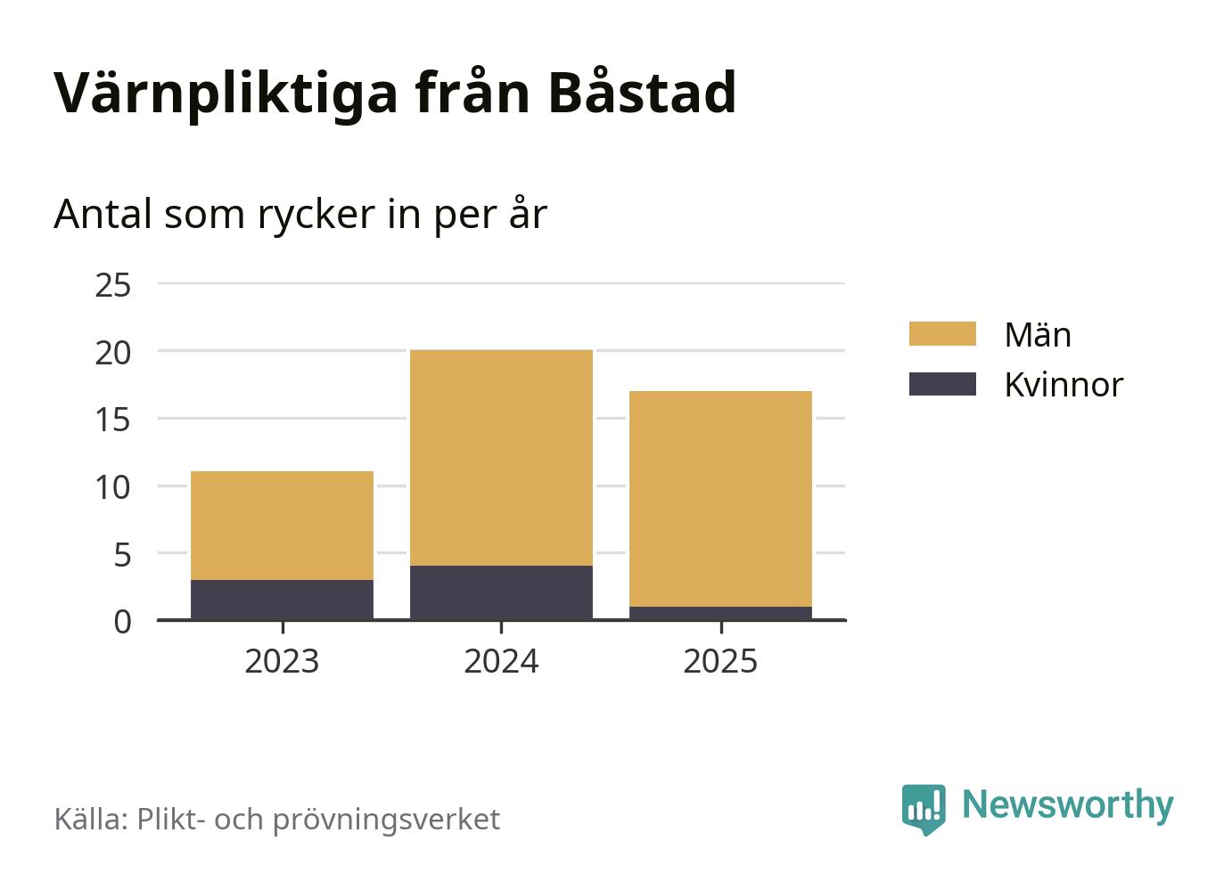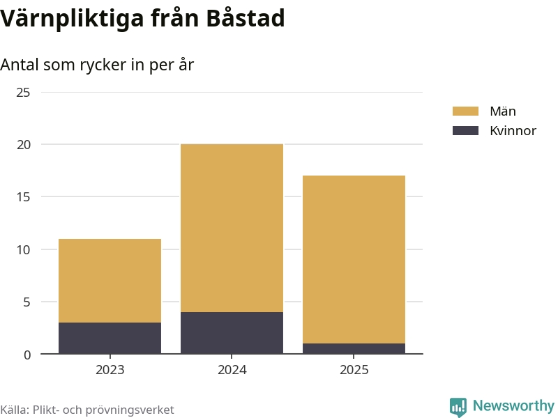 Sedan 2023 – som är det första året vi har jämförbara siffror för – har totalt 48 ungdomar från Båstad påbörjat sin värnplikt. Av dem har åtta varit kvinnor.