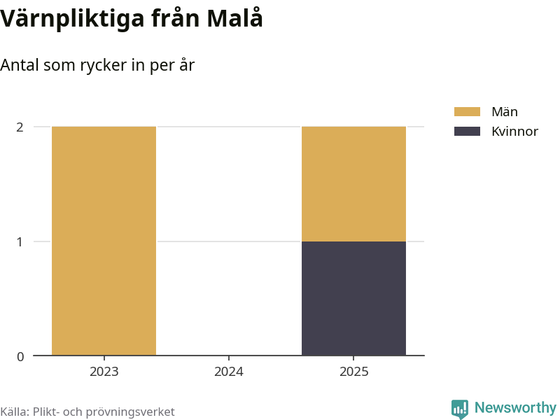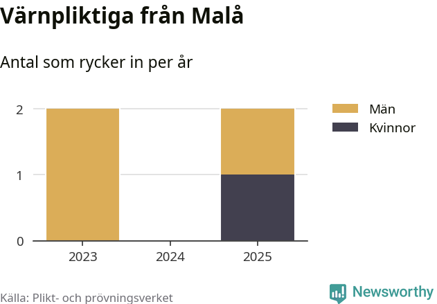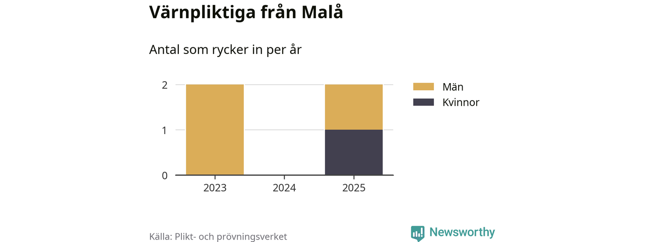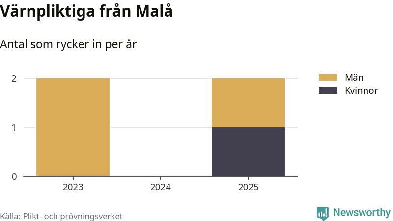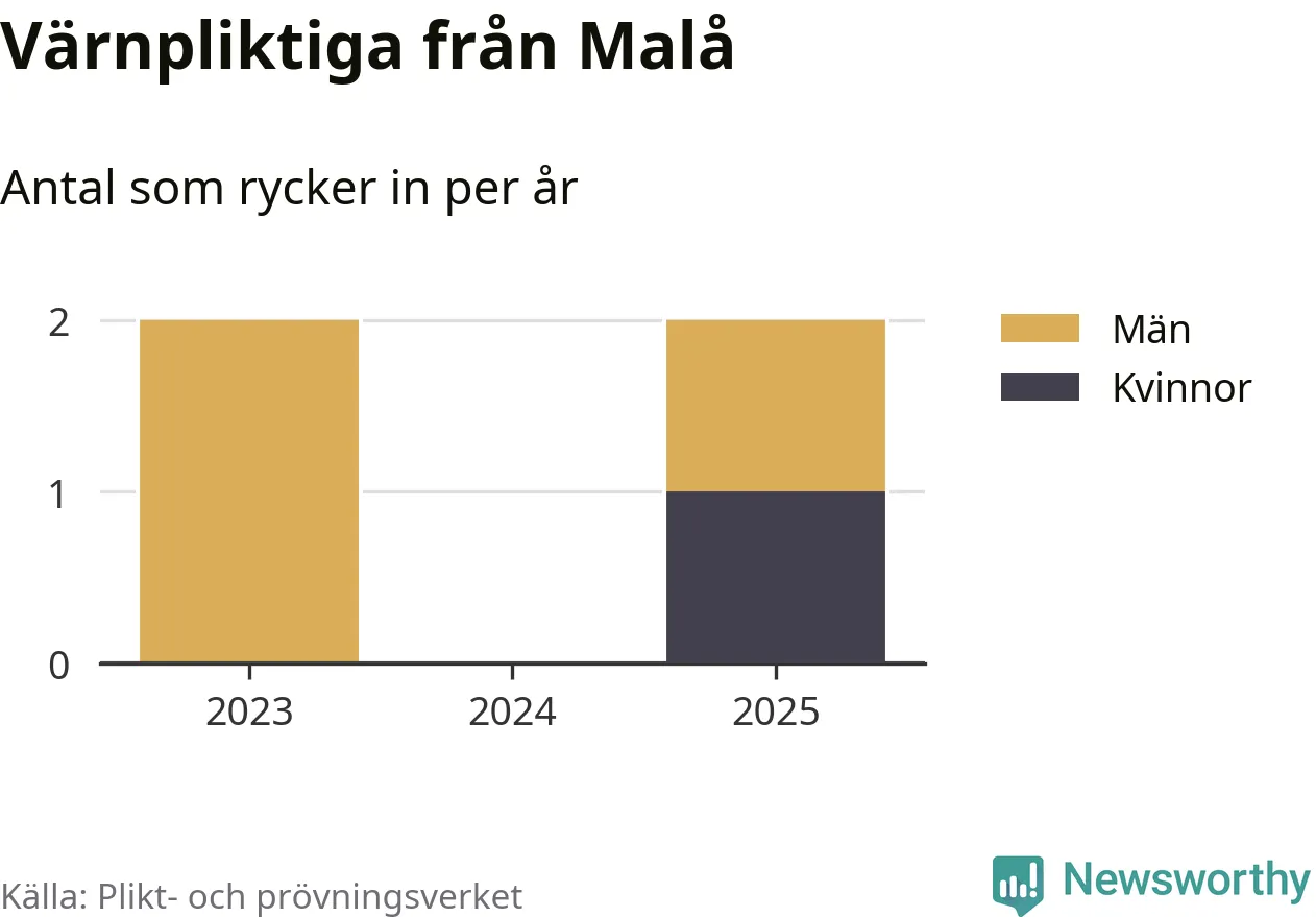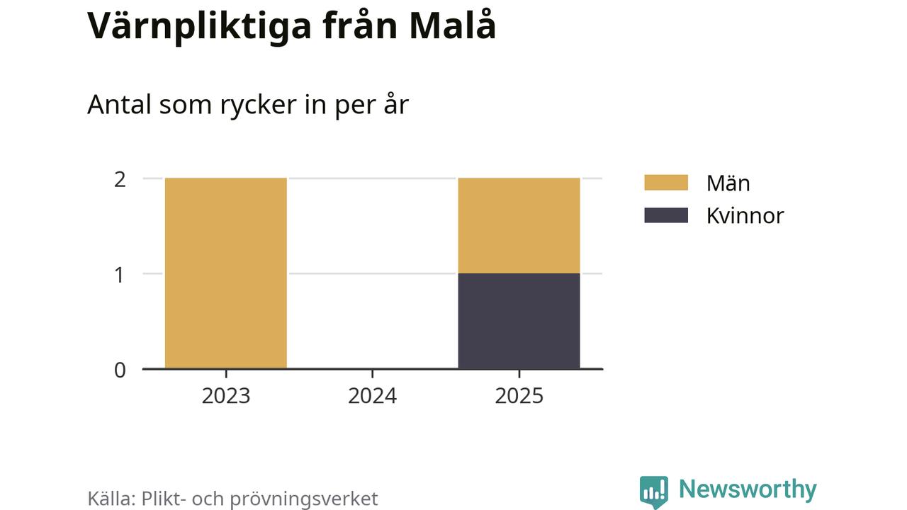 Sedan 2023 – som är det första året vi har jämförbara siffror för – har totalt fyra ungdomar från Malå påbörjat sin värnplikt. Av dem har en varit kvinna.