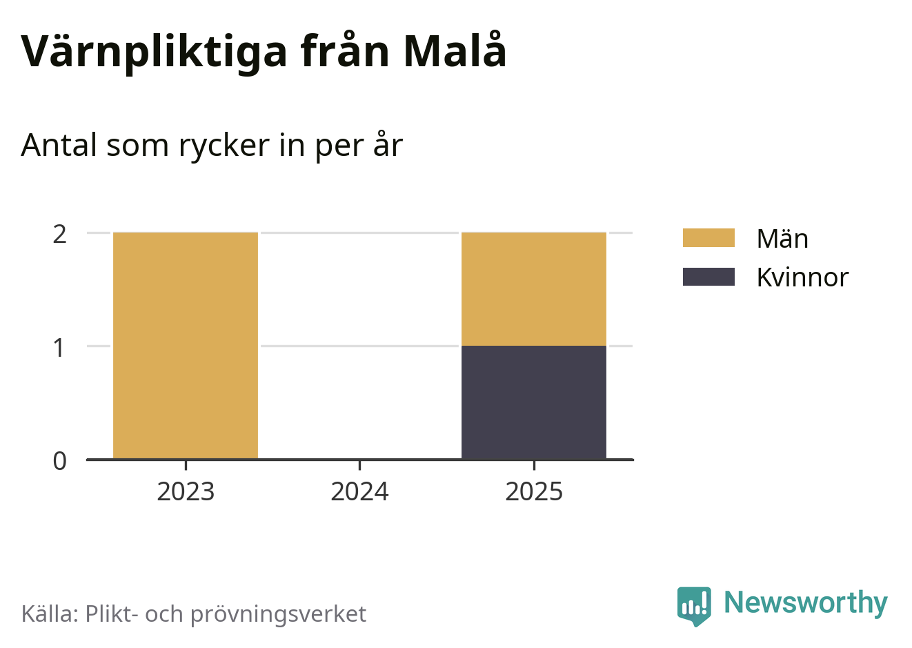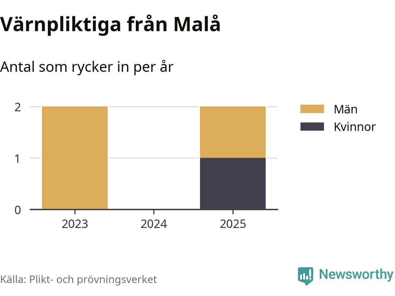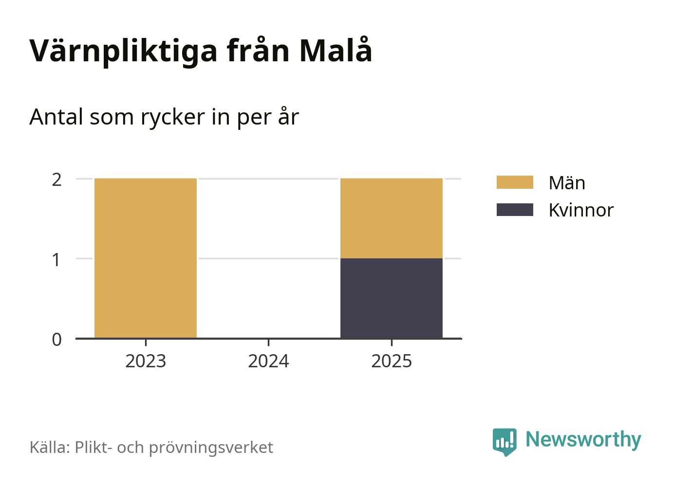 Sedan 2023 – som är det första året vi har jämförbara siffror för – har totalt fyra ungdomar från Malå påbörjat sin värnplikt. Av dem har en varit kvinna.