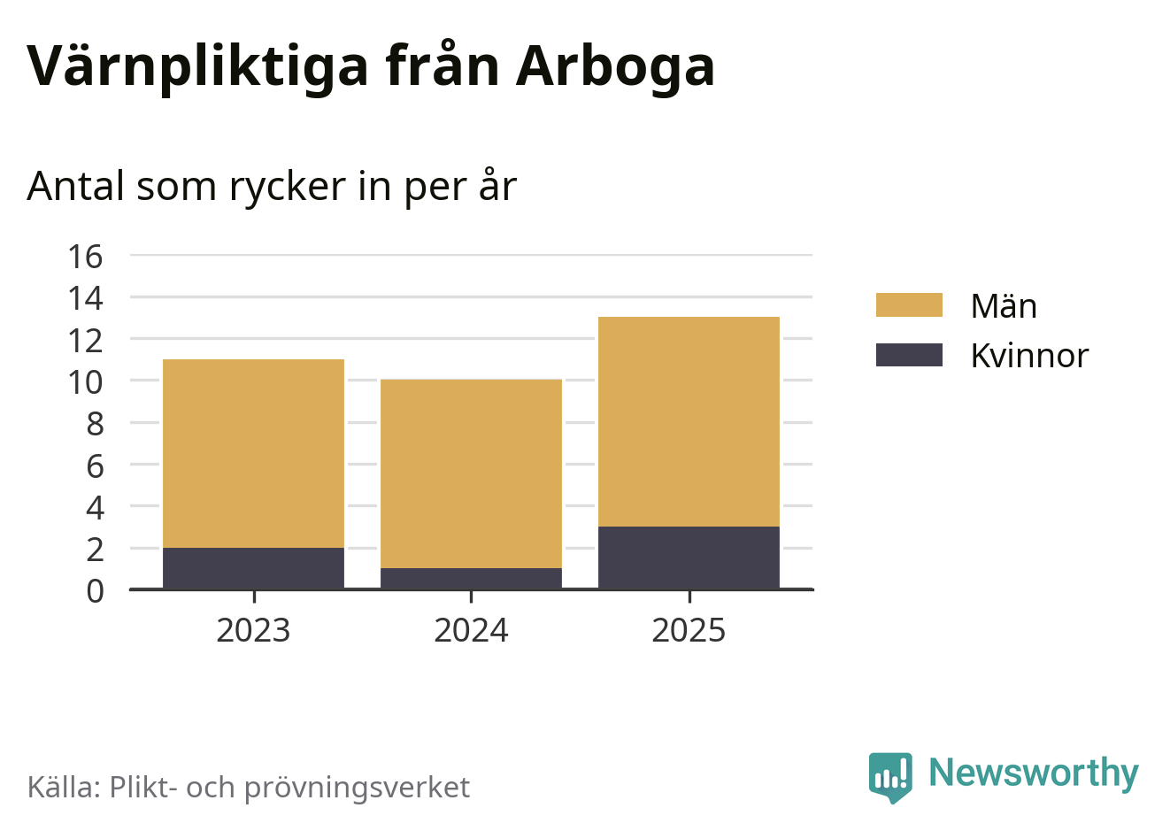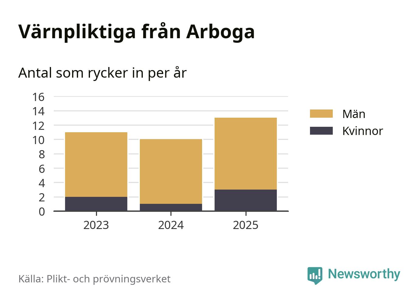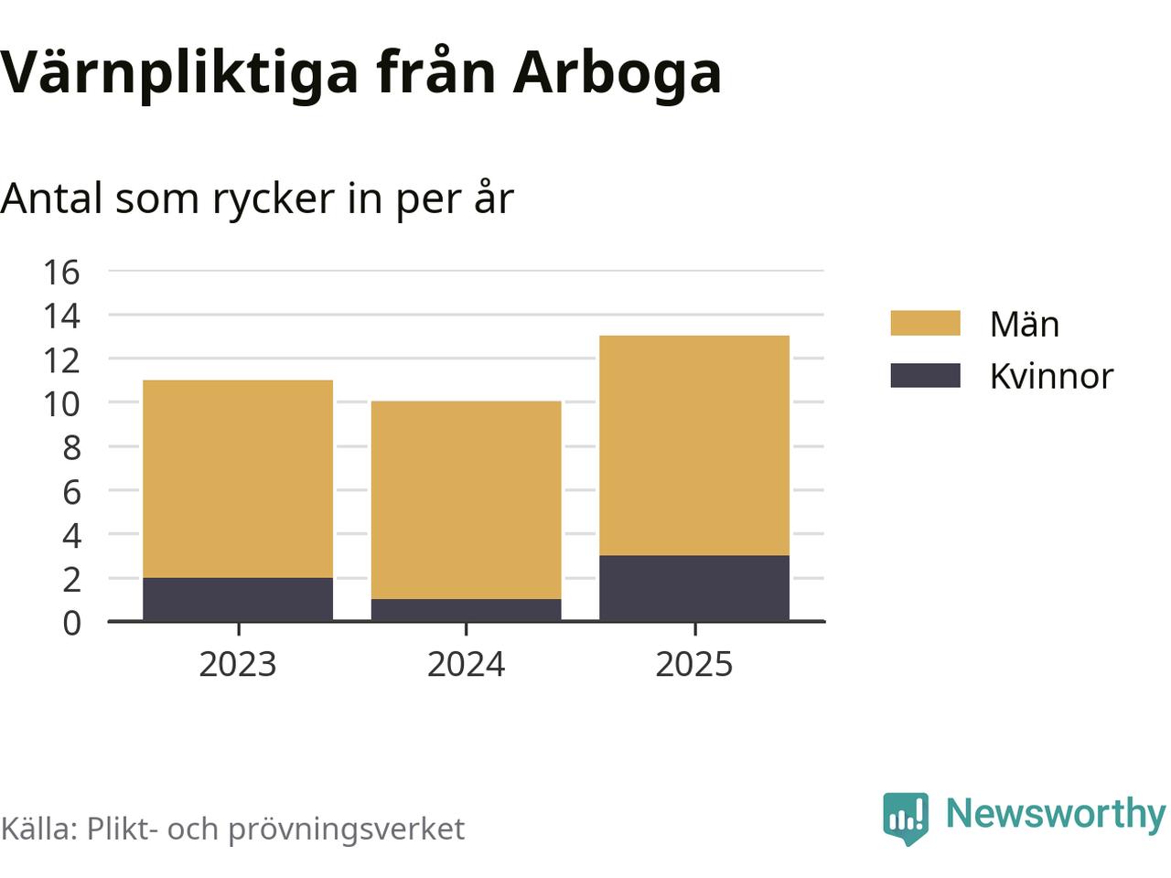 Sedan 2023 – som är det första året vi har jämförbara siffror för – har totalt 34 ungdomar från Arboga påbörjat sin värnplikt. Av dem har sex varit kvinnor.