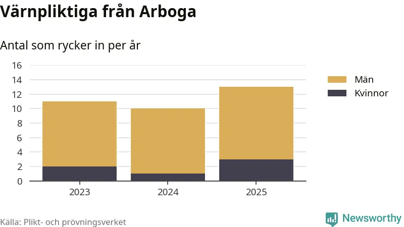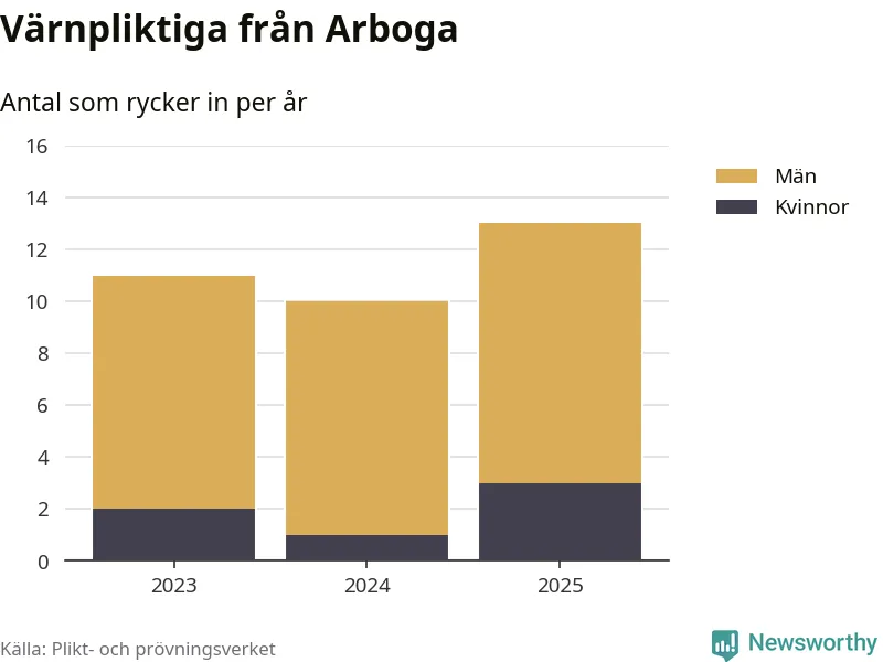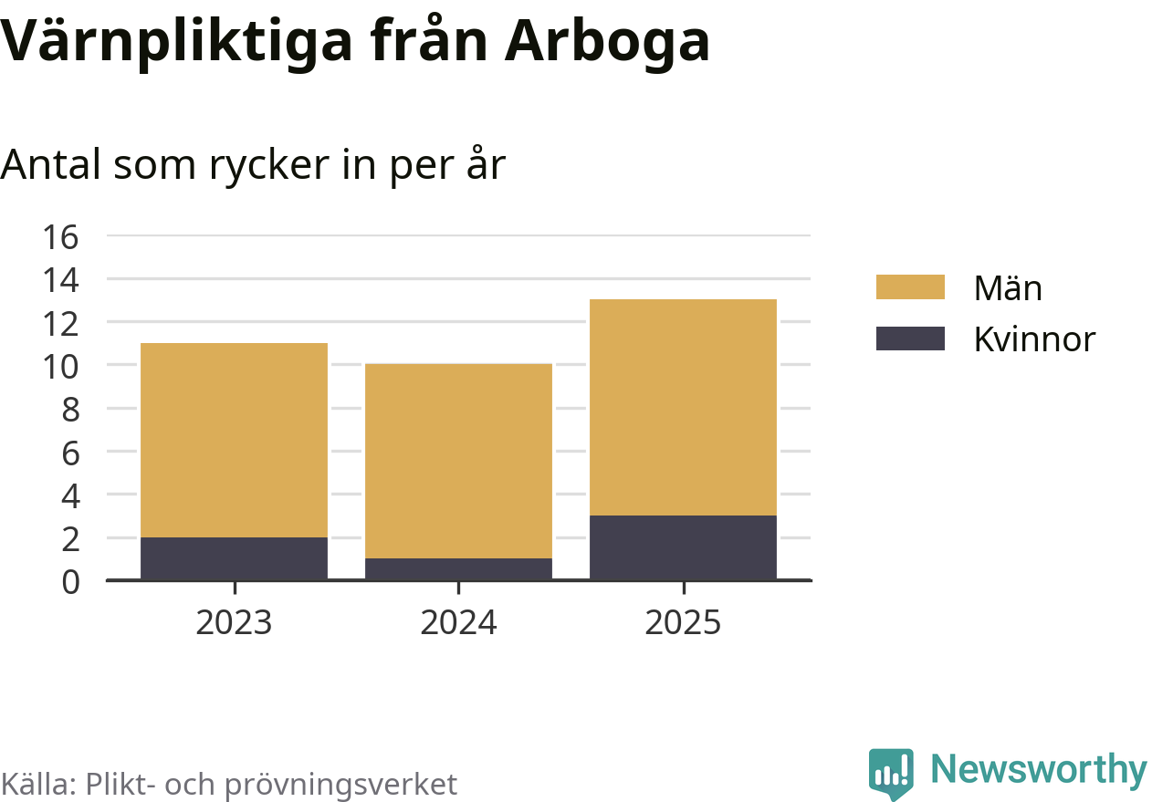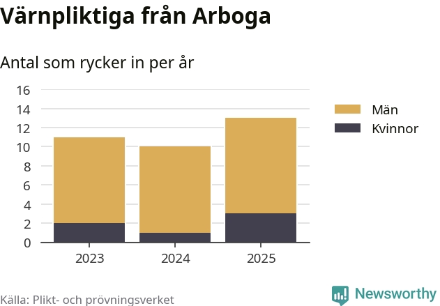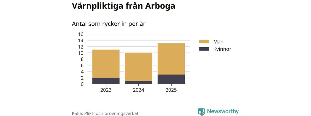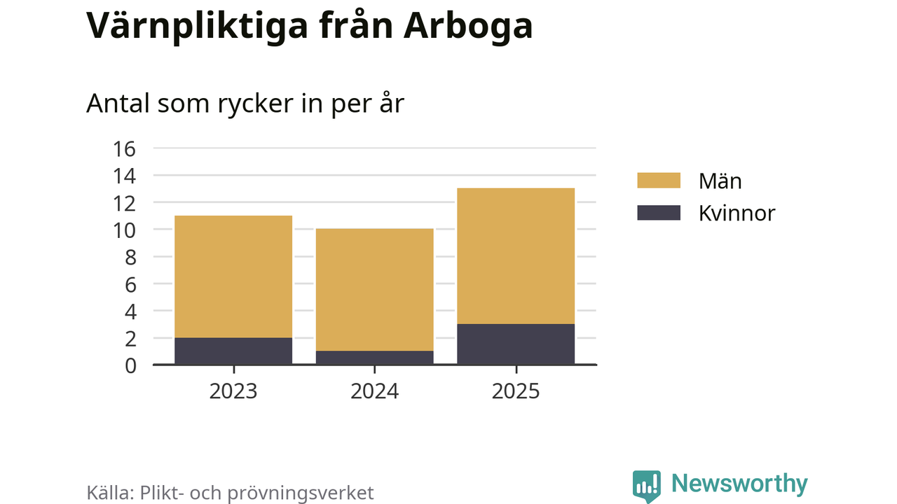Sedan 2023 – som är det första året vi har jämförbara siffror för – har totalt 34 ungdomar från Arboga påbörjat sin värnplikt. Av dem har sex varit kvinnor.