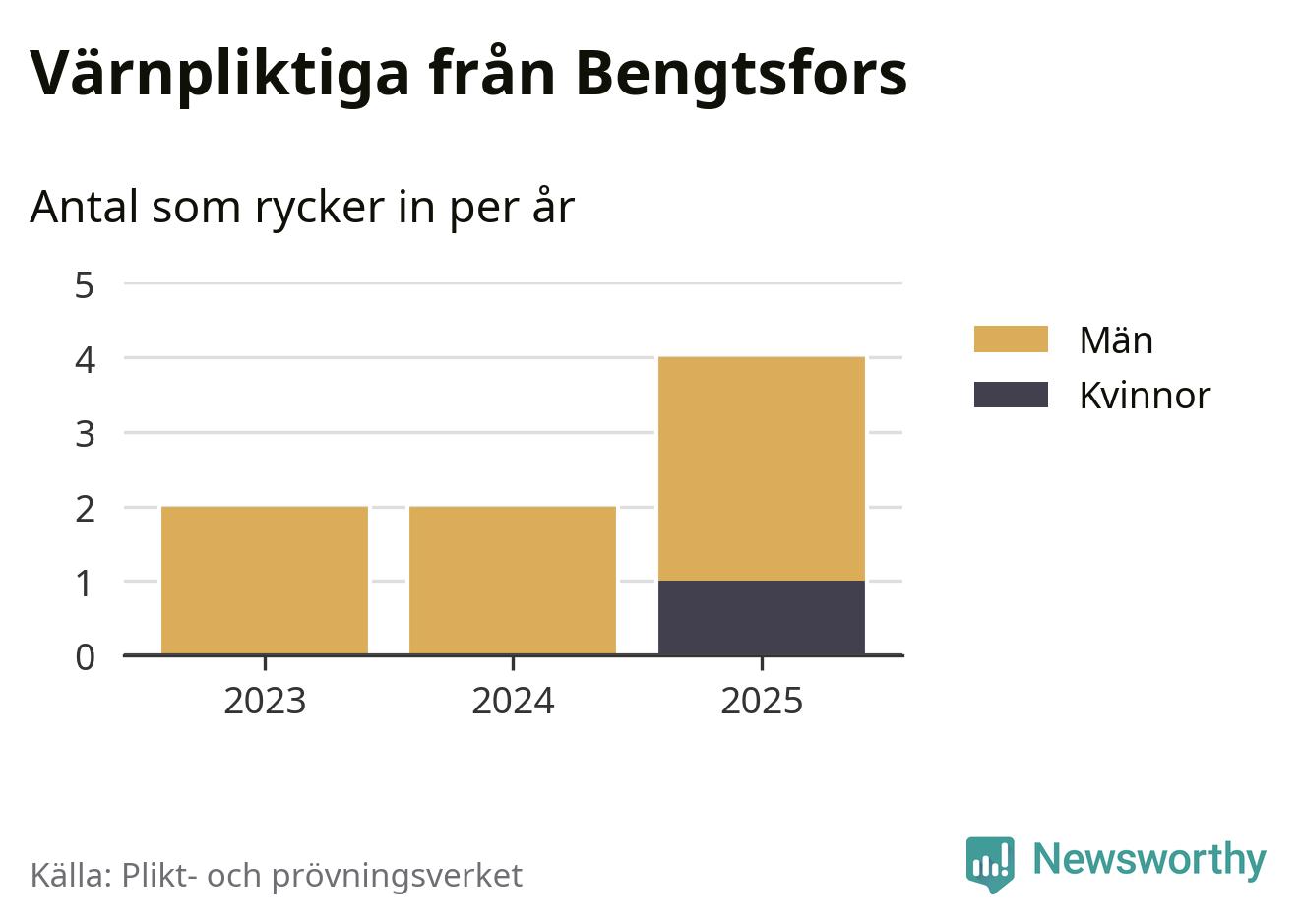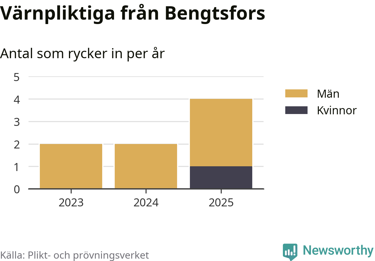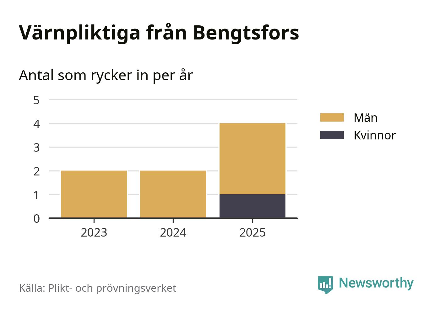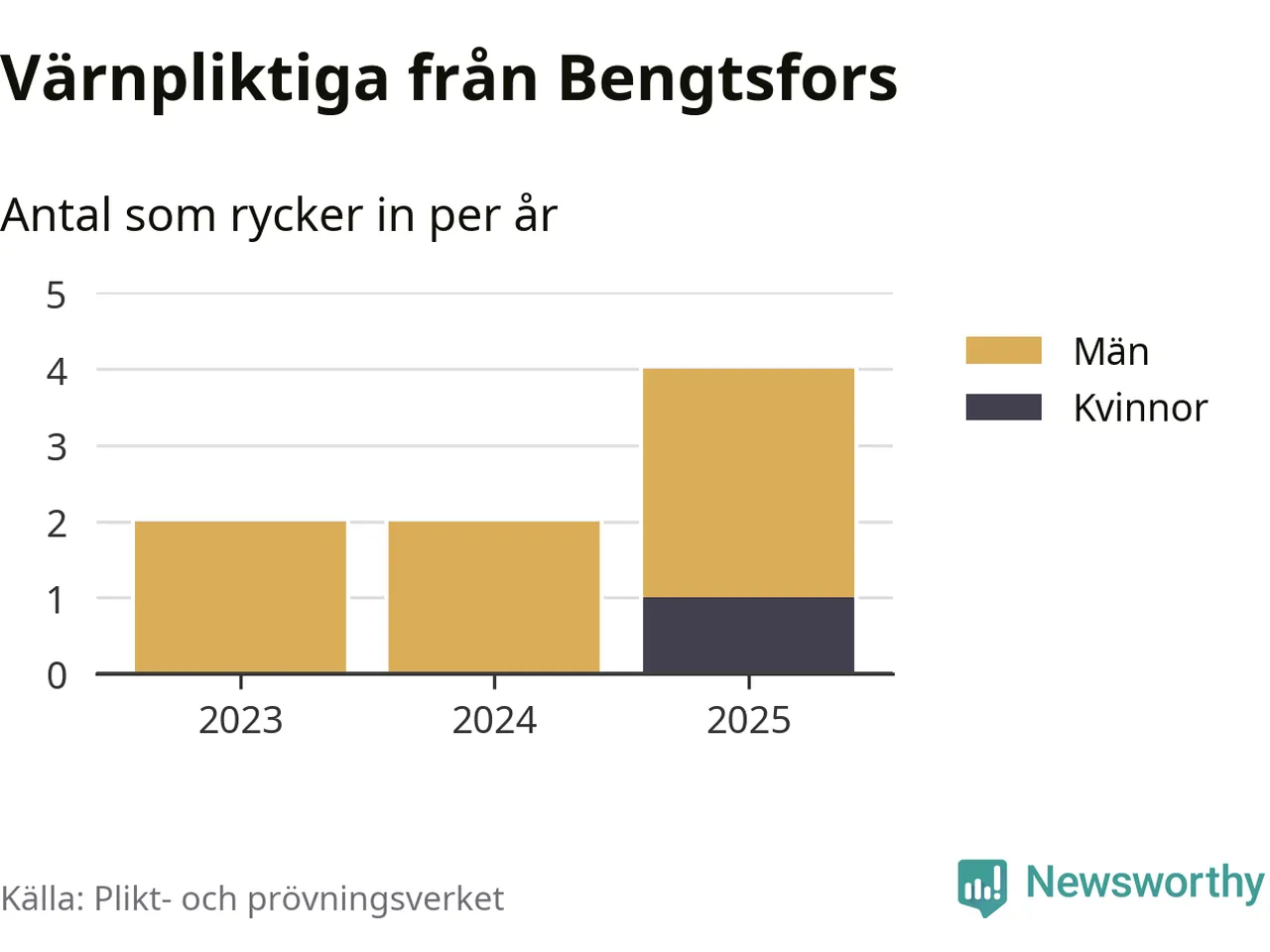 Sedan 2023 – som är det första året vi har jämförbara siffror för – har totalt åtta ungdomar från Bengtsfors påbörjat sin värnplikt. Av dem har en varit kvinna.