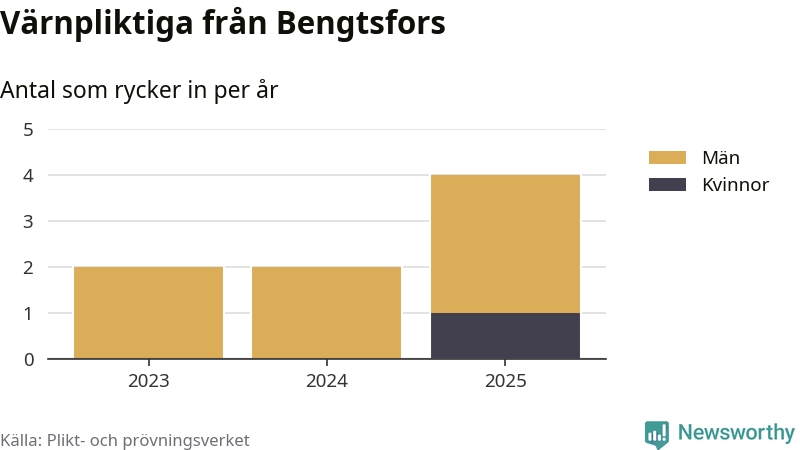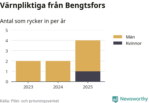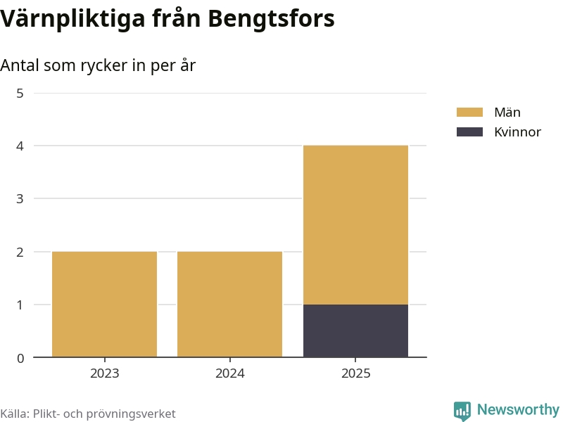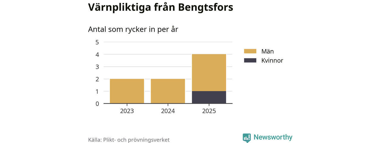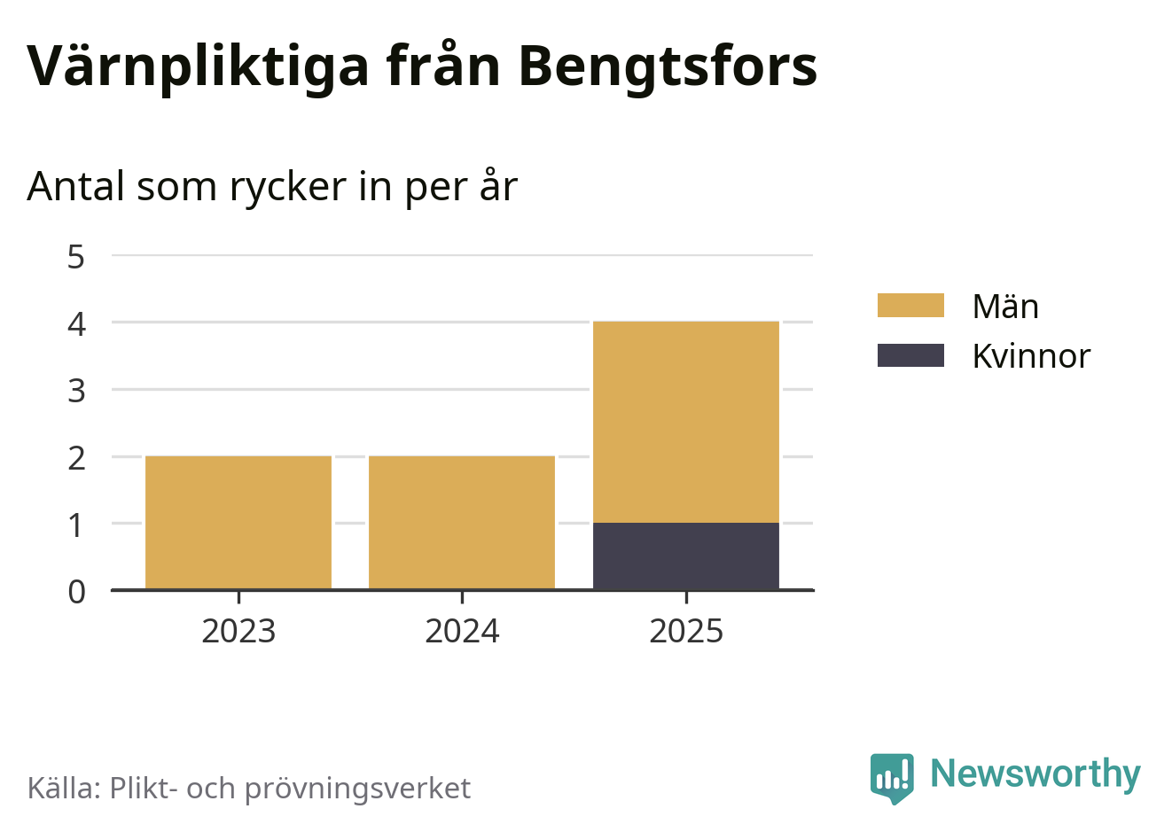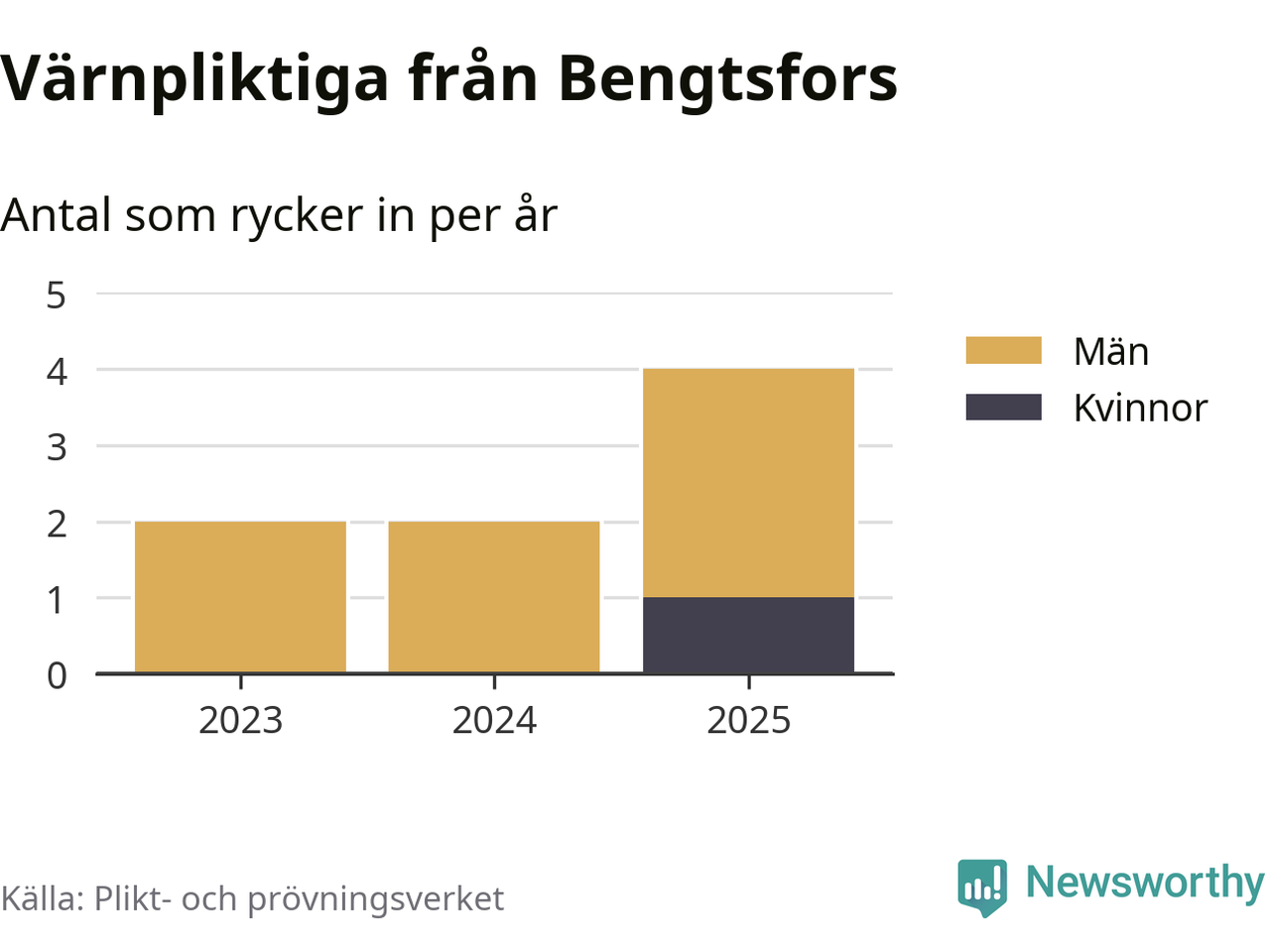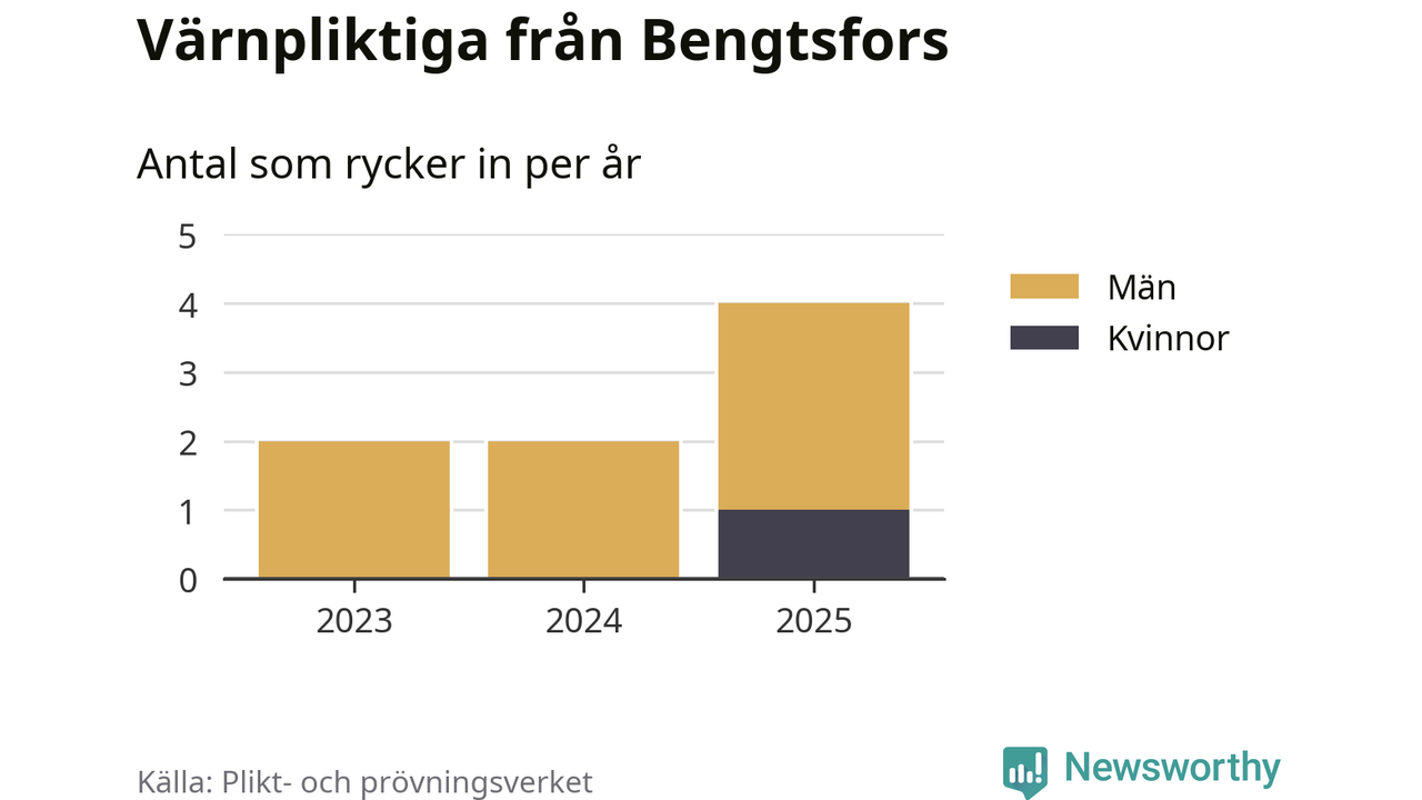 Sedan 2023 – som är det första året vi har jämförbara siffror för – har totalt åtta ungdomar från Bengtsfors påbörjat sin värnplikt. Av dem har en varit kvinna.