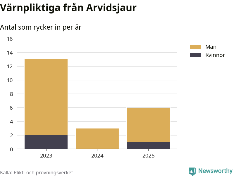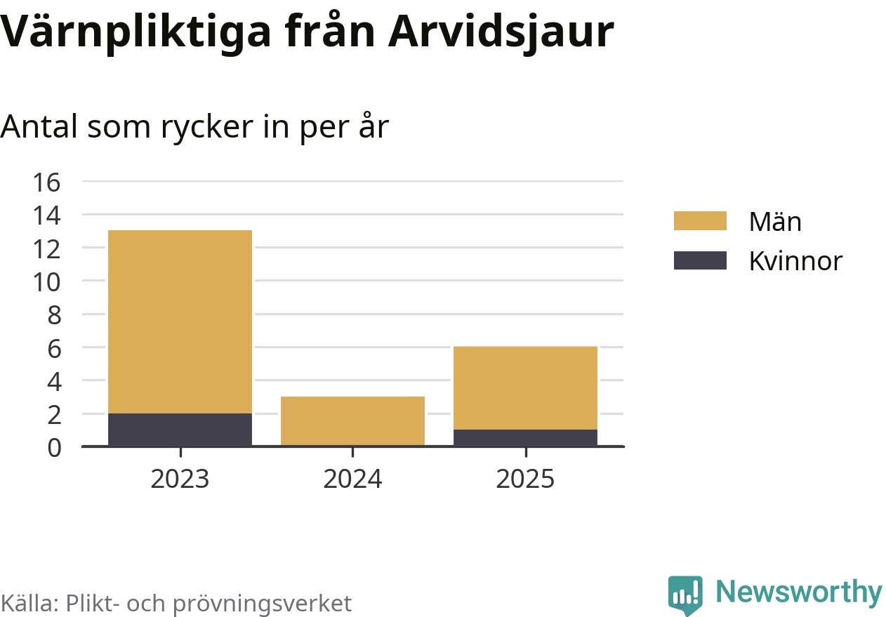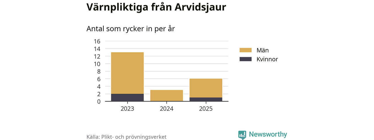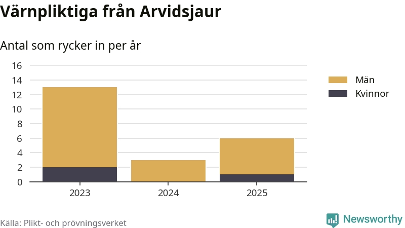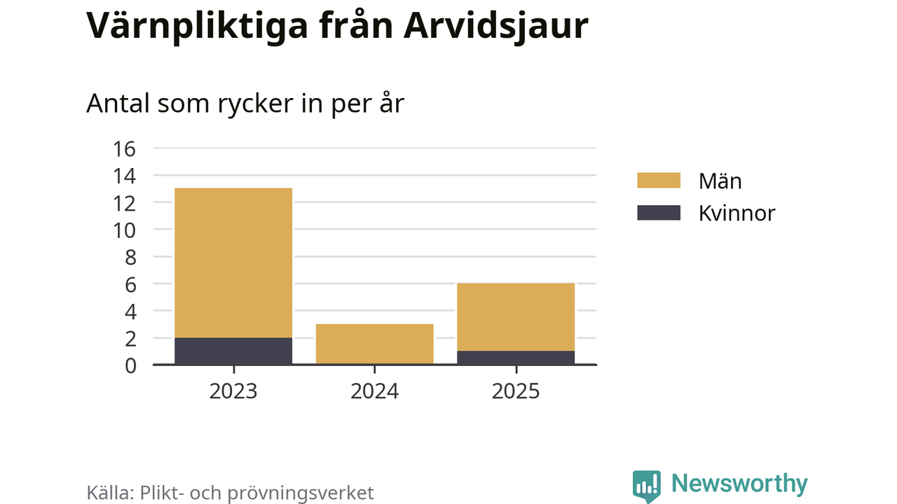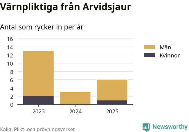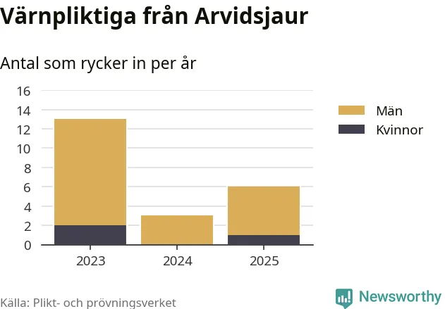 Sedan 2023 – som är det första året vi har jämförbara siffror för – har totalt 22 ungdomar från Arvidsjaur påbörjat sin värnplikt. Av dem har tre varit kvinnor.