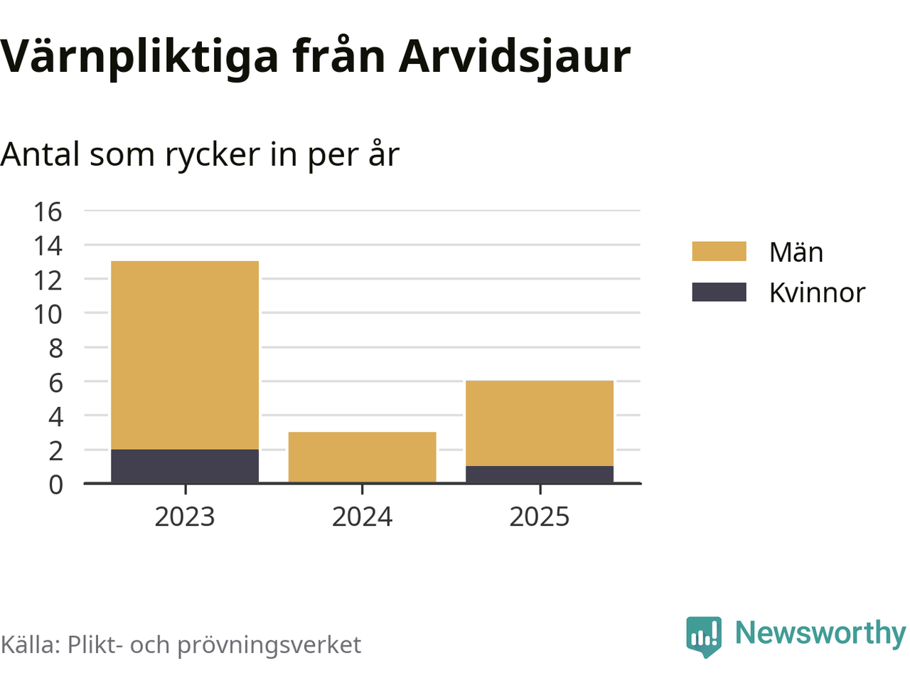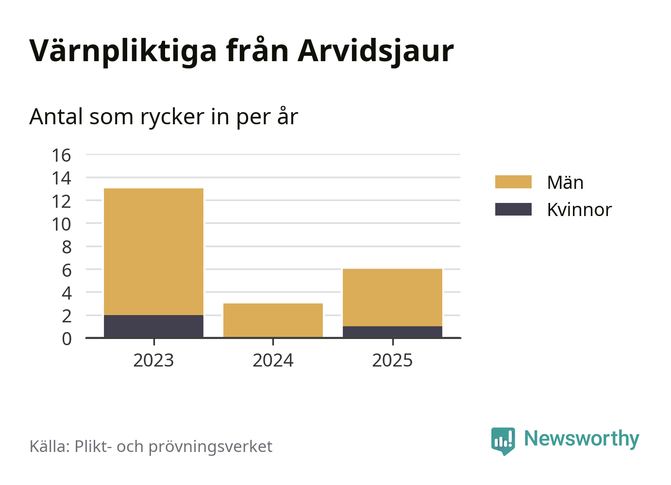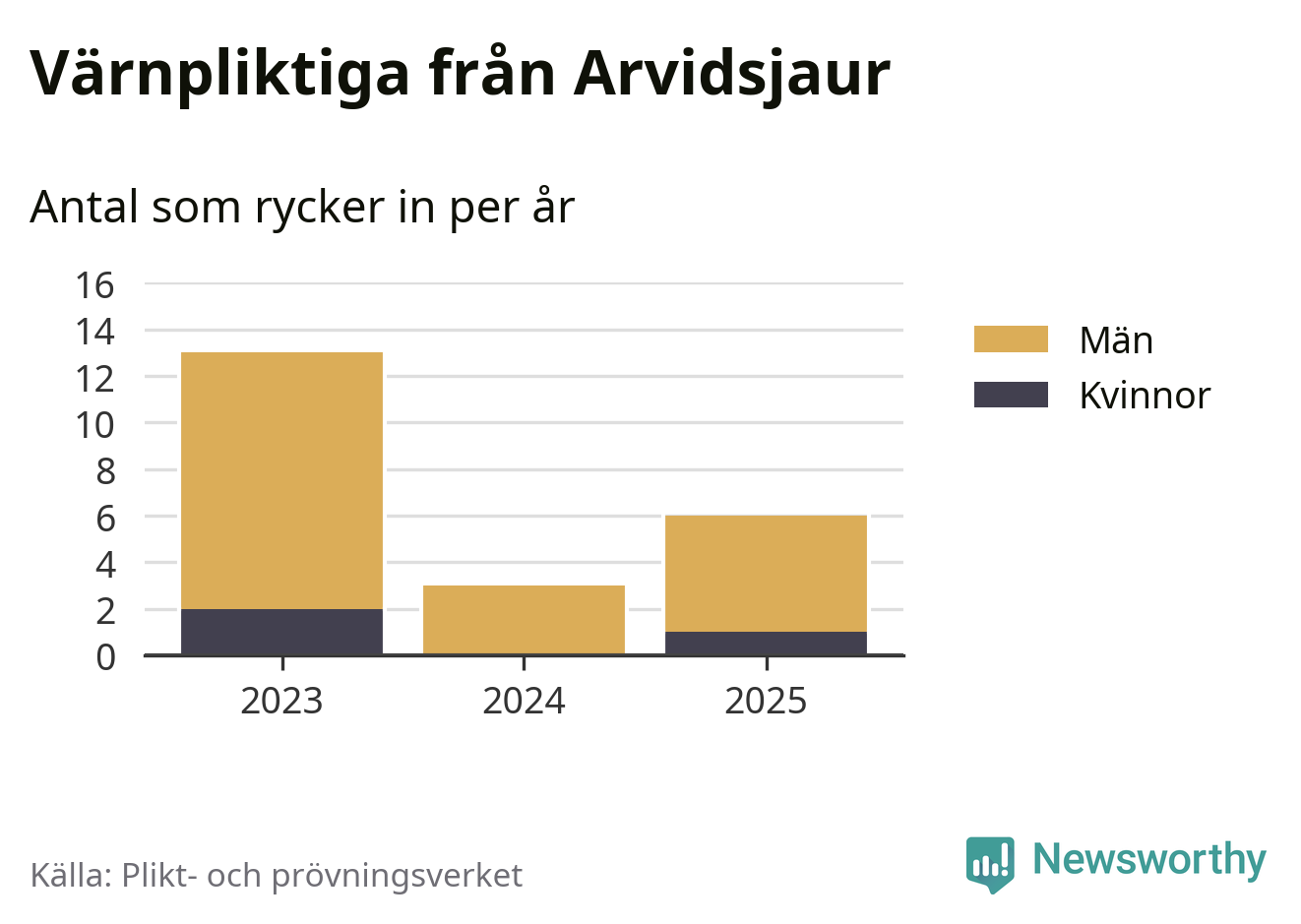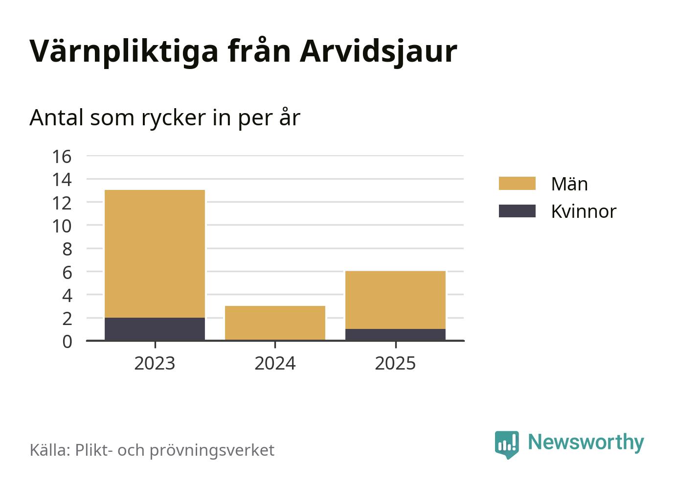 Sedan 2023 – som är det första året vi har jämförbara siffror för – har totalt 22 ungdomar från Arvidsjaur påbörjat sin värnplikt. Av dem har tre varit kvinnor.
