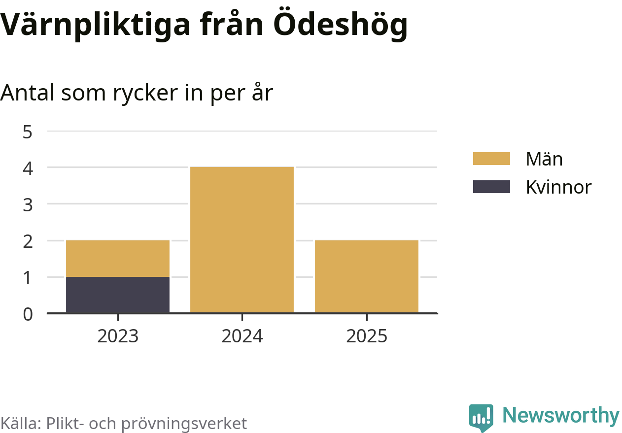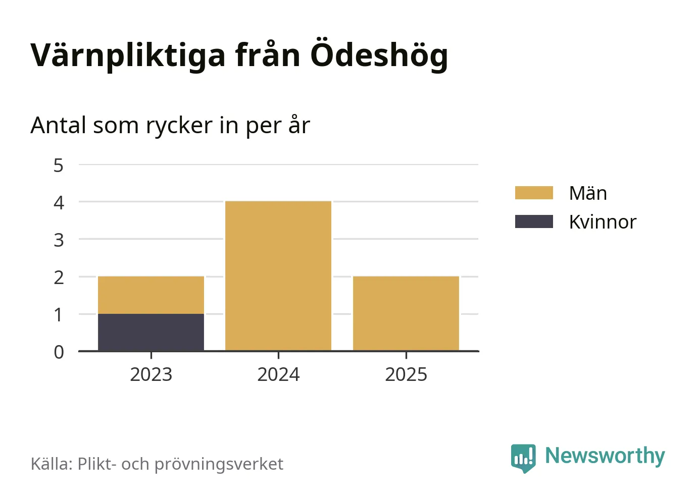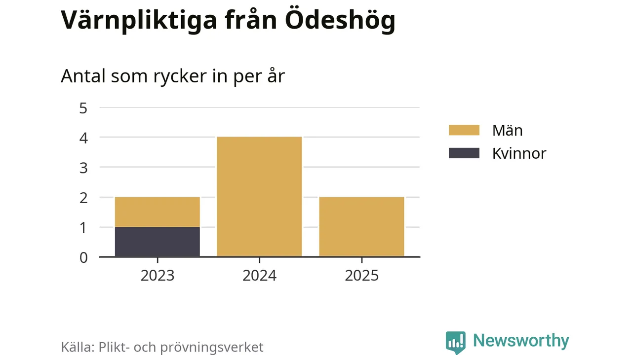 Sedan 2023 – som är det första året vi har jämförbara siffror för – har totalt åtta ungdomar från Ödeshög påbörjat sin värnplikt. Av dem har en varit kvinna.