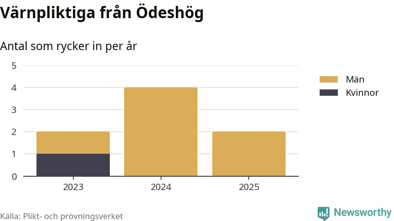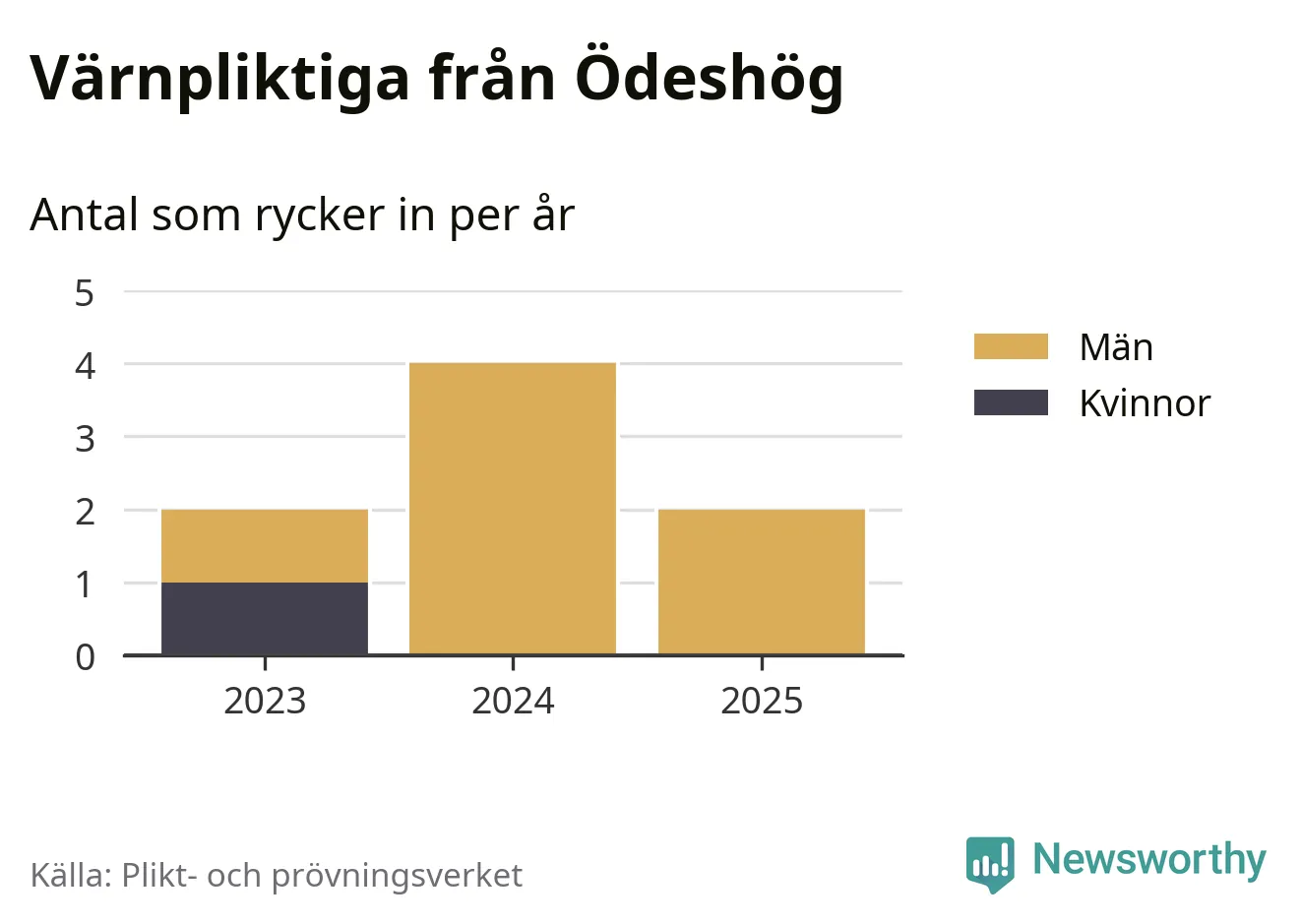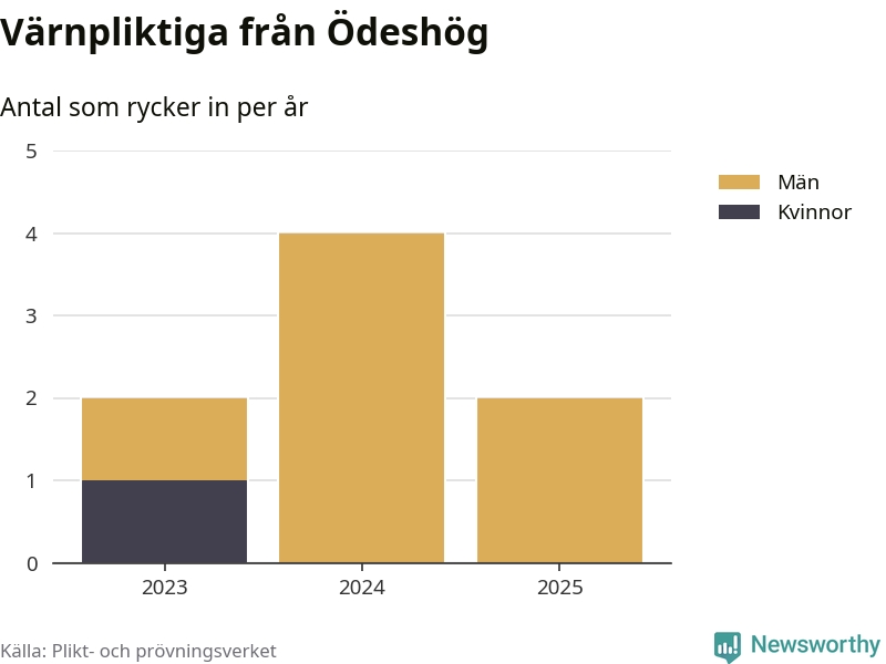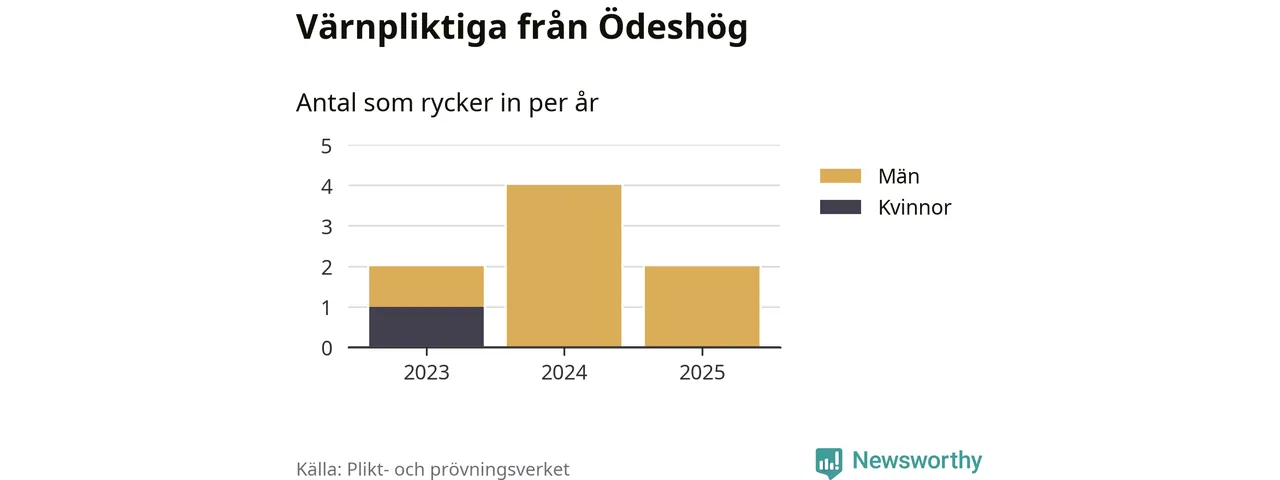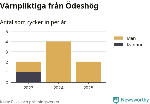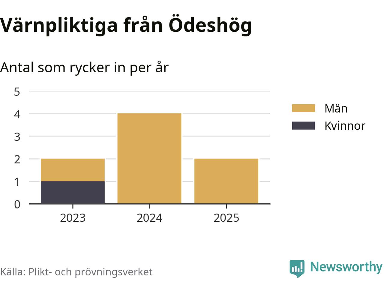 Sedan 2023 – som är det första året vi har jämförbara siffror för – har totalt åtta ungdomar från Ödeshög påbörjat sin värnplikt. Av dem har en varit kvinna.