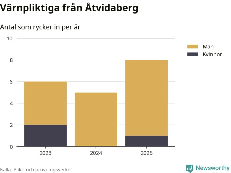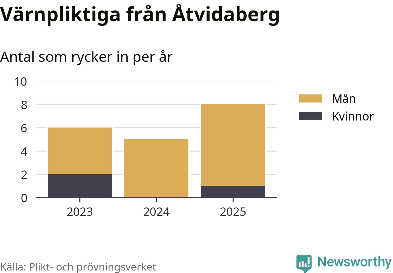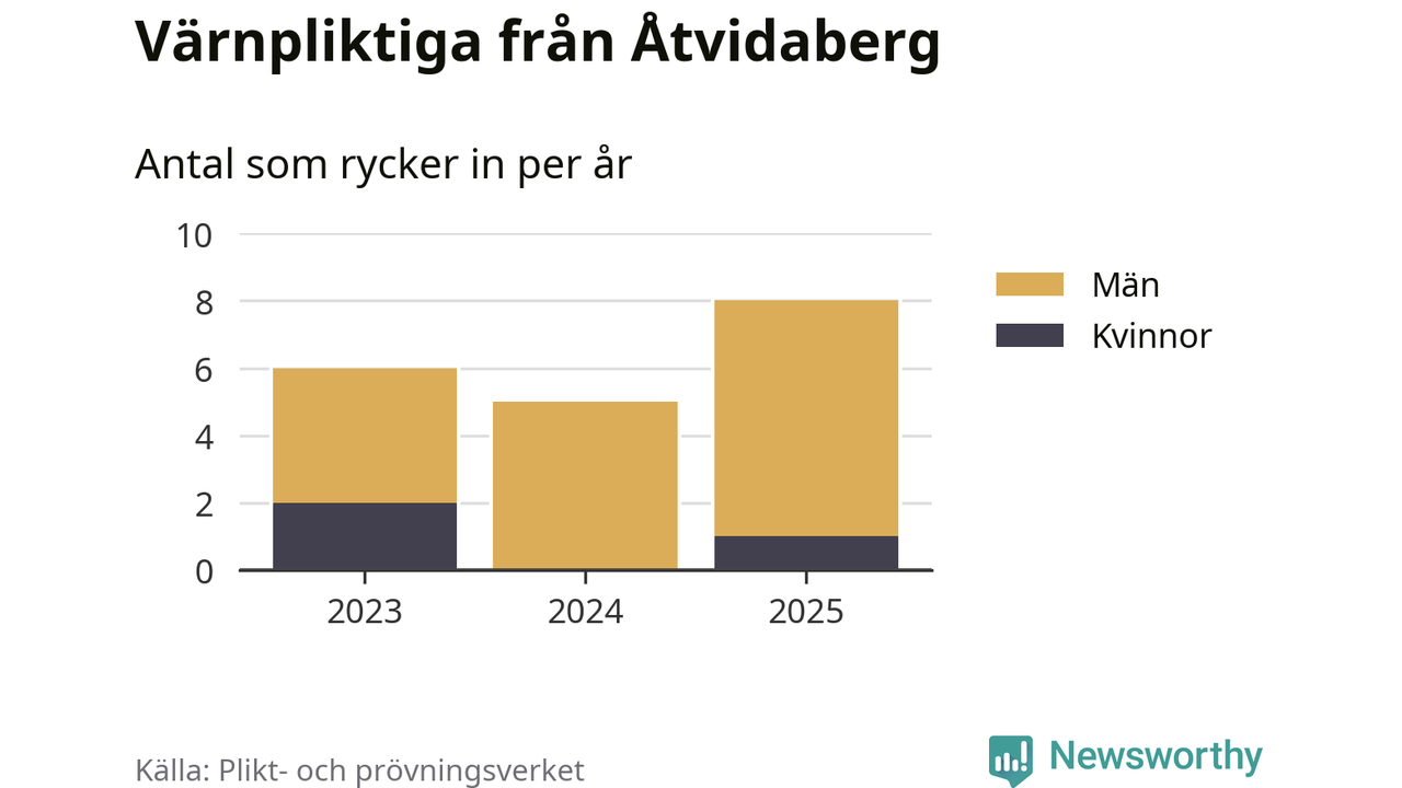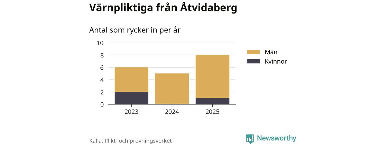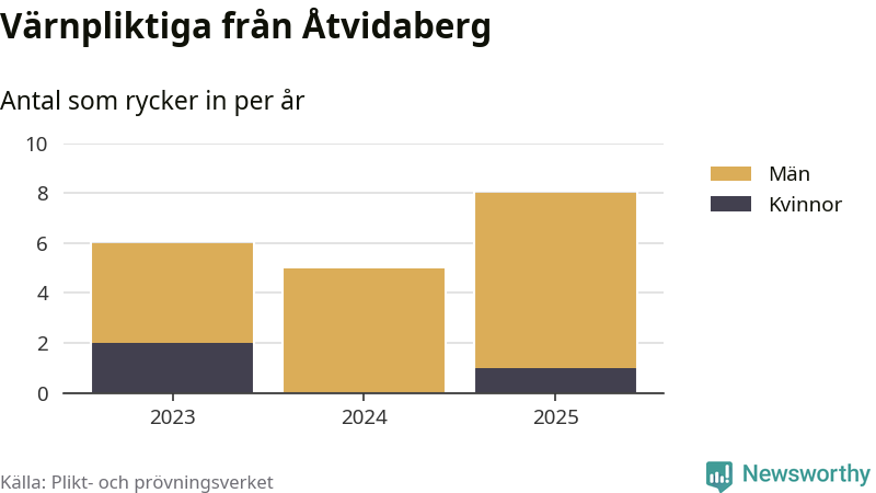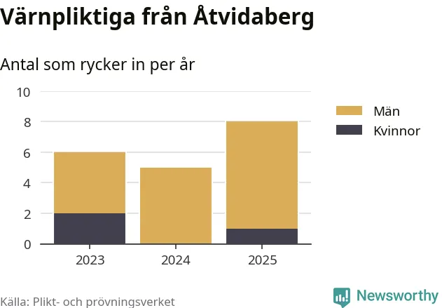 Sedan 2023 – som är det första året vi har jämförbara siffror för – har totalt 19 ungdomar från Åtvidaberg påbörjat sin värnplikt. Av dem har tre varit kvinnor.