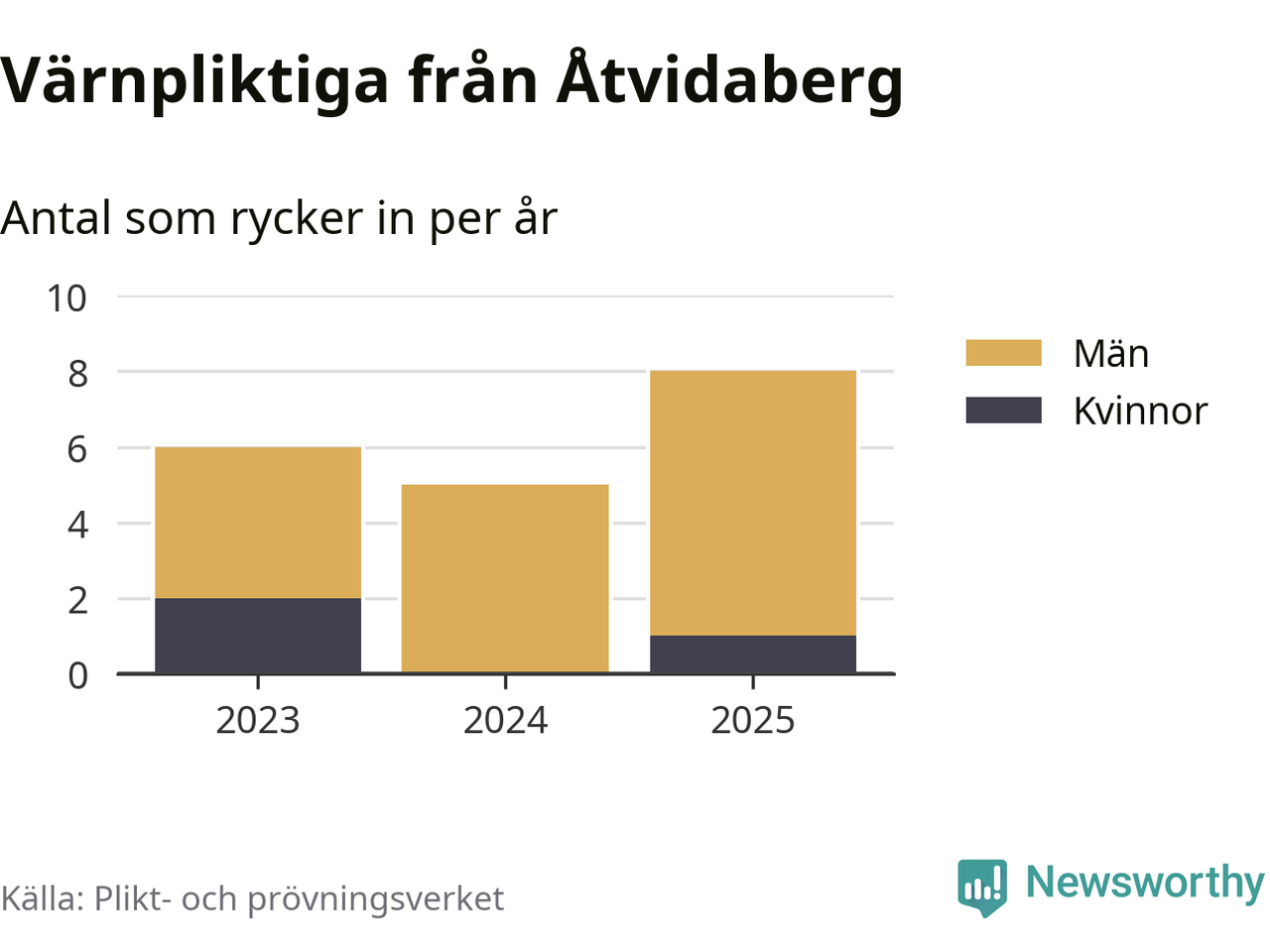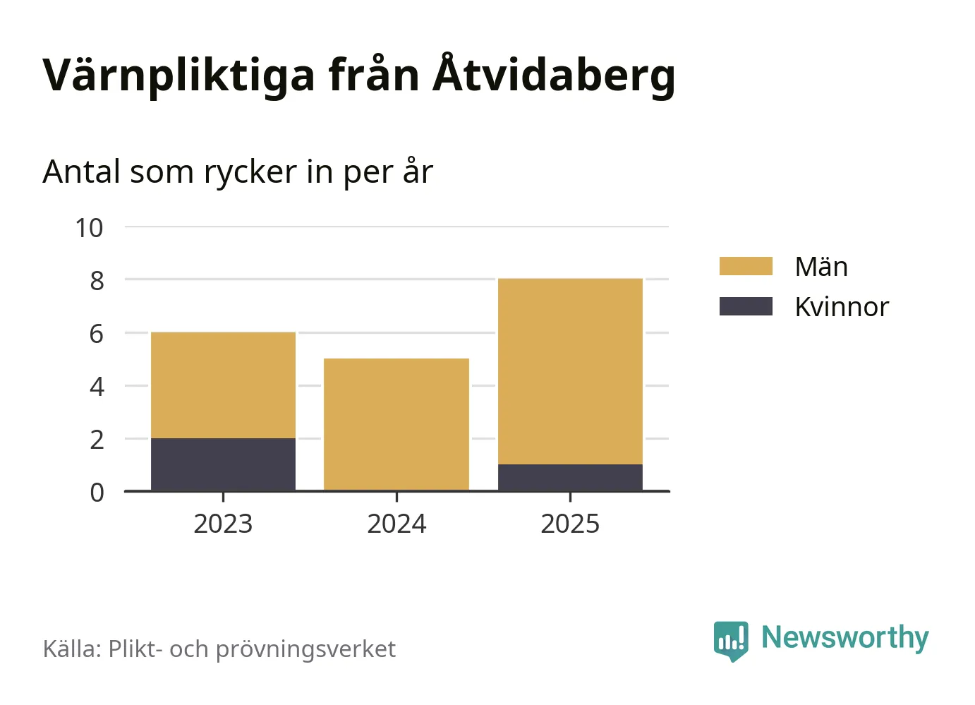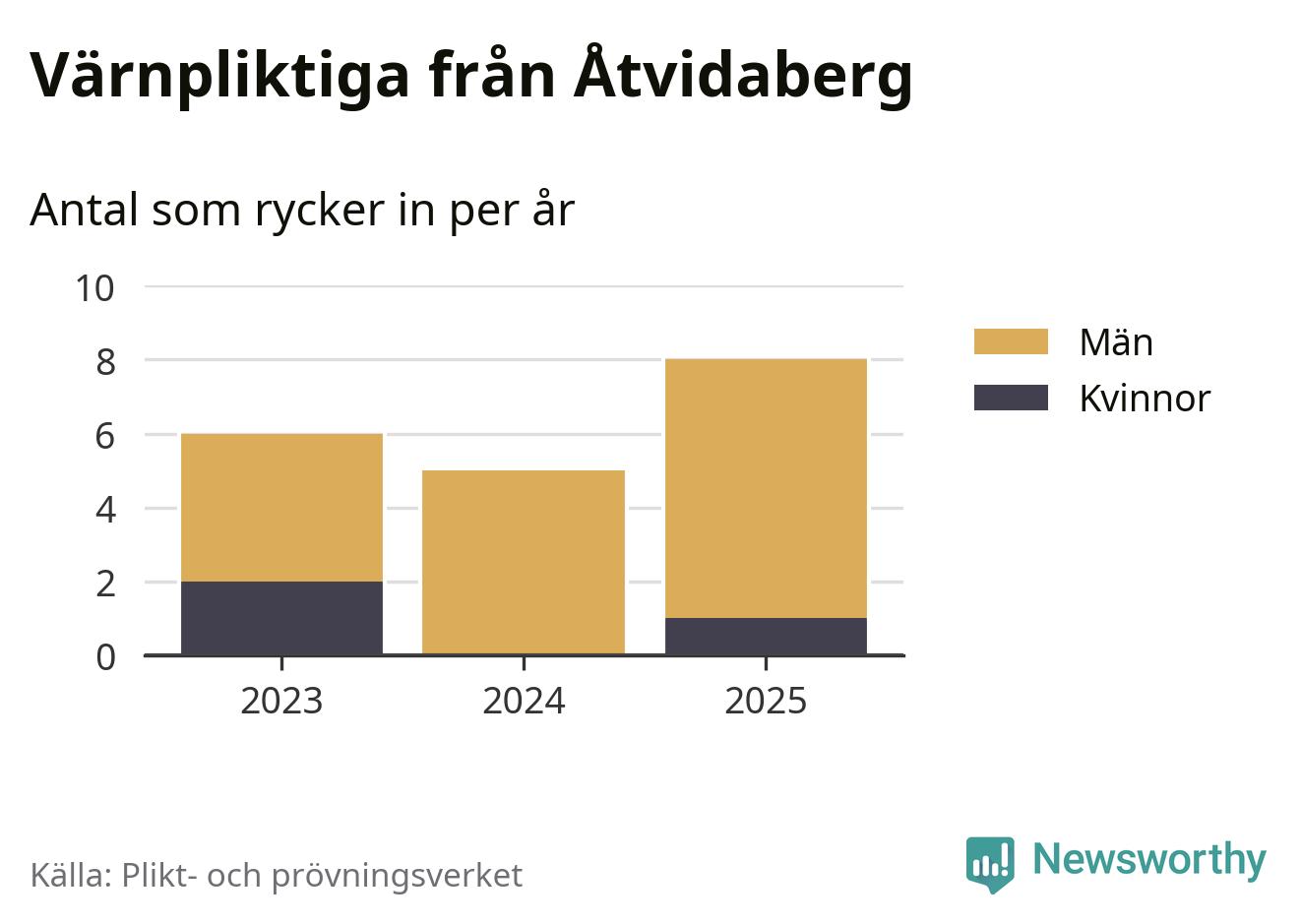 Sedan 2023 – som är det första året vi har jämförbara siffror för – har totalt 19 ungdomar från Åtvidaberg påbörjat sin värnplikt. Av dem har tre varit kvinnor.