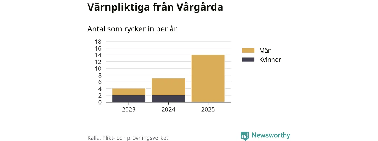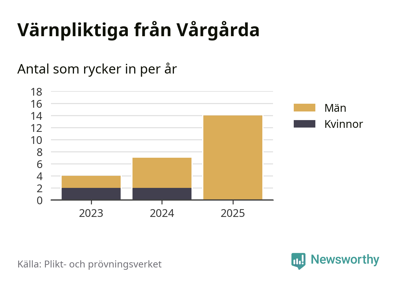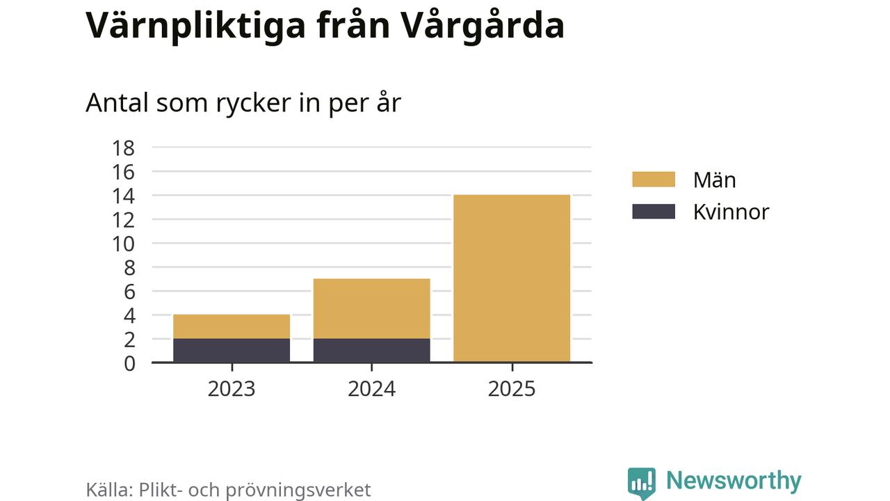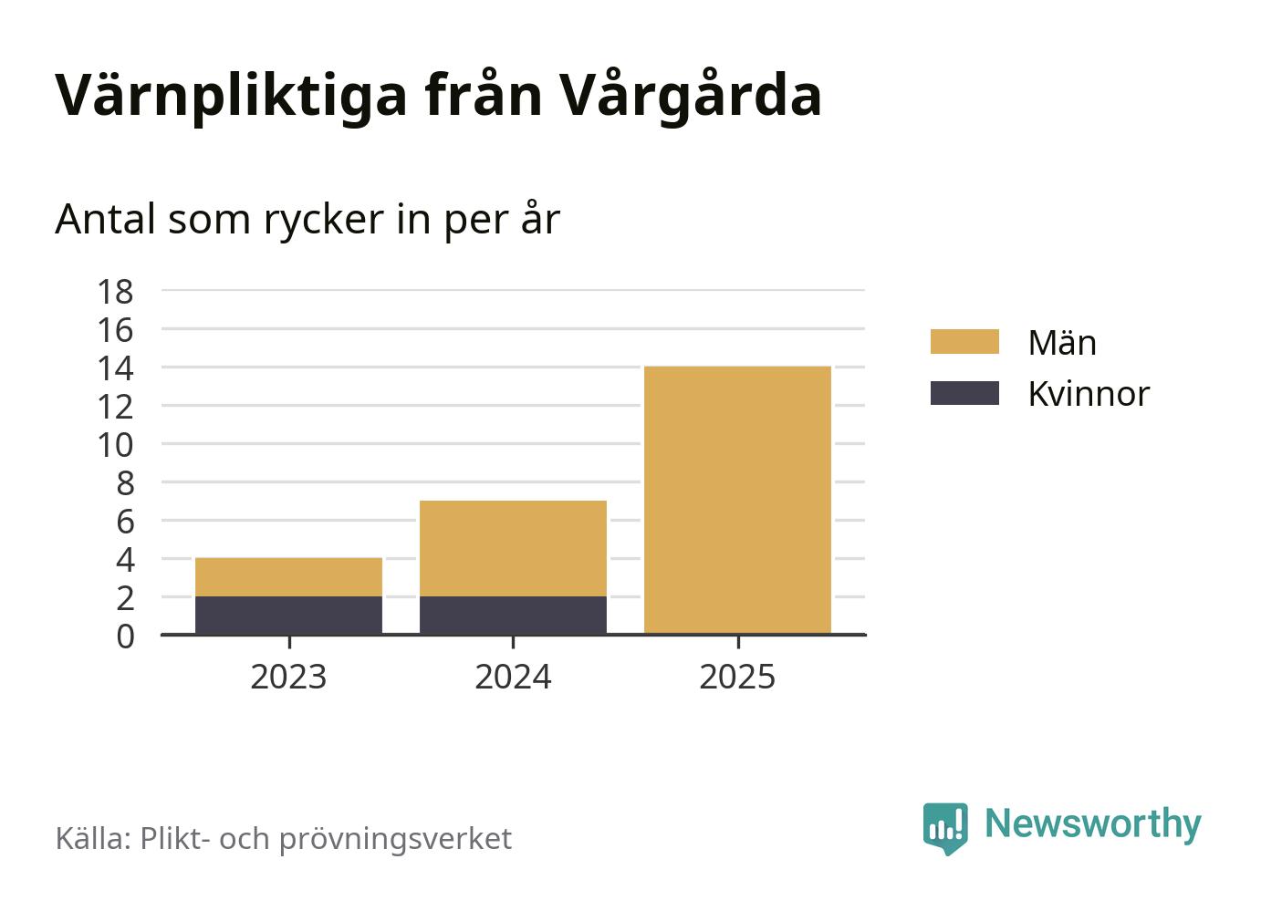Sedan 2023 – som är det första året vi har jämförbara siffror för – har totalt 25 ungdomar från Vårgårda påbörjat sin värnplikt. Av dem har fyra varit kvinnor.