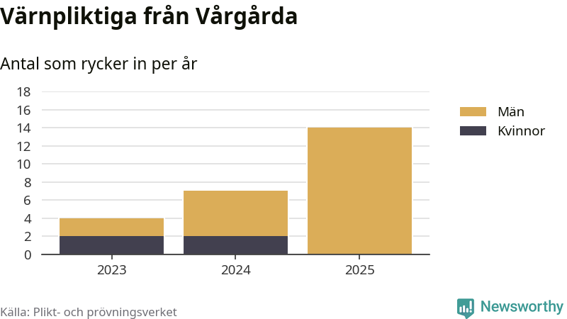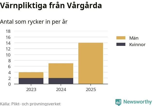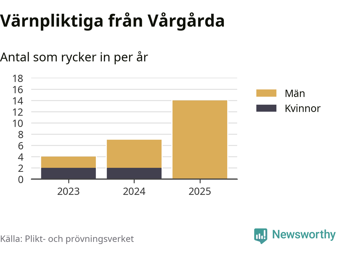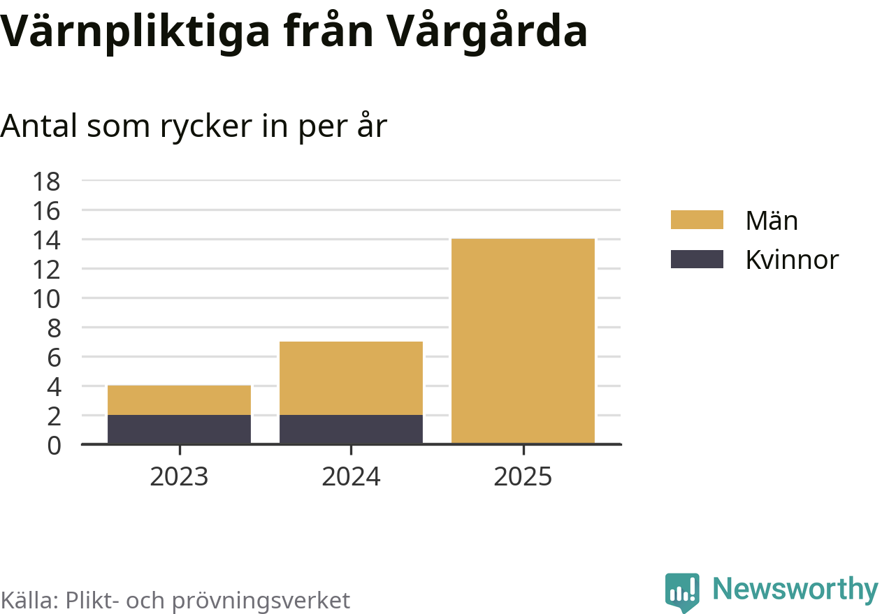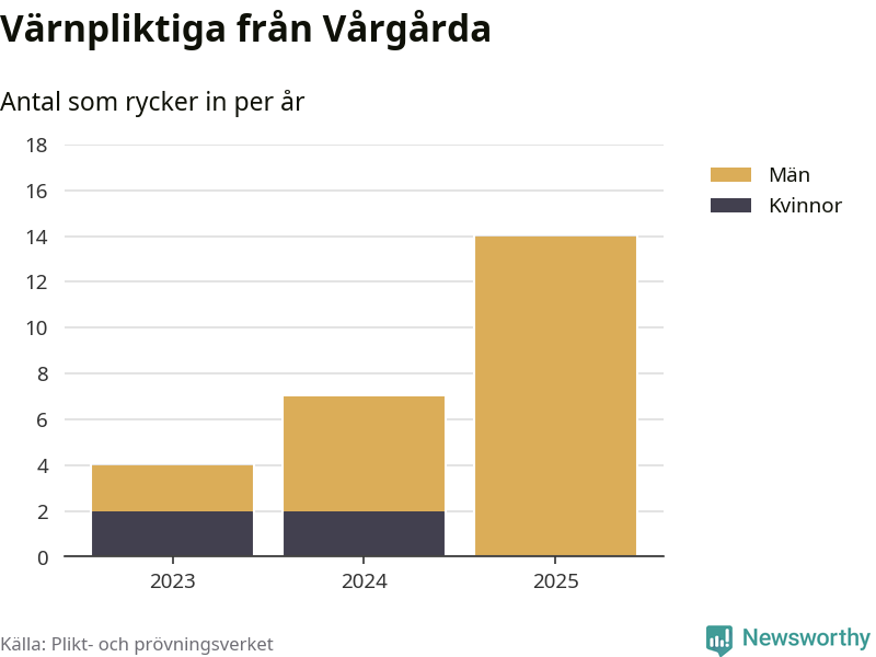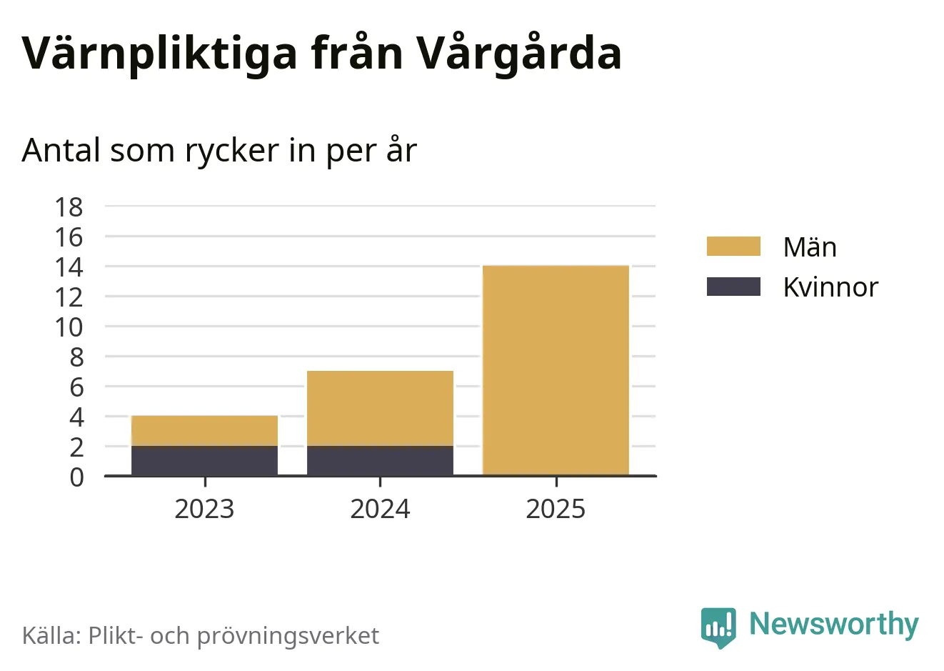 Sedan 2023 – som är det första året vi har jämförbara siffror för – har totalt 25 ungdomar från Vårgårda påbörjat sin värnplikt. Av dem har fyra varit kvinnor.