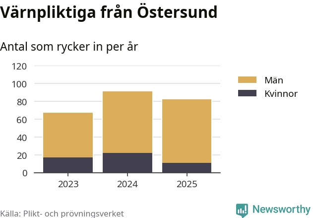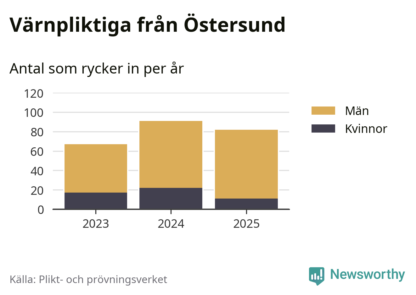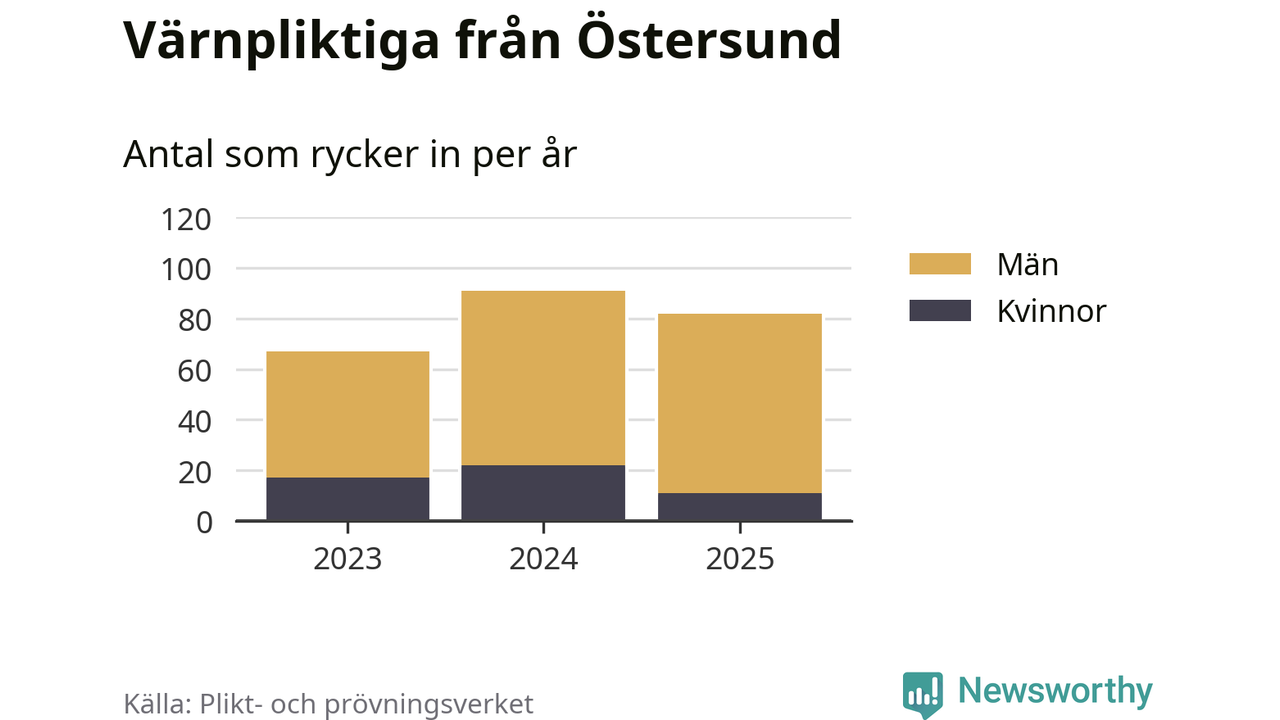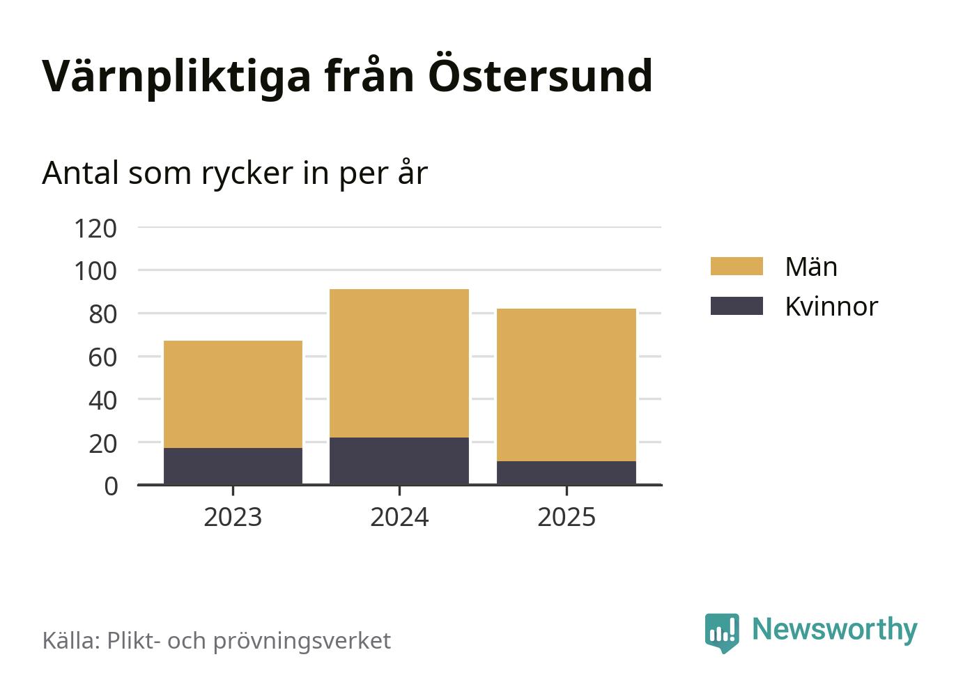 Sedan 2023 – som är det första året vi har jämförbara siffror för – har totalt 240 ungdomar från Östersund påbörjat sin värnplikt. Av dem har 50 varit kvinnor.
