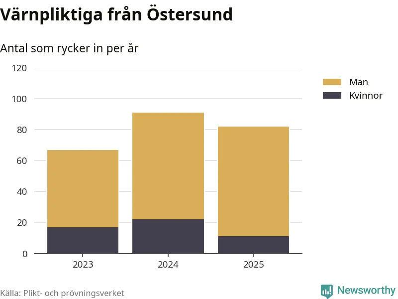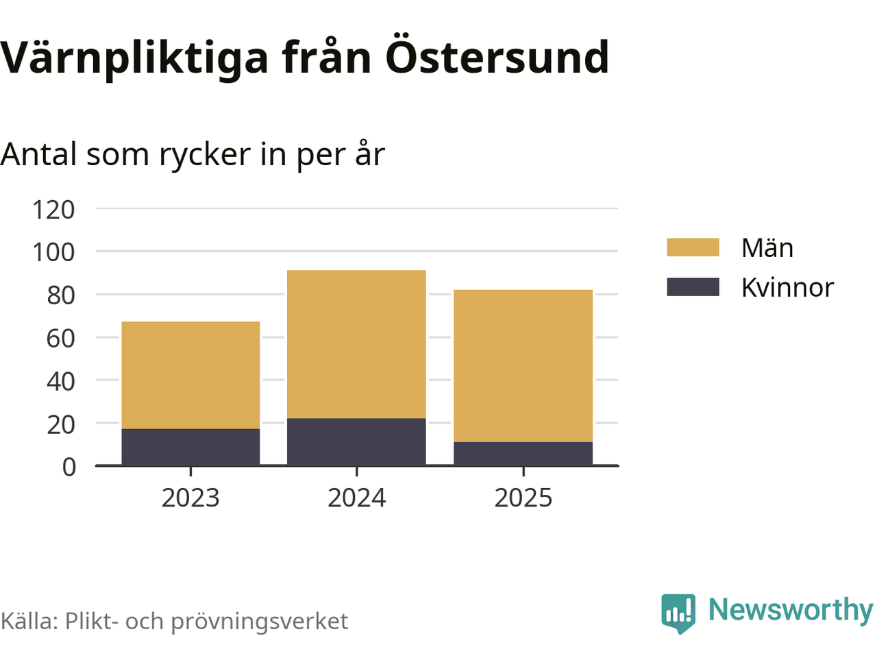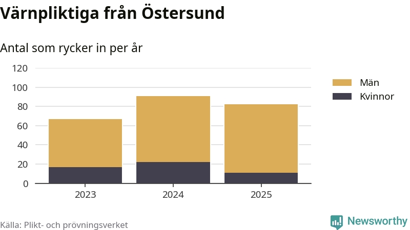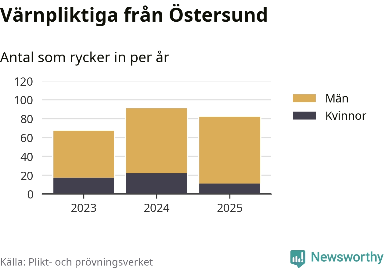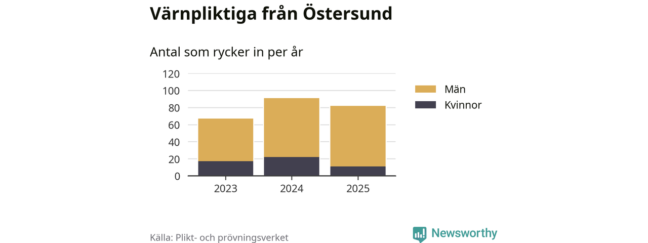 Sedan 2023 – som är det första året vi har jämförbara siffror för – har totalt 240 ungdomar från Östersund påbörjat sin värnplikt. Av dem har 50 varit kvinnor.