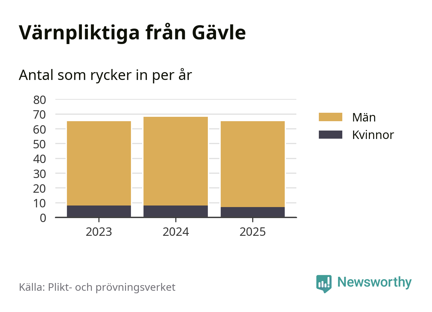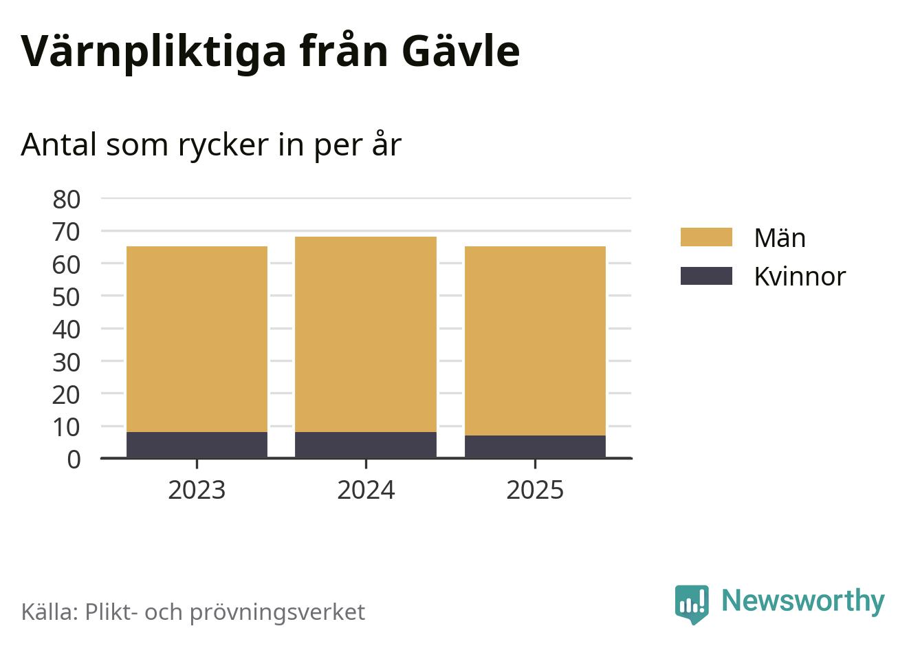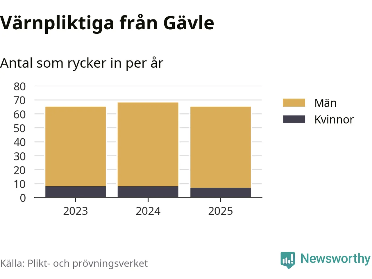 Sedan 2023 – som är det första året vi har jämförbara siffror för – har totalt 198 ungdomar från Gävle påbörjat sin värnplikt. Av dem har 23 varit kvinnor.
