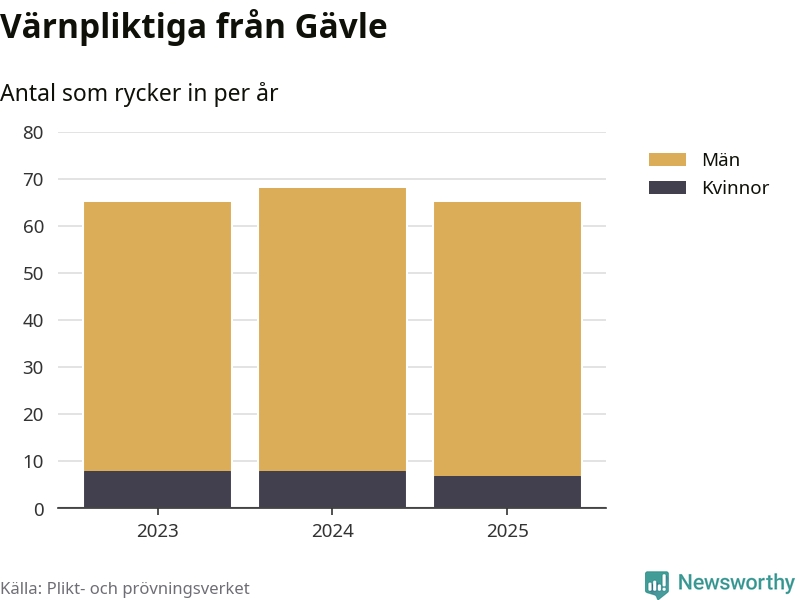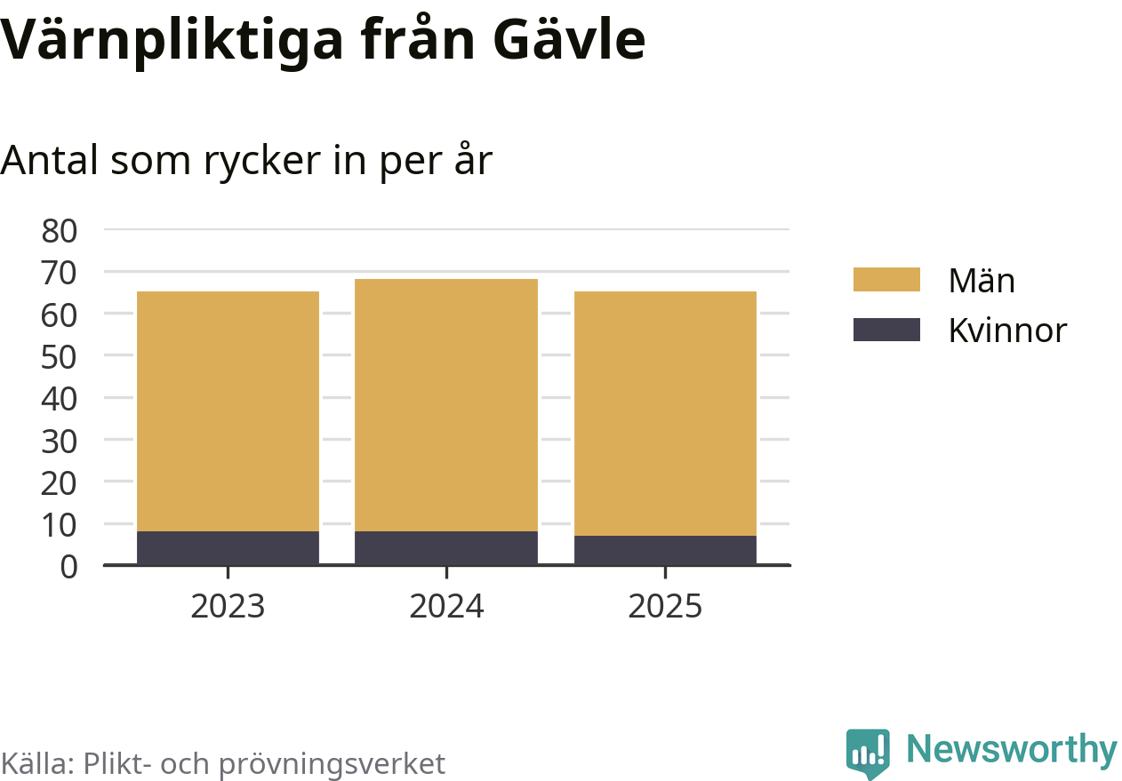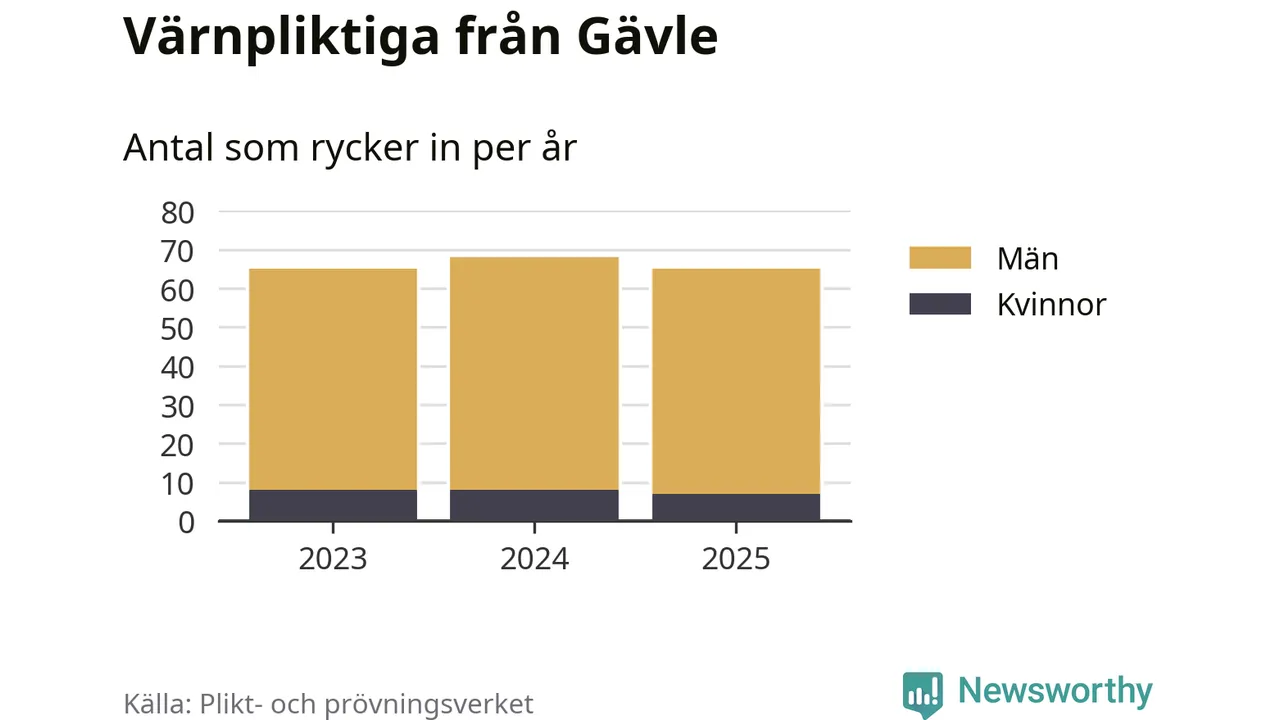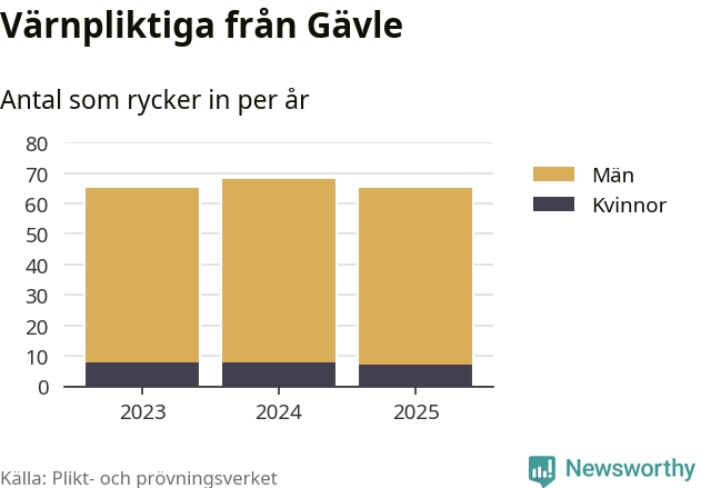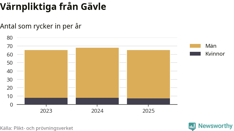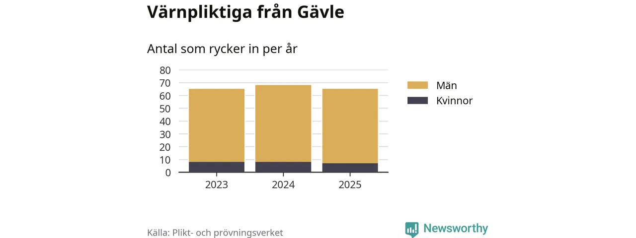 Sedan 2023 – som är det första året vi har jämförbara siffror för – har totalt 198 ungdomar från Gävle påbörjat sin värnplikt. Av dem har 23 varit kvinnor.