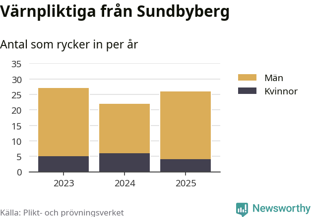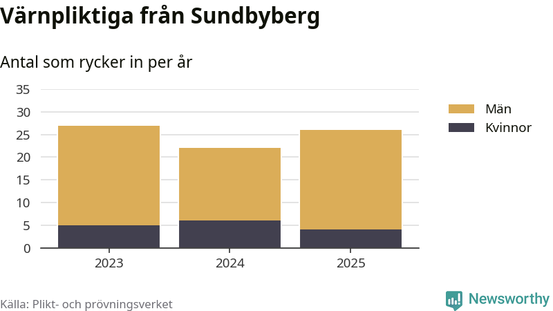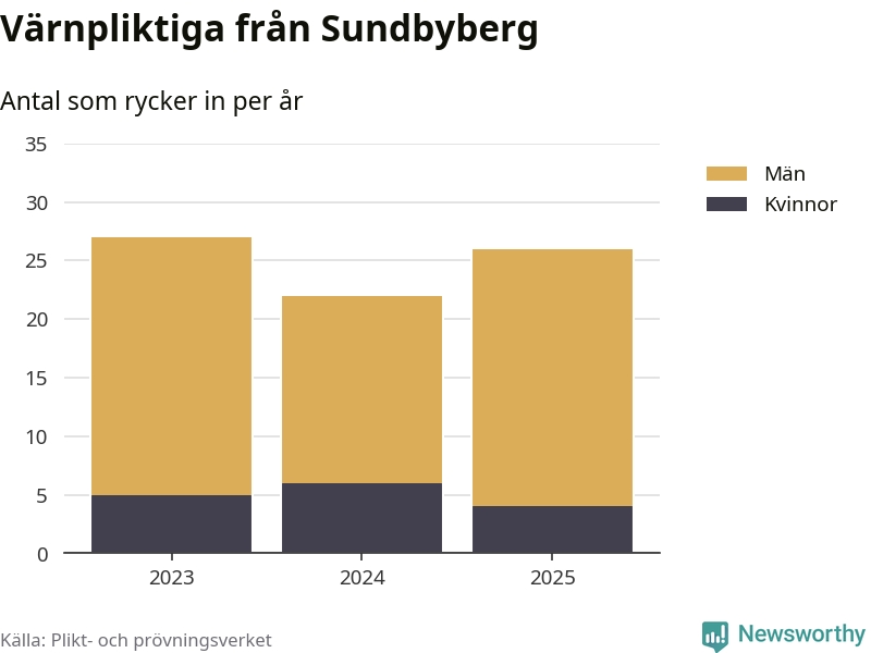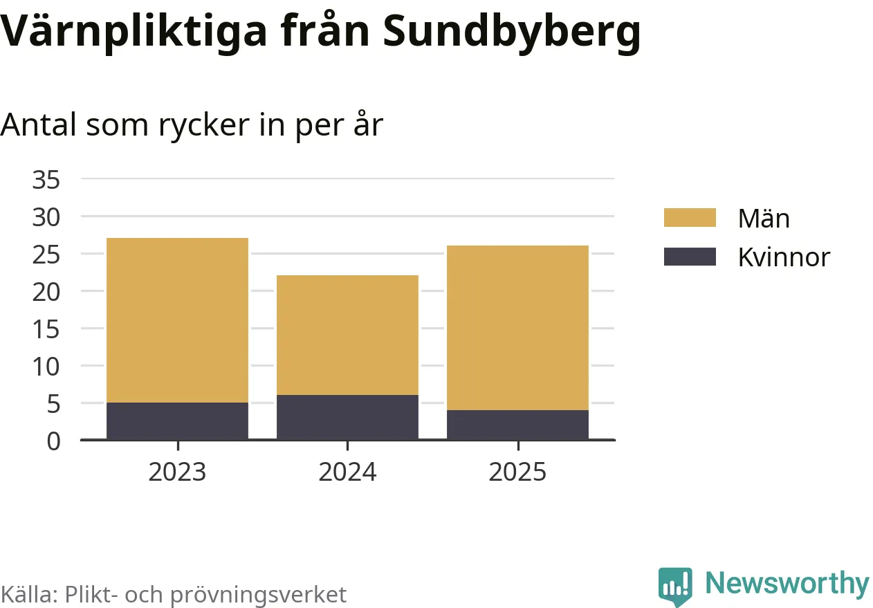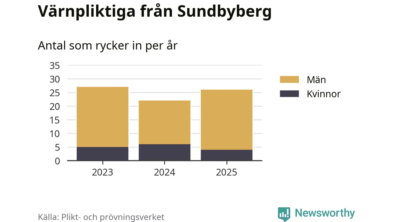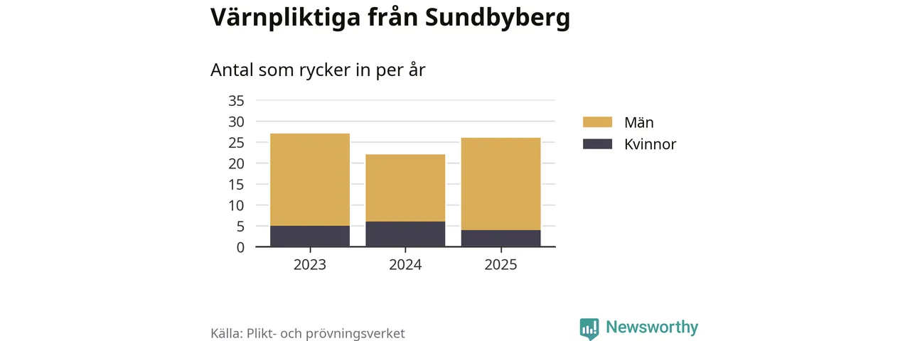 Sedan 2023 – som är det första året vi har jämförbara siffror för – har totalt 75 ungdomar från Sundbyberg påbörjat sin värnplikt. Av dem har 15 varit kvinnor.