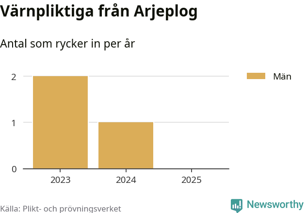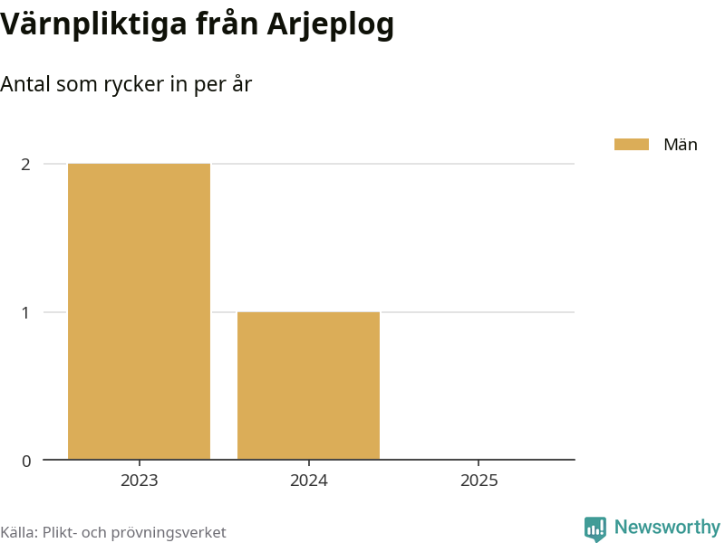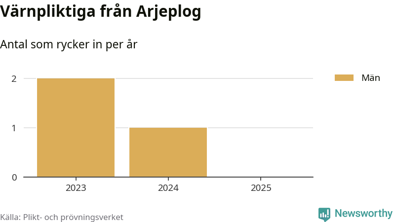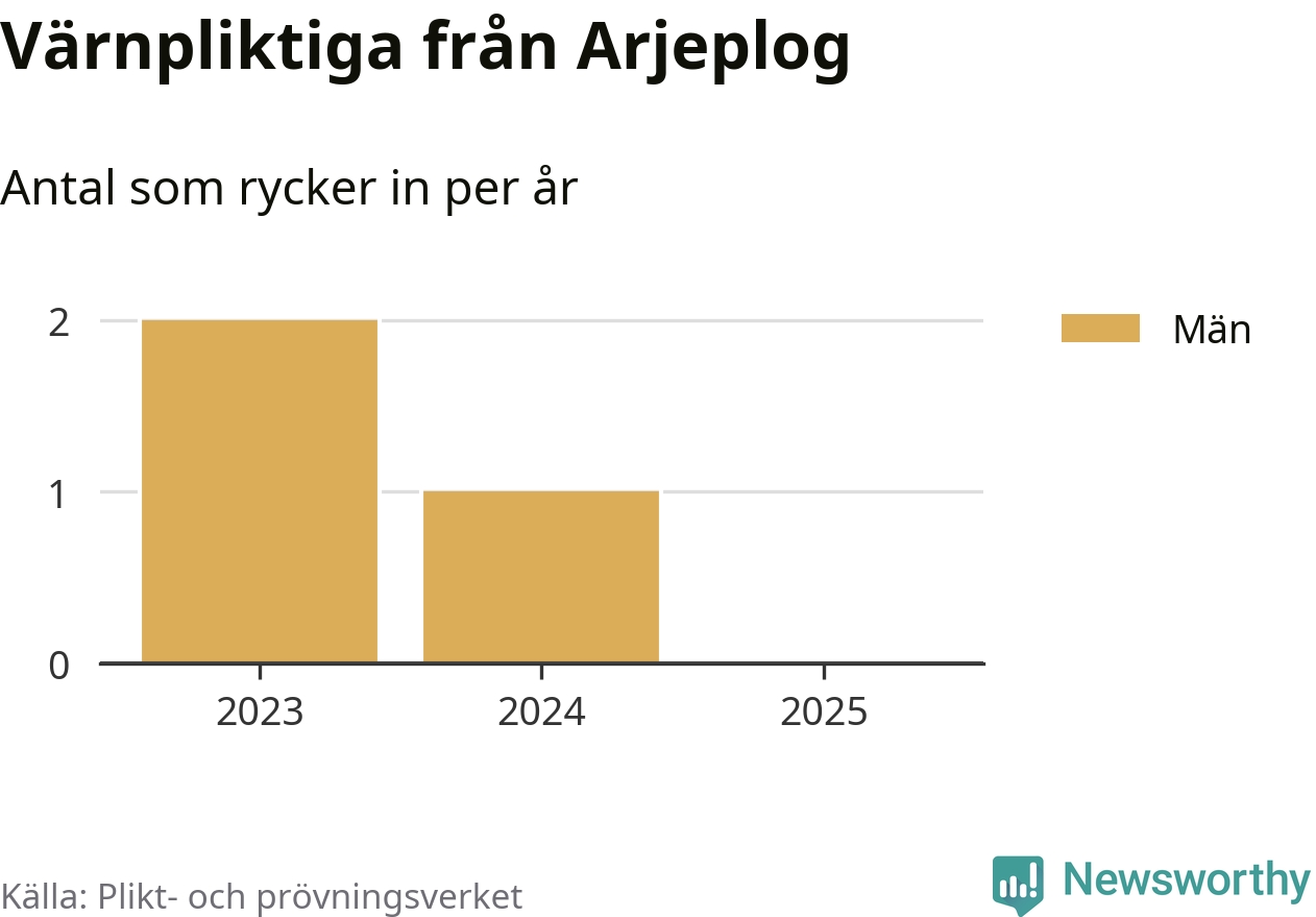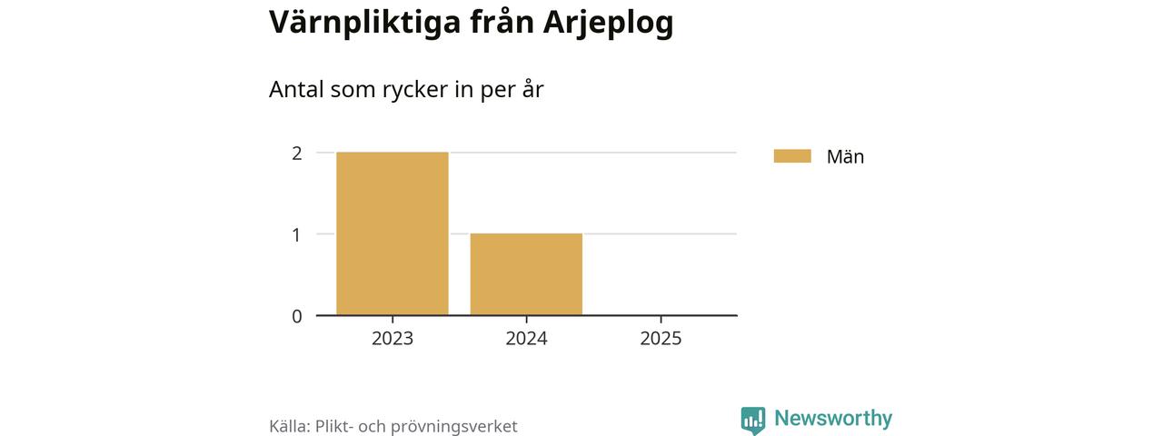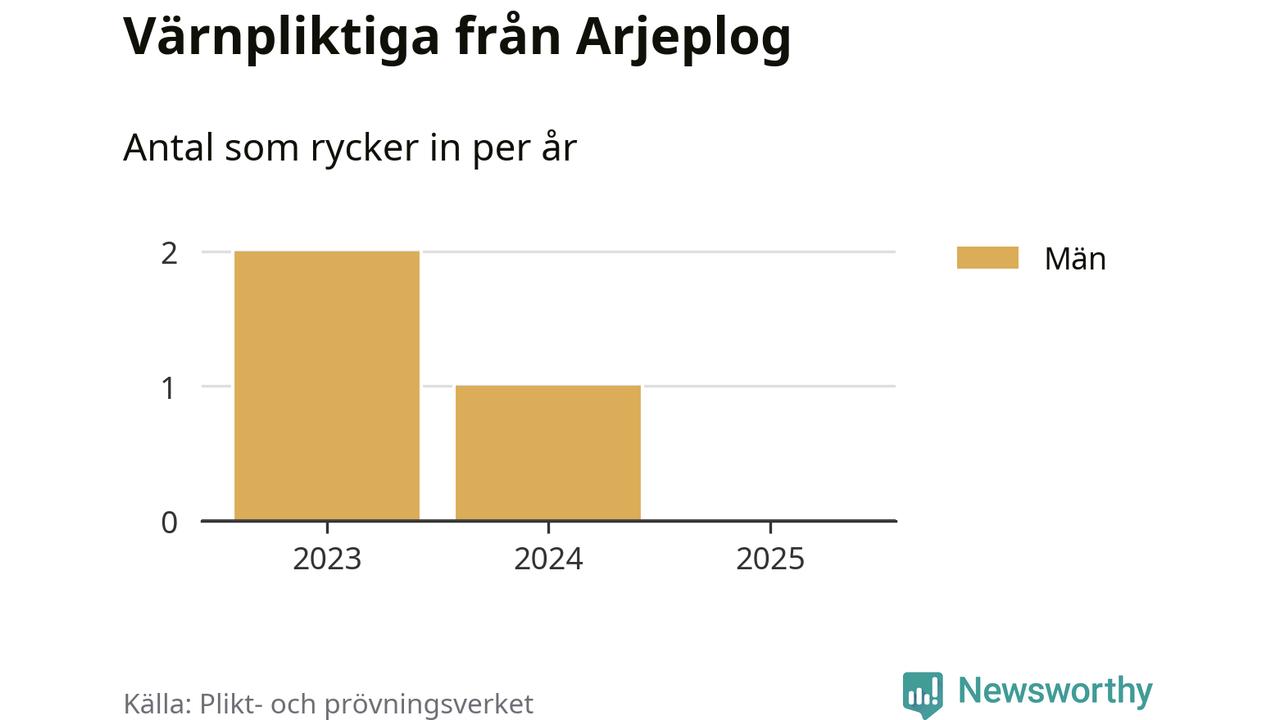 De som rycker in i år är främst ungdomar födda år 2006 men ingen från Arjeplog påbörjar sin värnplikt i år. Senast någon från kommunen ryckte in var 2024. Sedan 2023 – som är det första året vi har jämförbara siffror för – har totalt tre ungdomar från Arjeplog påbörjat sin värnplikt. Ingen av dem har varit kvinna.
