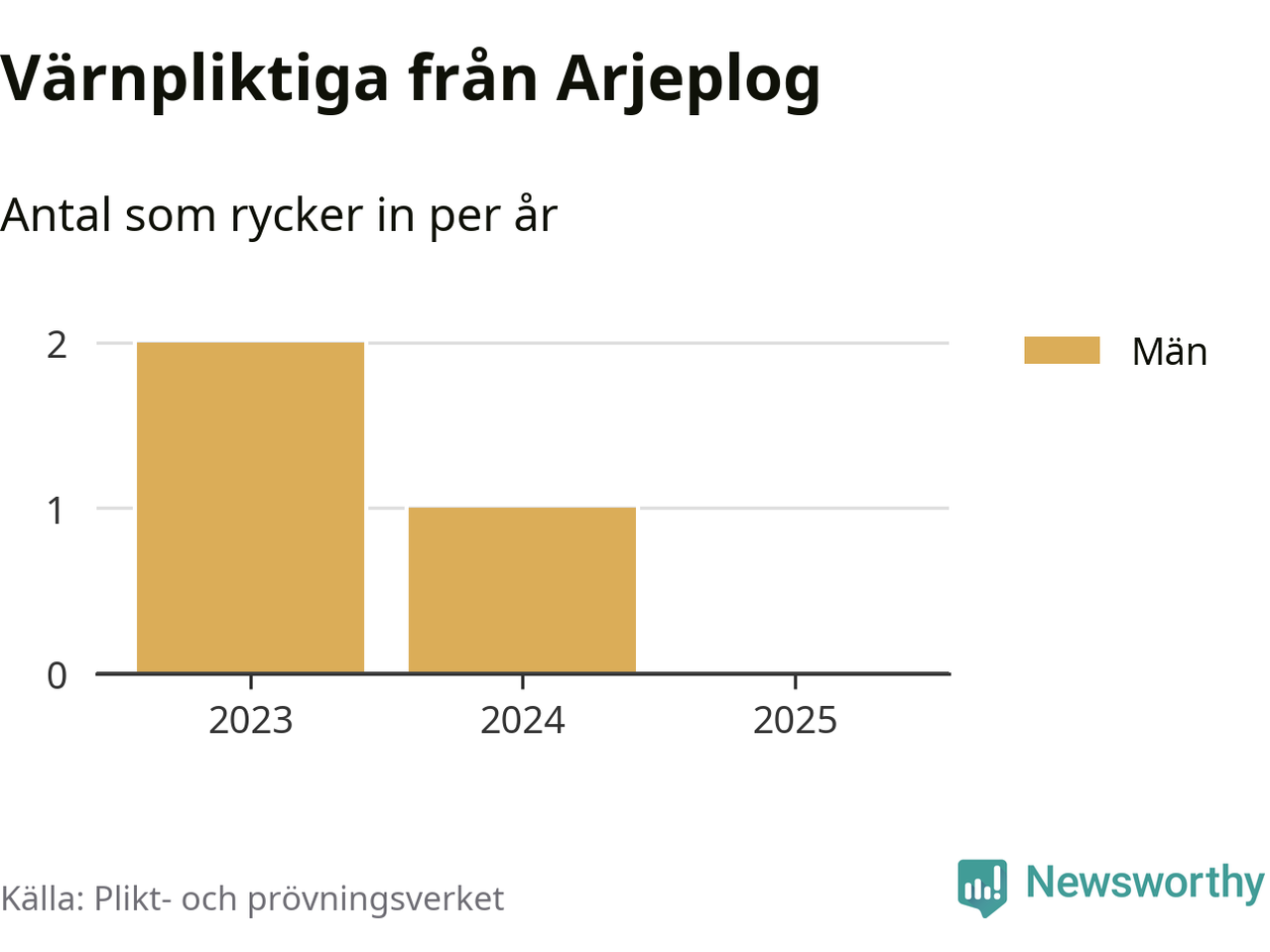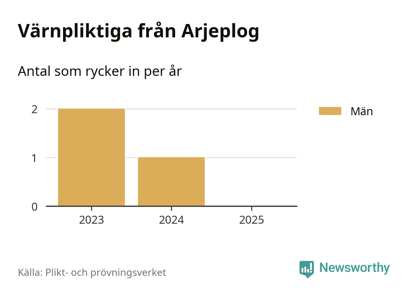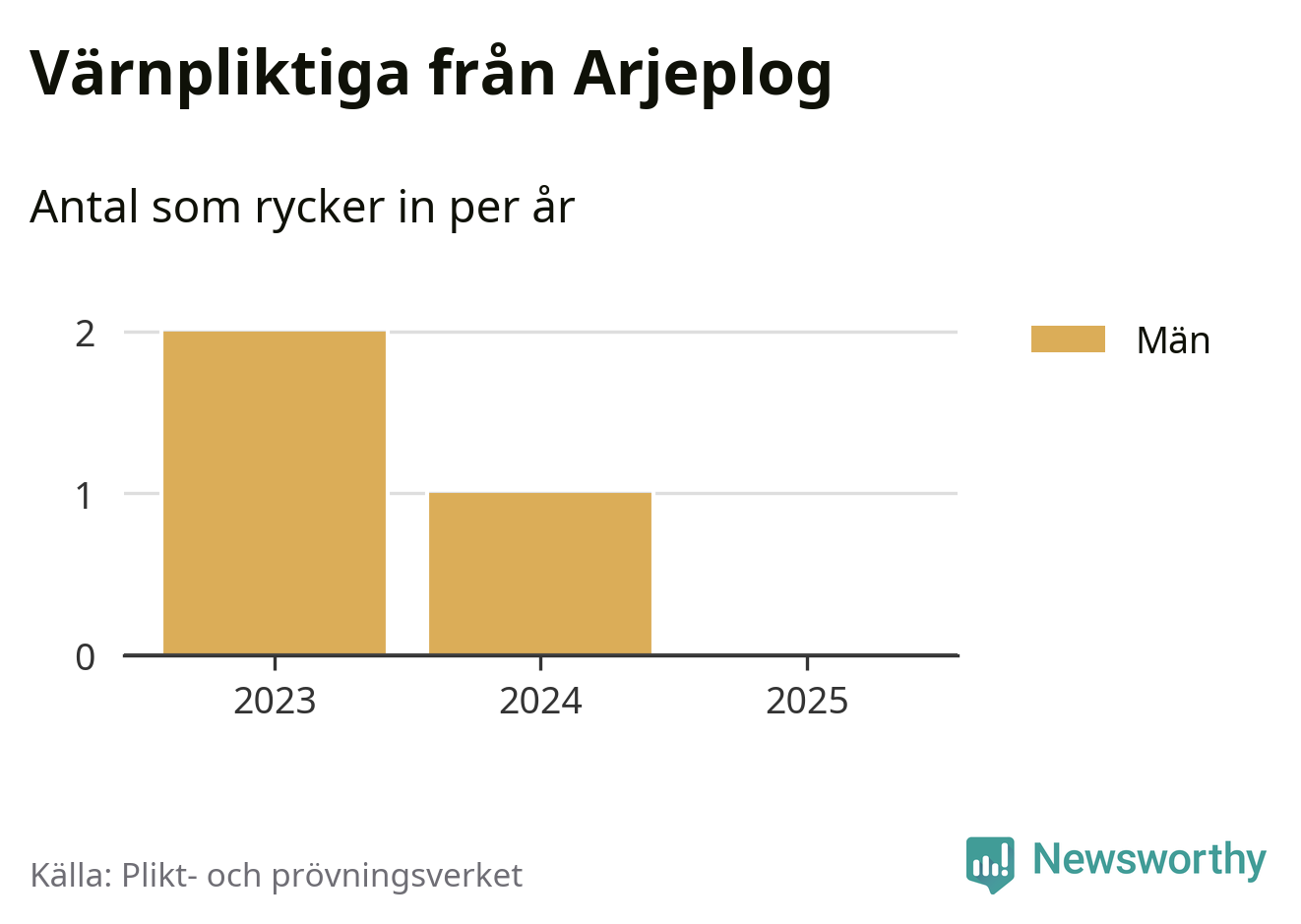 De som rycker in i år är främst ungdomar födda år 2006 men ingen från Arjeplog påbörjar sin värnplikt i år. Senast någon från kommunen ryckte in var 2024. Sedan 2023 – som är det första året vi har jämförbara siffror för – har totalt tre ungdomar från Arjeplog påbörjat sin värnplikt. Ingen av dem har varit kvinna.