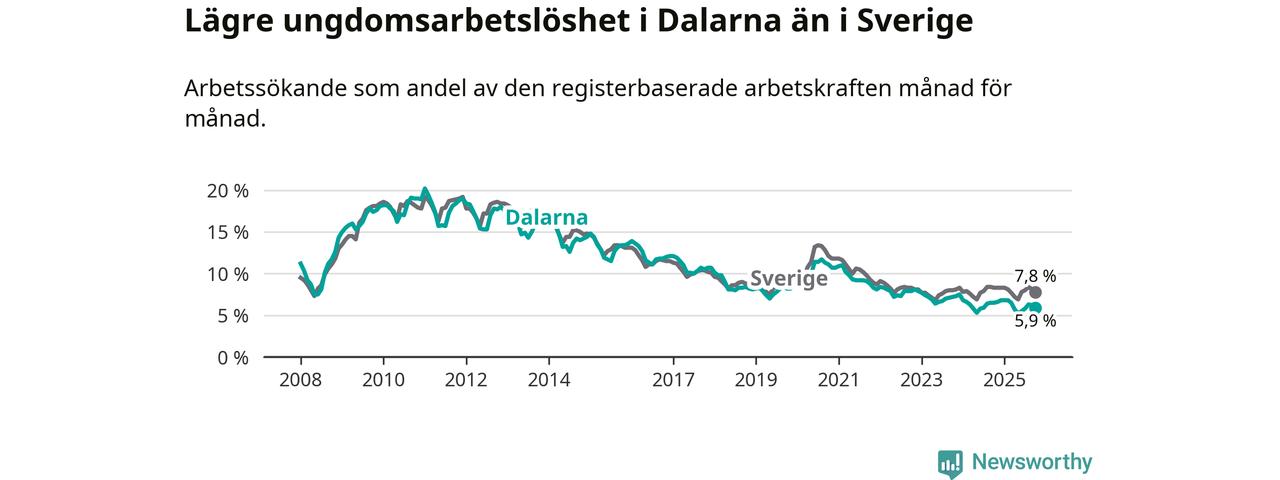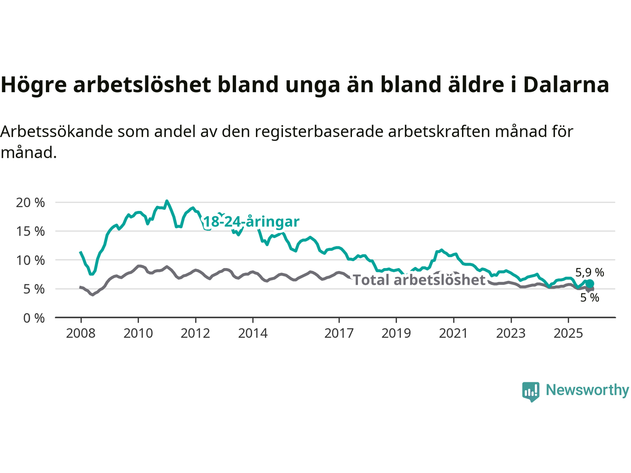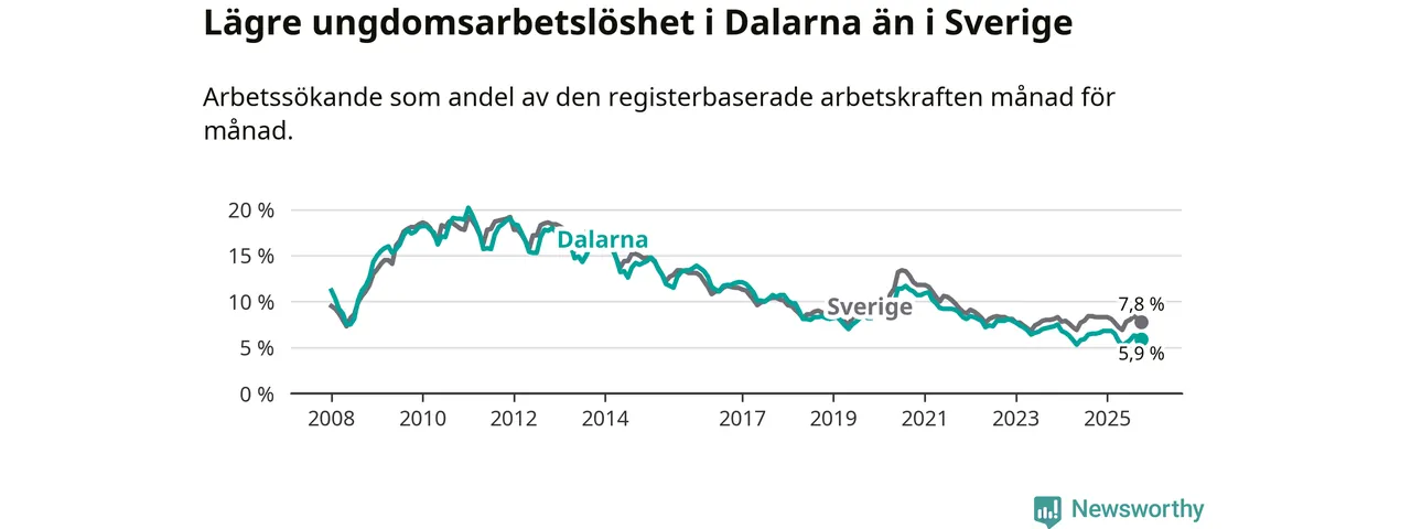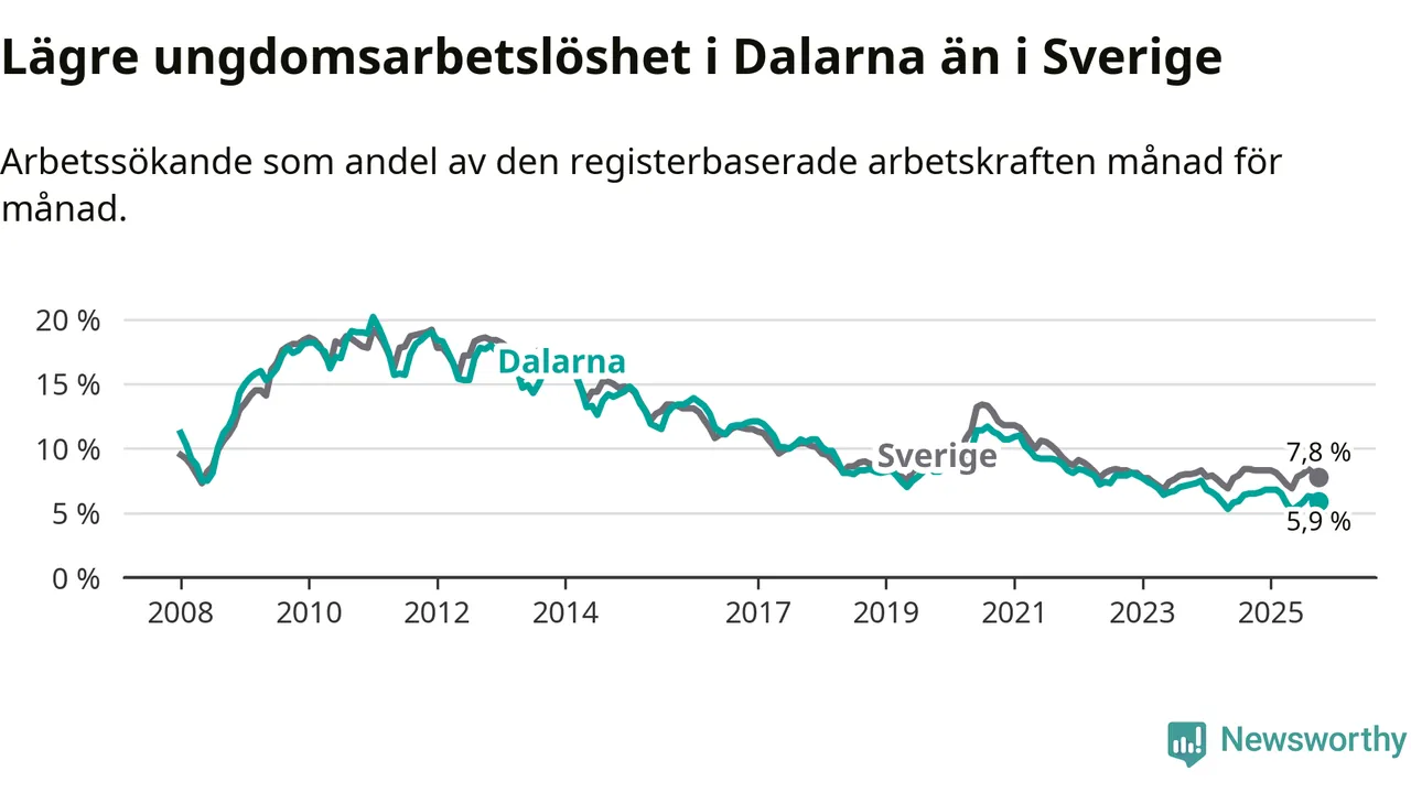 Graf: Arbetslöshet bland unga i Dalarnas län och Sverige