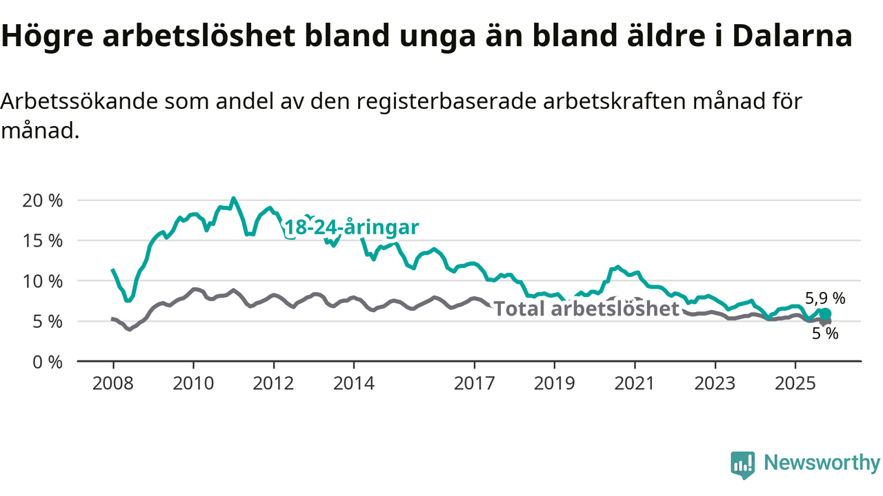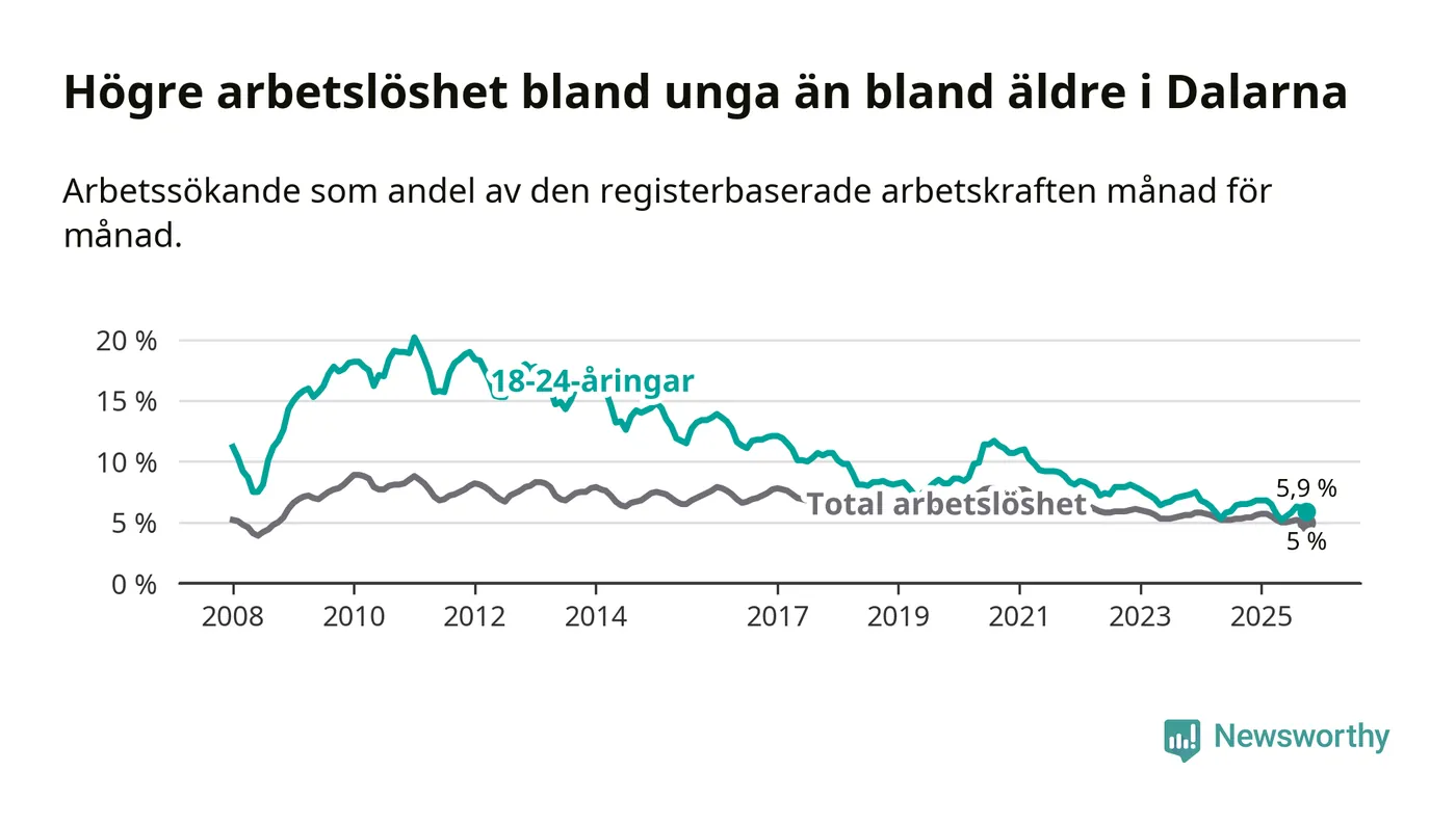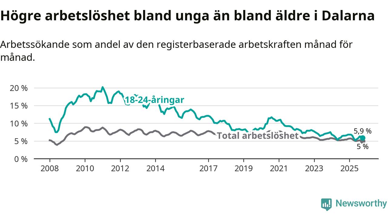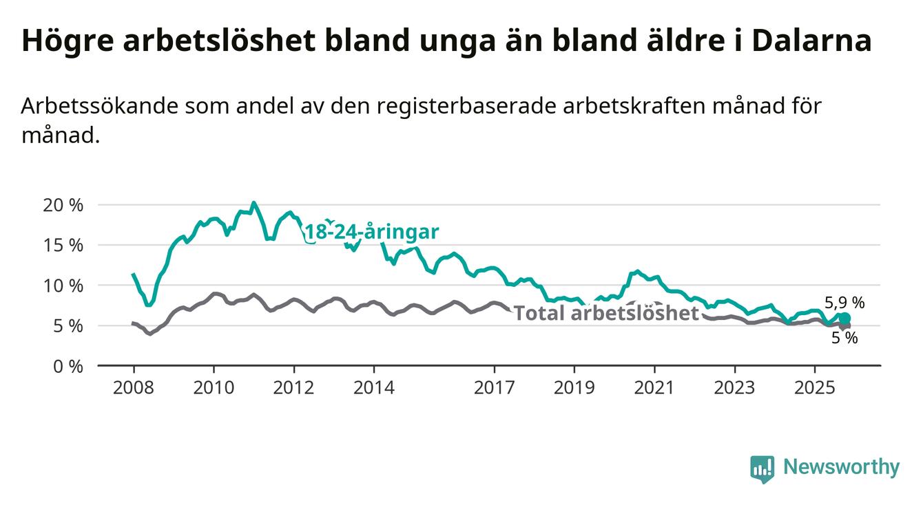 Graf: Arbetslöshet bland unga i Dalarnas län och Sverige