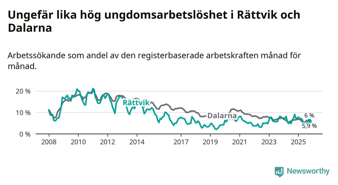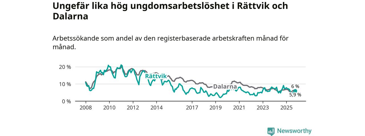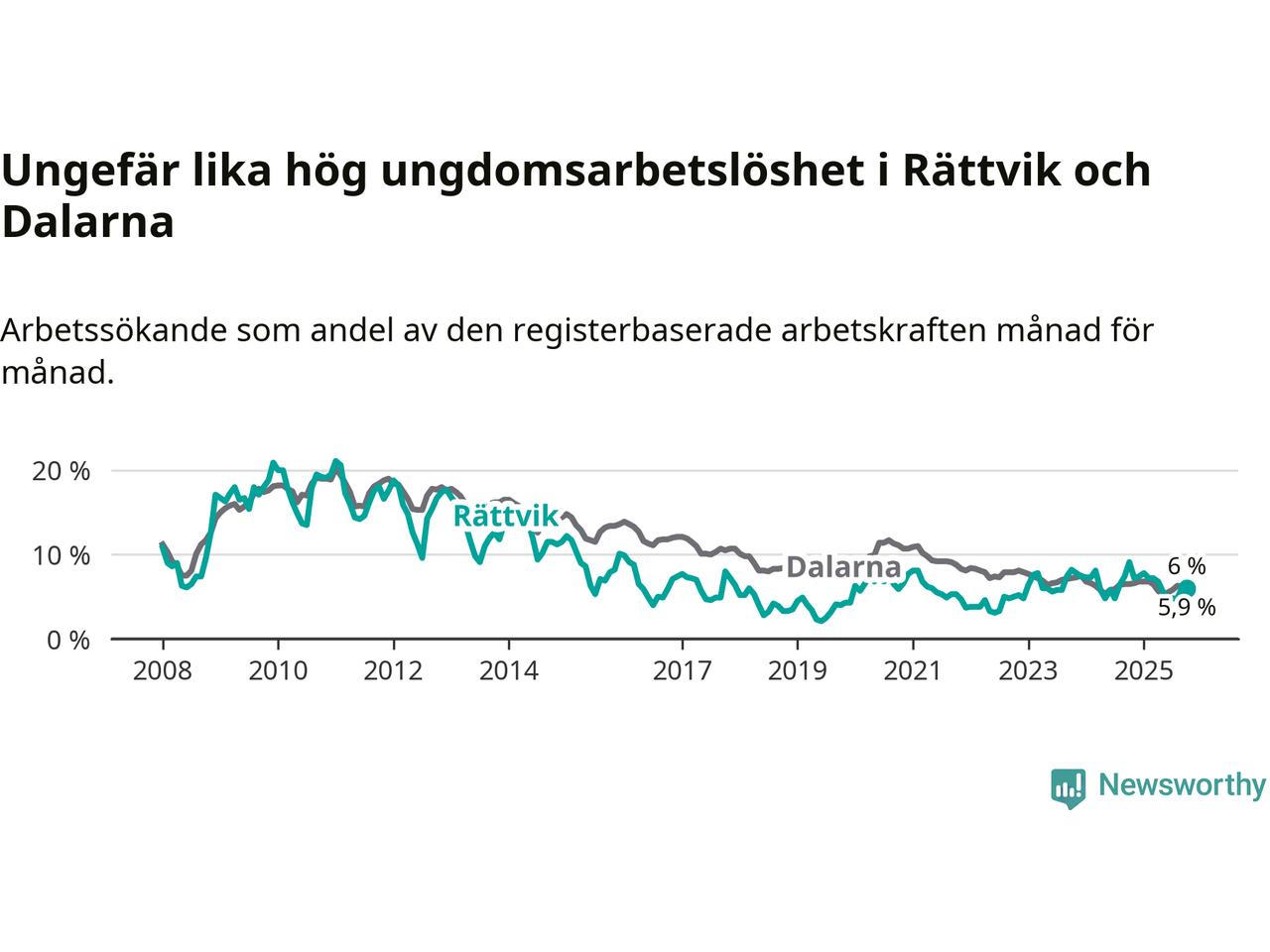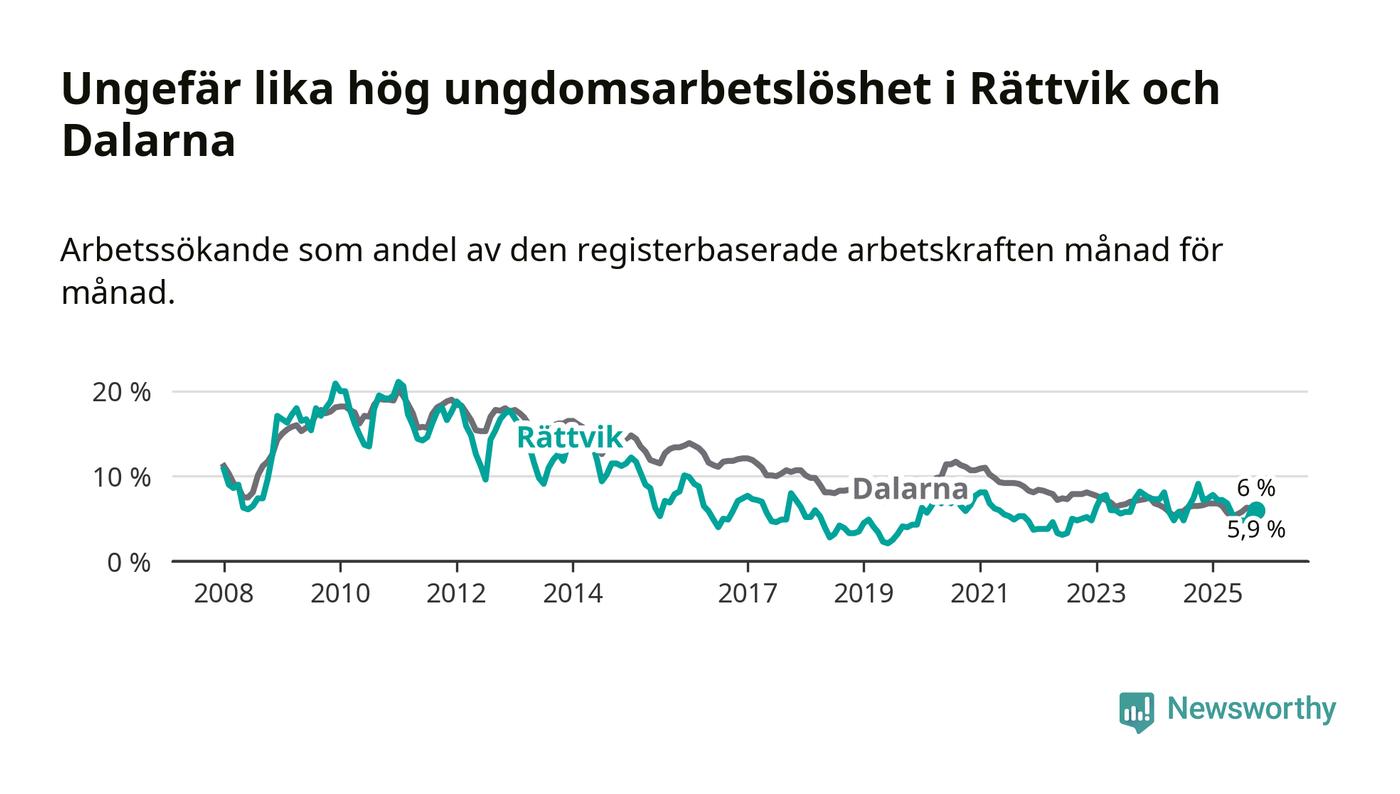 Medan Rättvik har lägre total arbetslöshet än Dalarna, ligger ungdomsarbetslösheten på i stort sett samma nivå.
